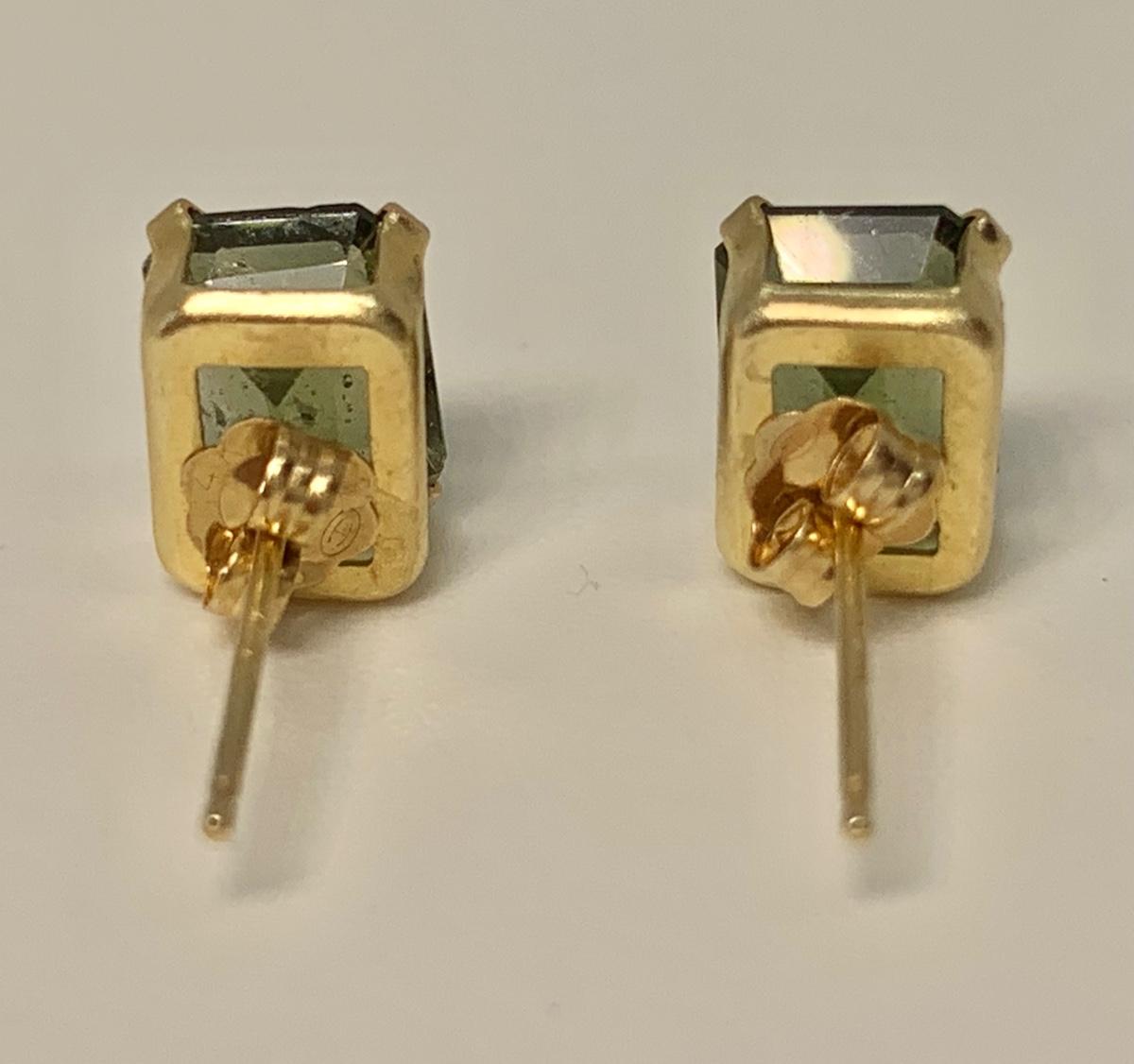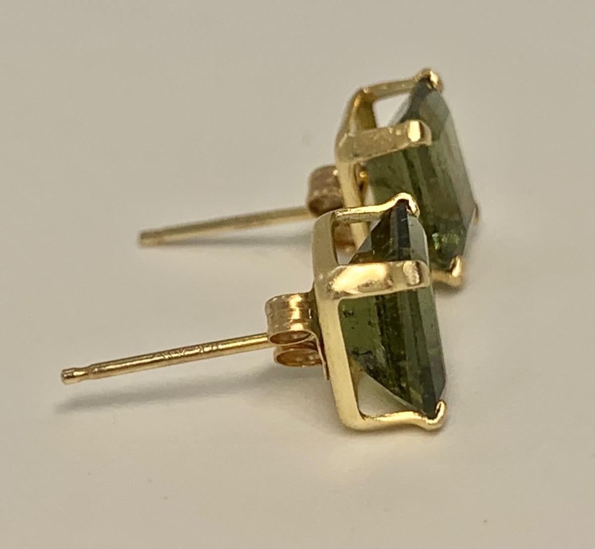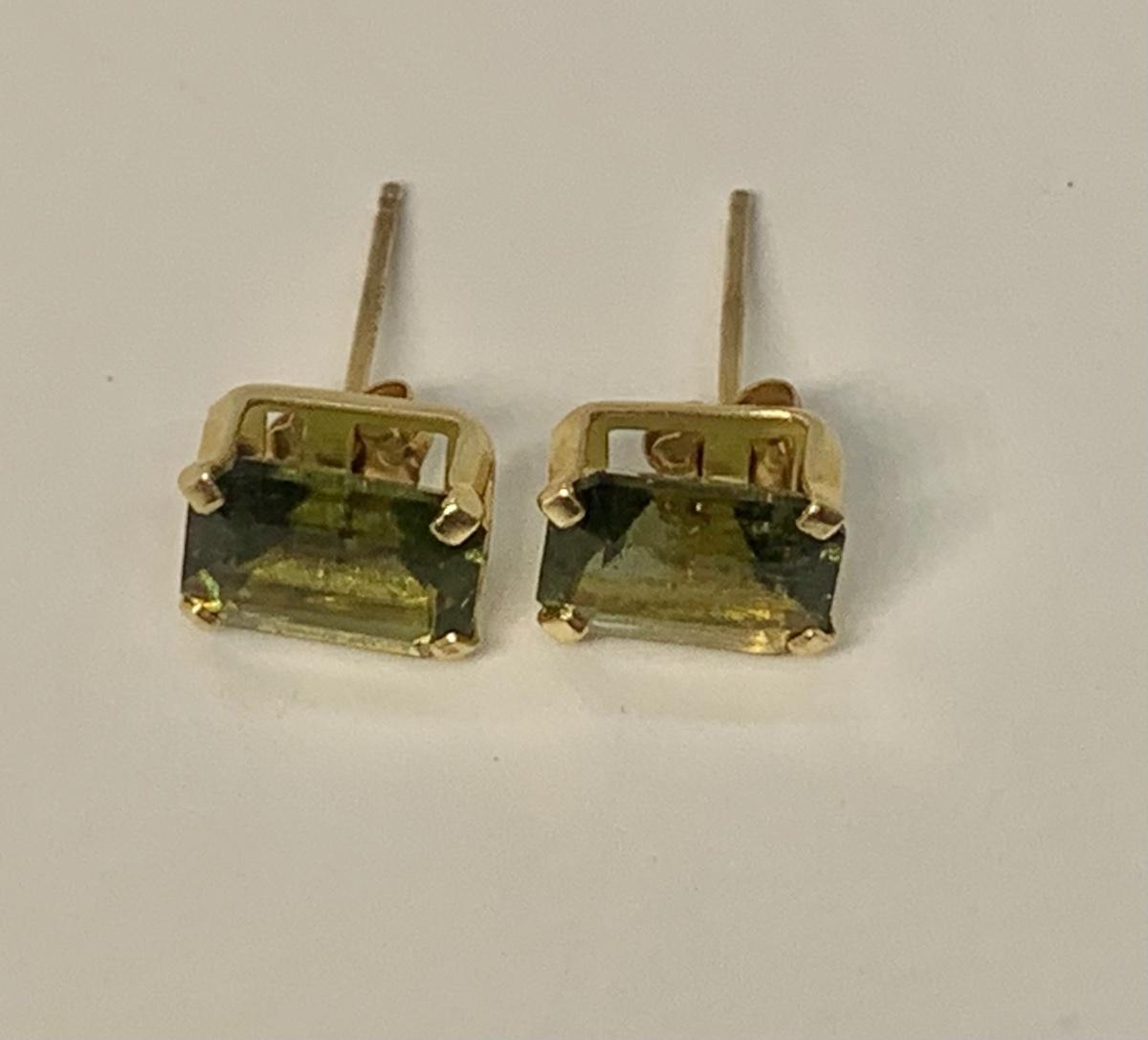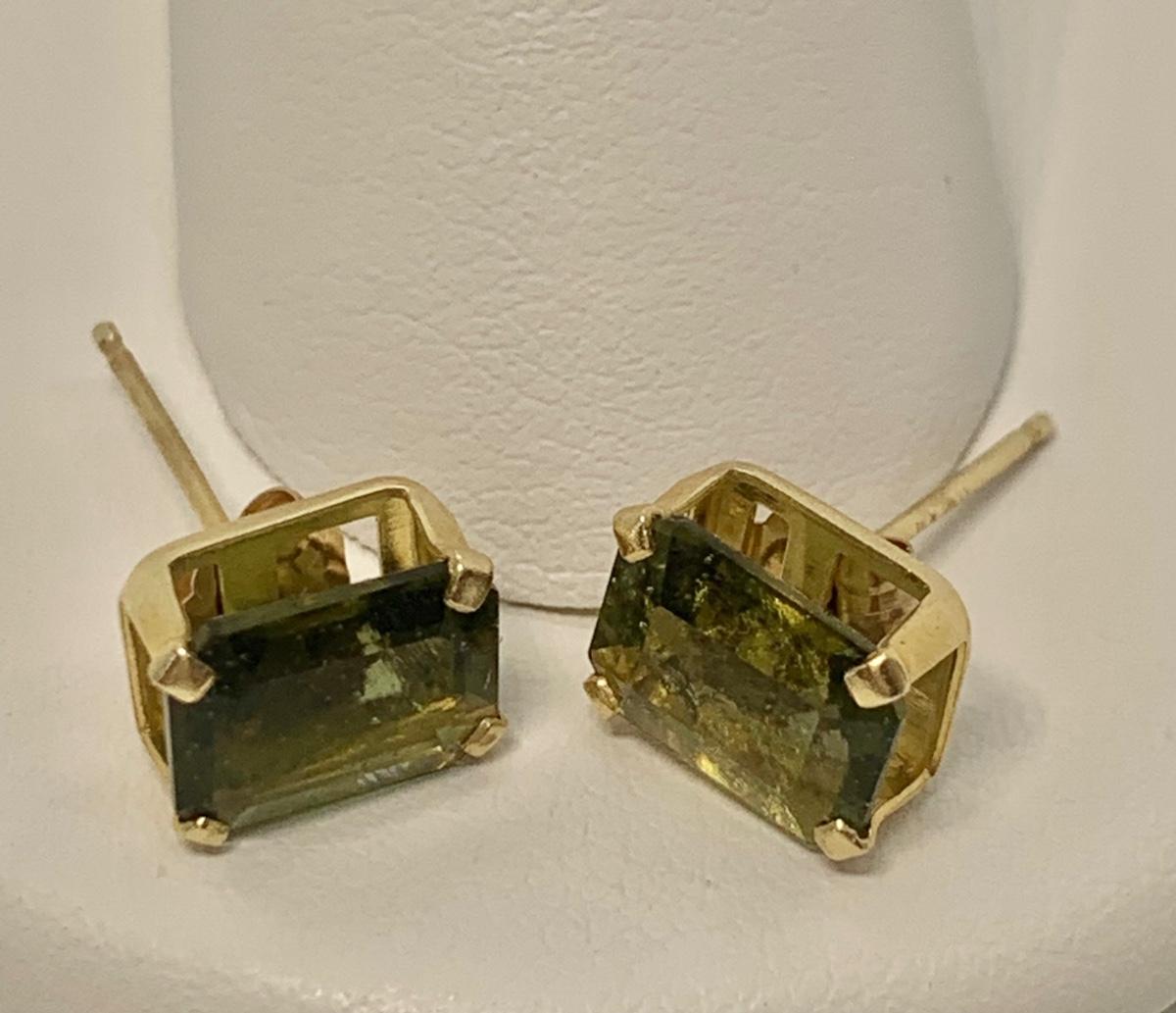 LOT 7: 14k 1.0g Peridot Emerald Cut Pierced Earrings