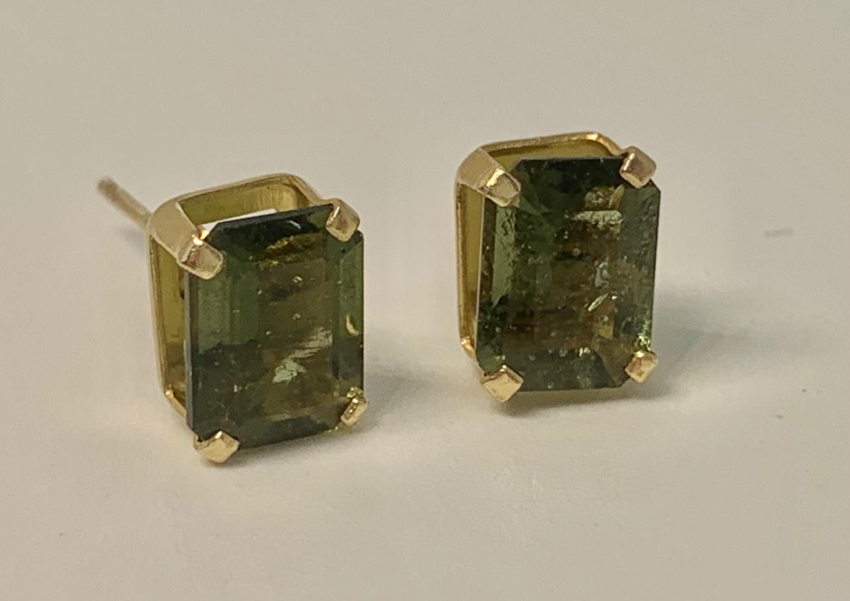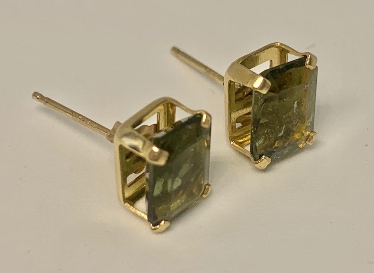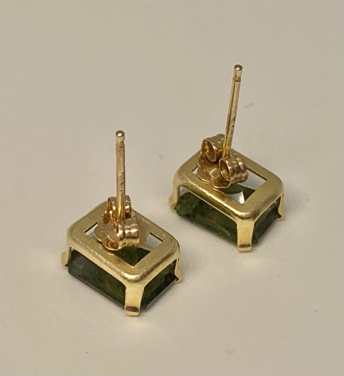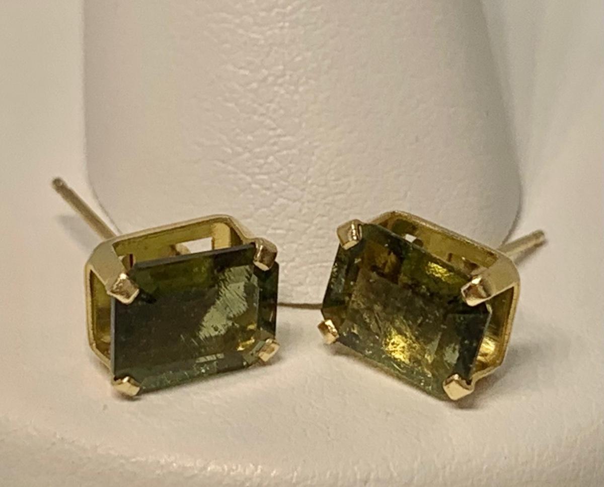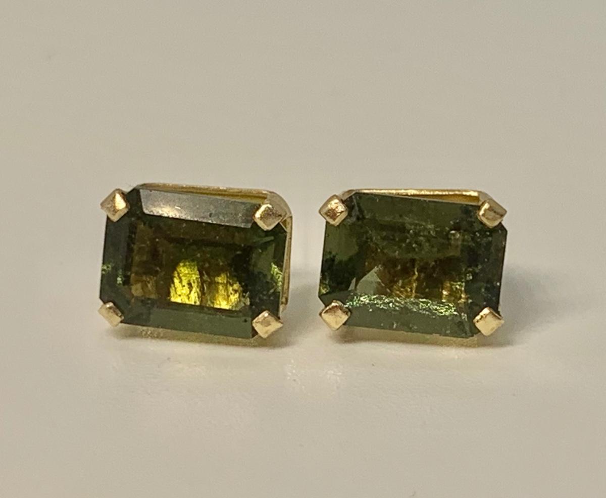 LOT 7: 14k 1.0g Peridot Emerald Cut Pierced Earrings
