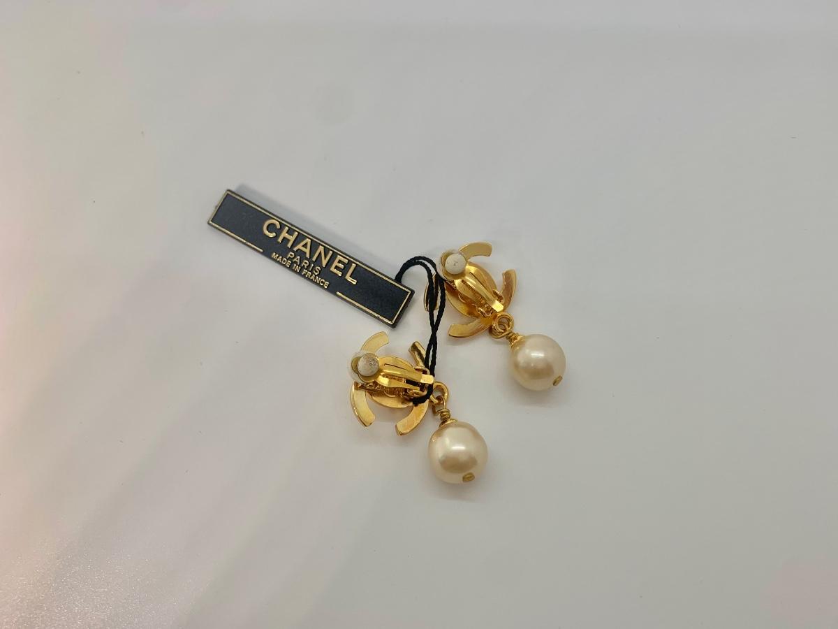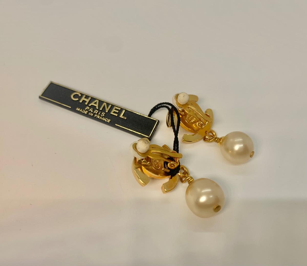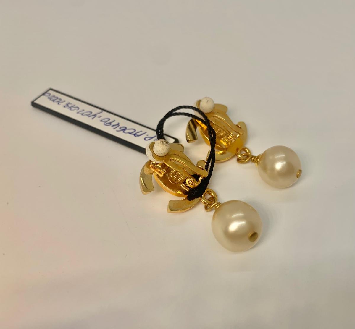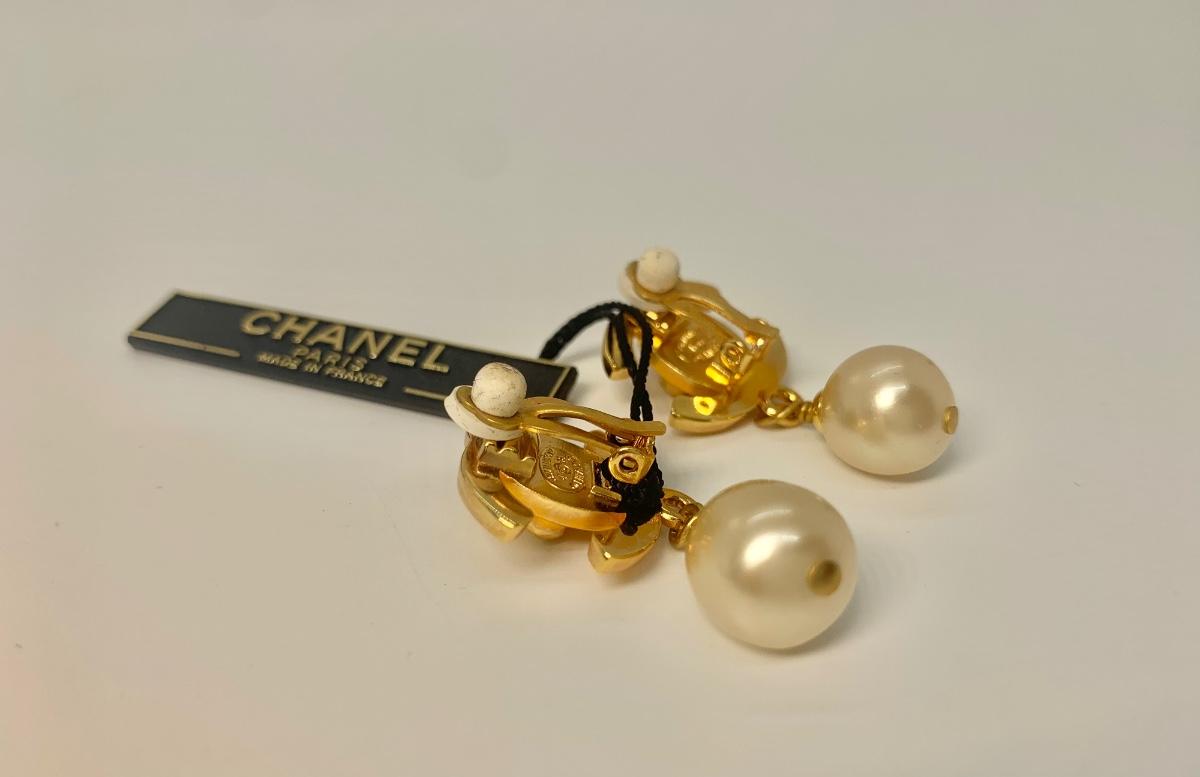 Chanel Paris made in France big bold pearl drop clip on earrings