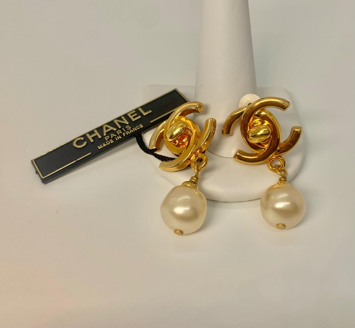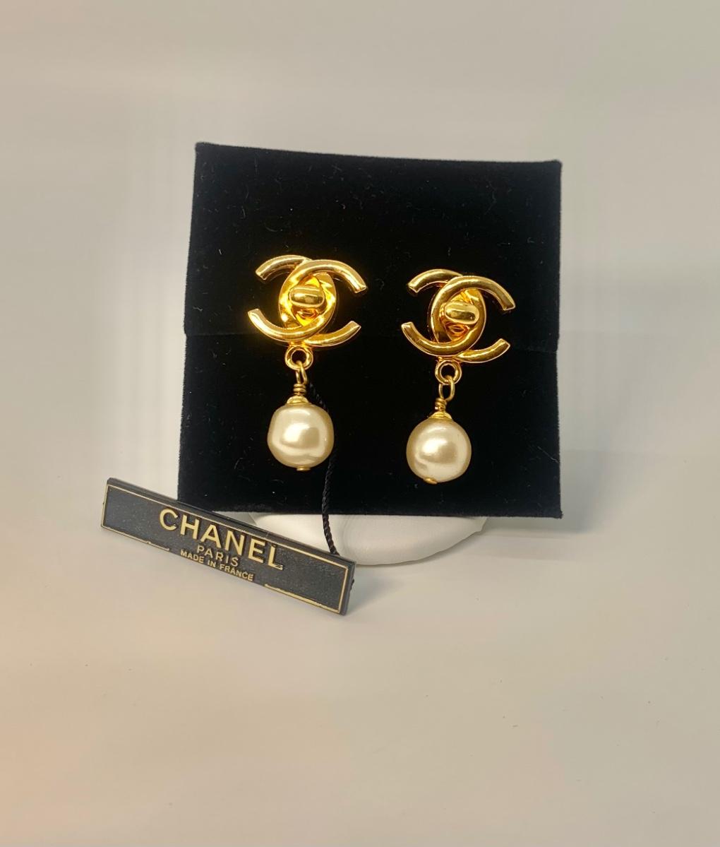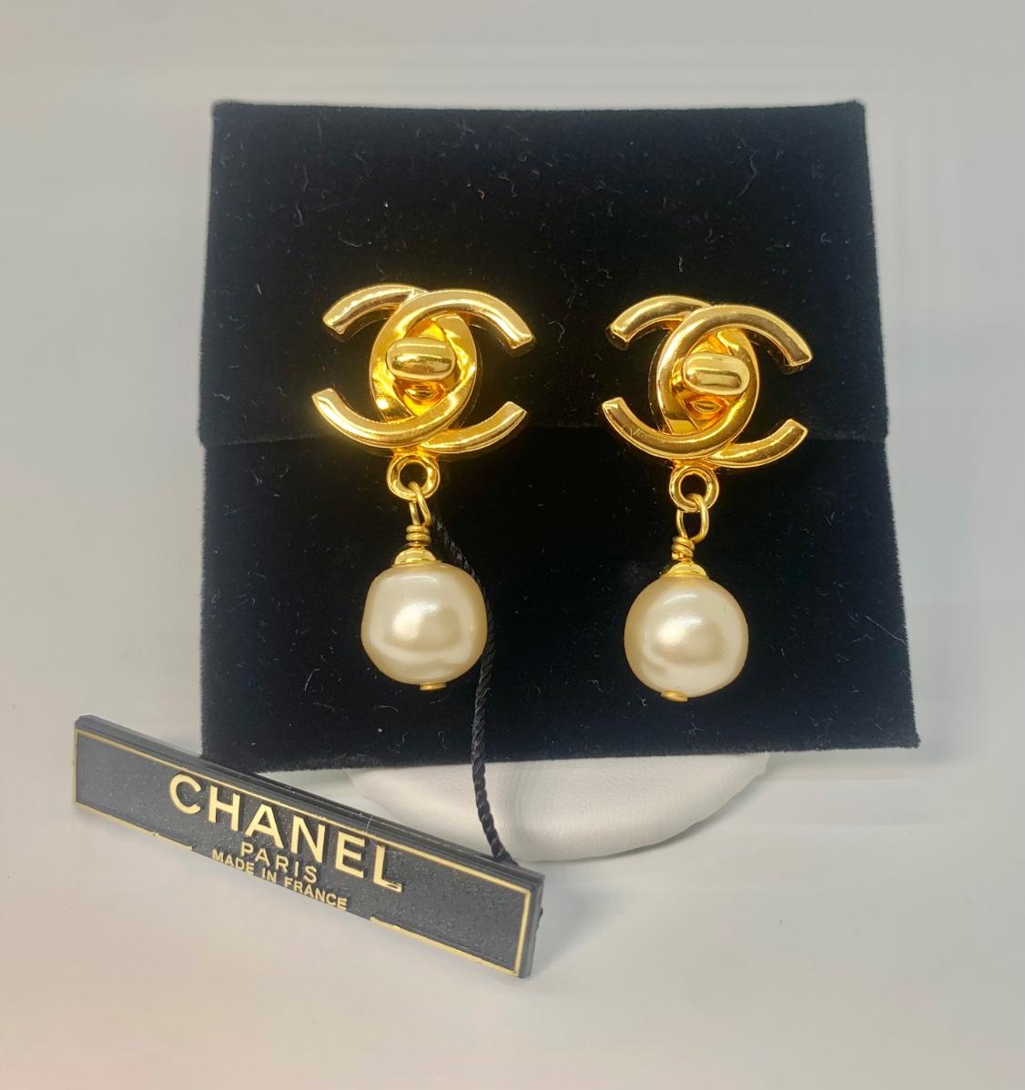 Chanel Paris made in France big bold pearl drop clip on earrings