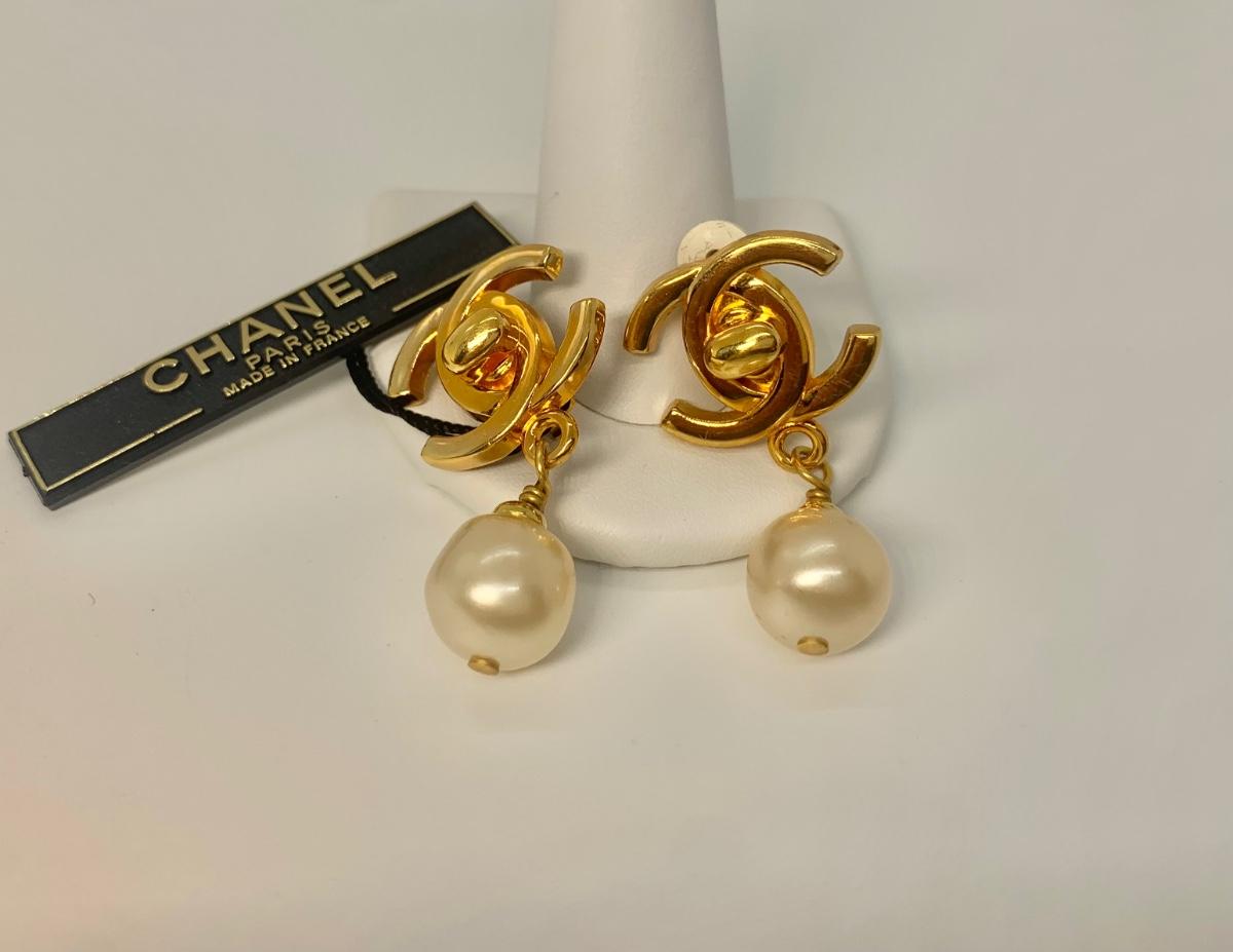 LOT 12: Chanel Paris Made in France Big Bold Pearl Drop Clip on Earrings