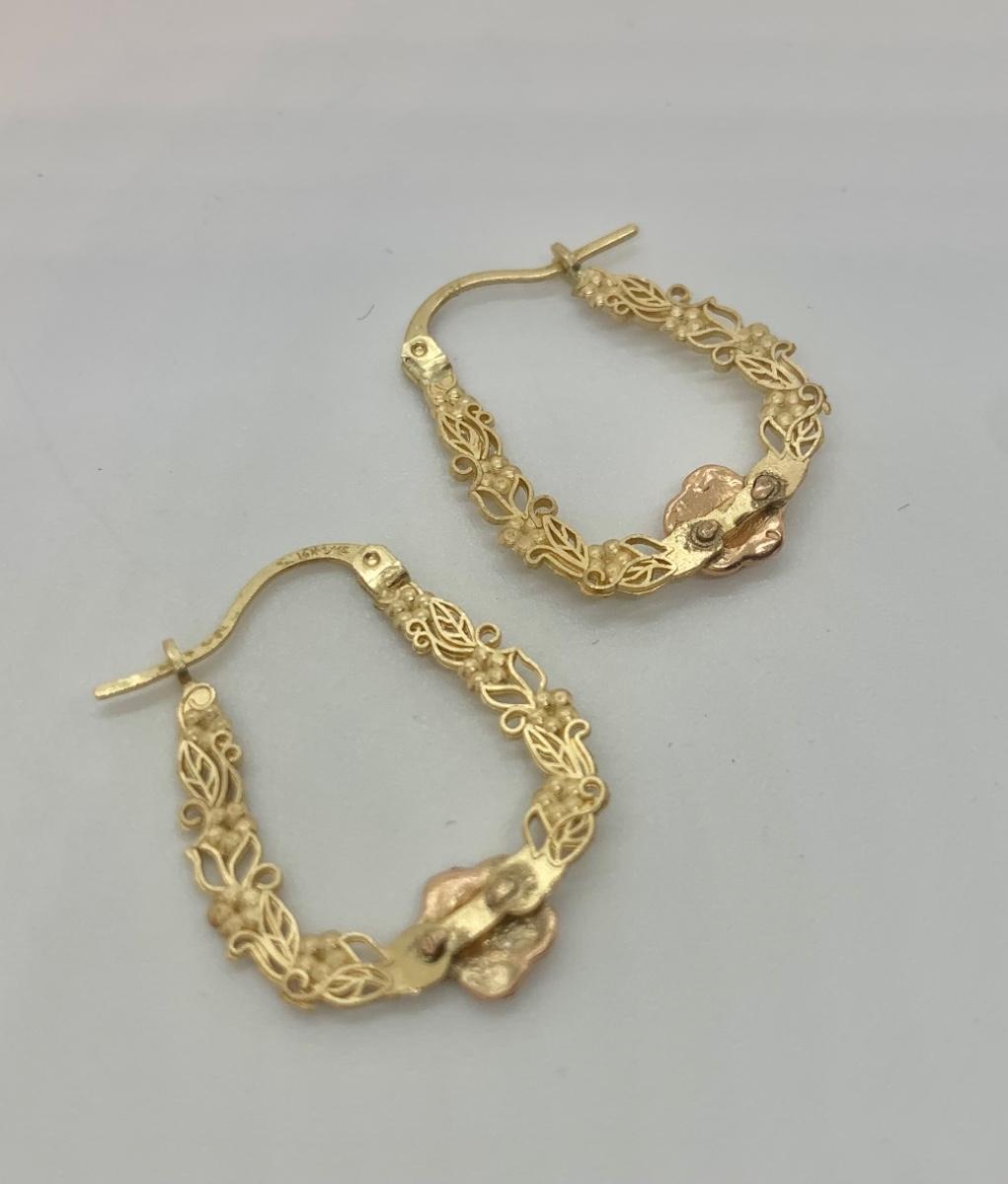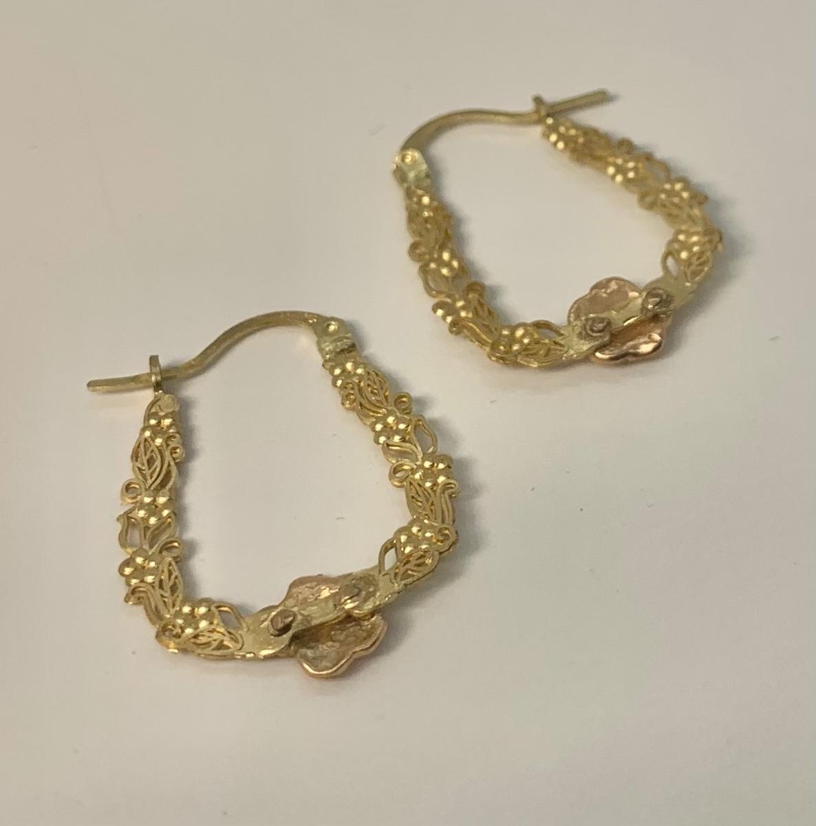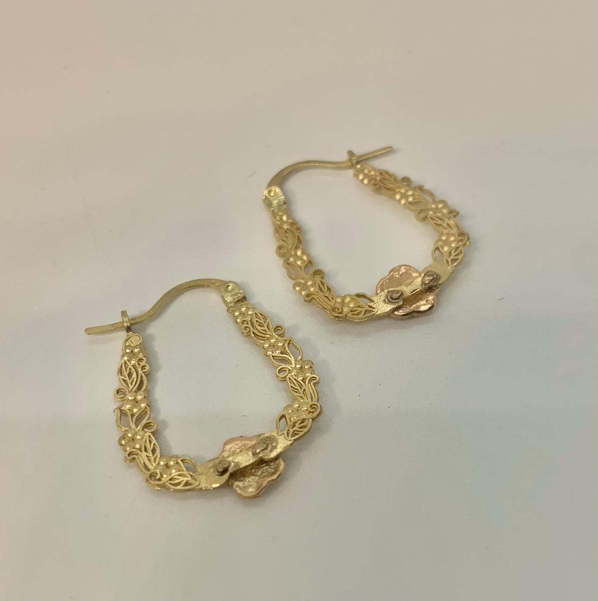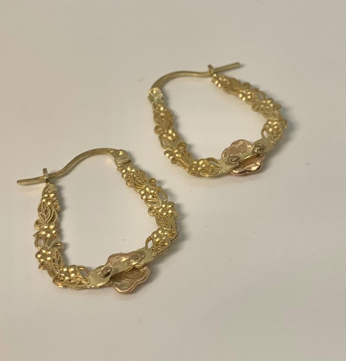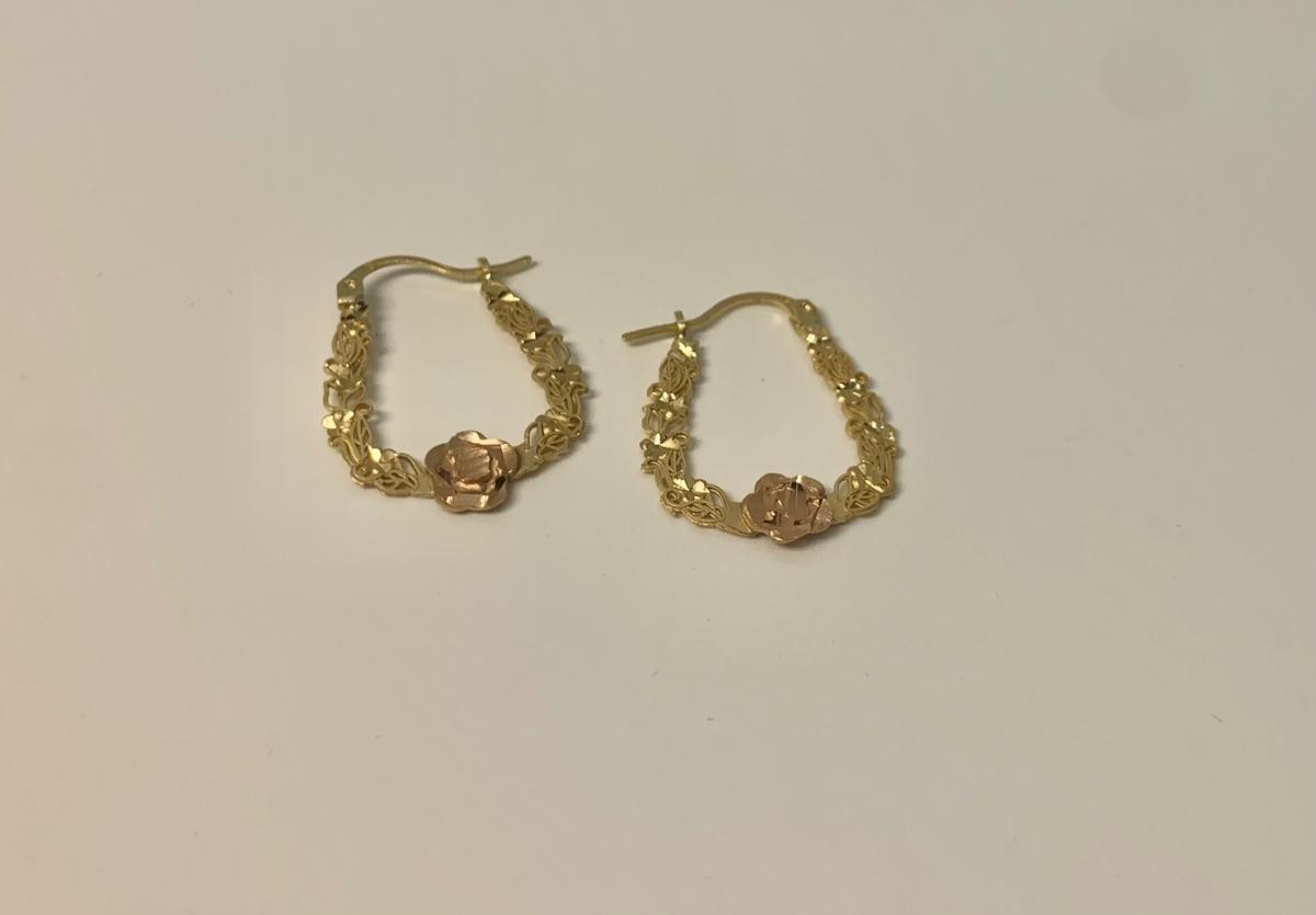 LOT 15: 14k, 2.25g Michael Anthony Two Tone Pierced Earrings Yellow Gold w/Rose Gold Flower