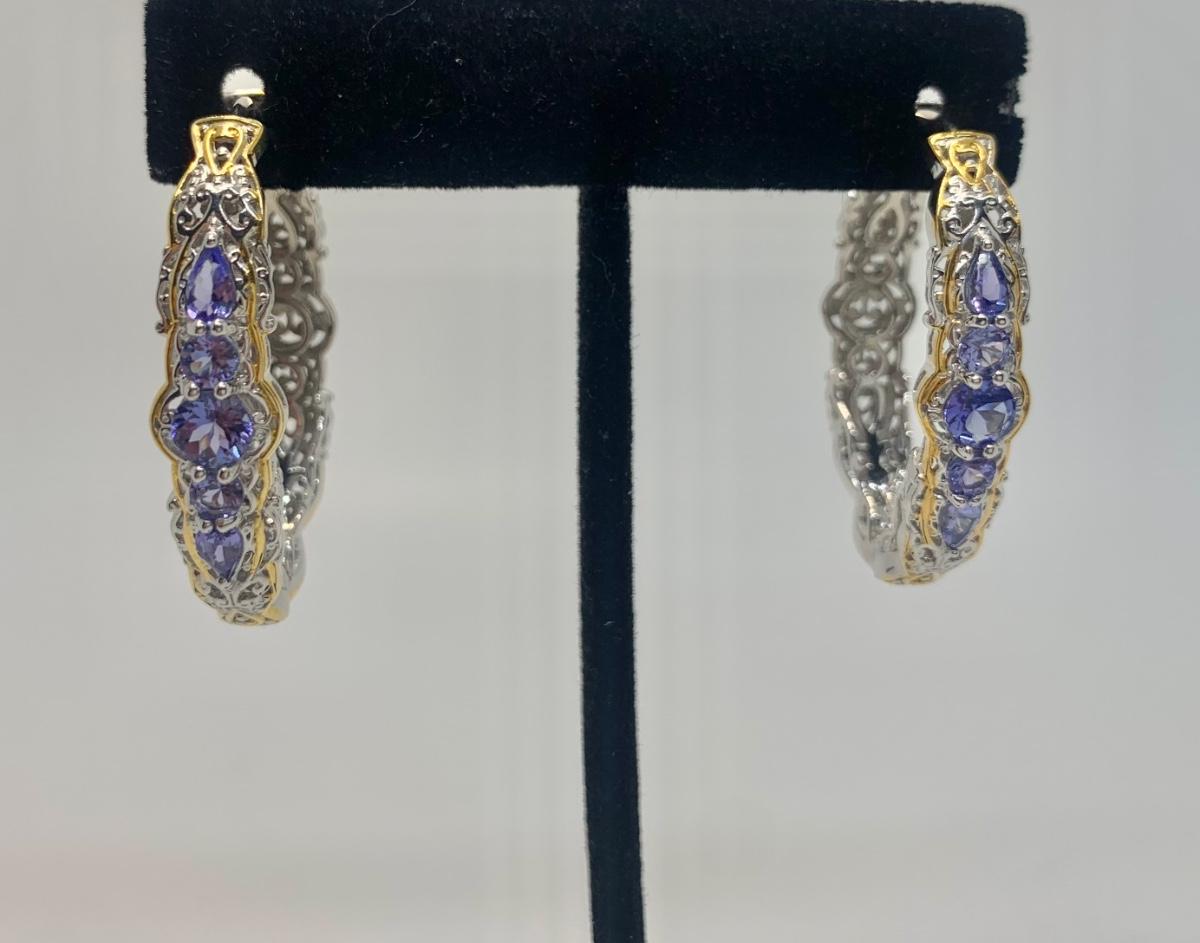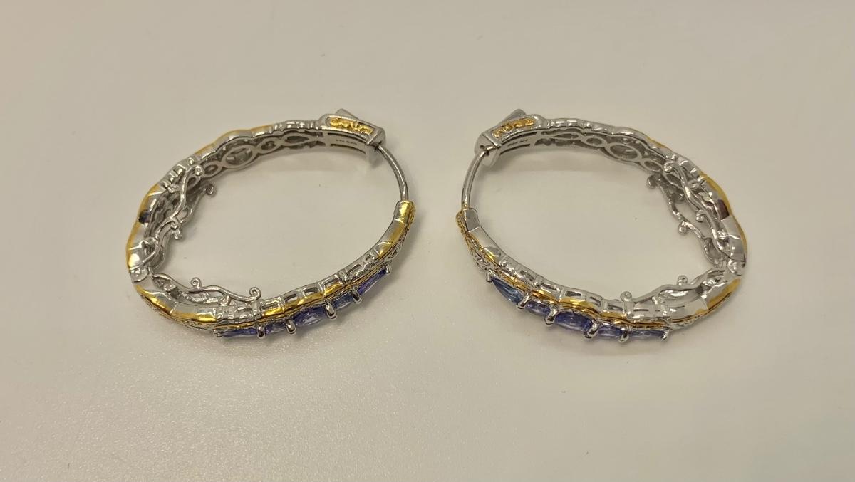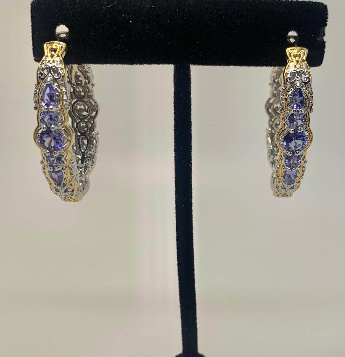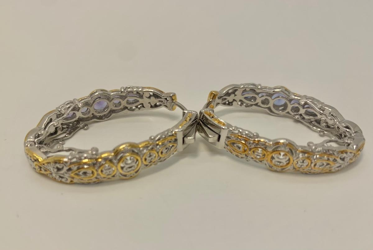 LOT 16: 925 NH  Two Tone Tanzanite Hoop Earrings