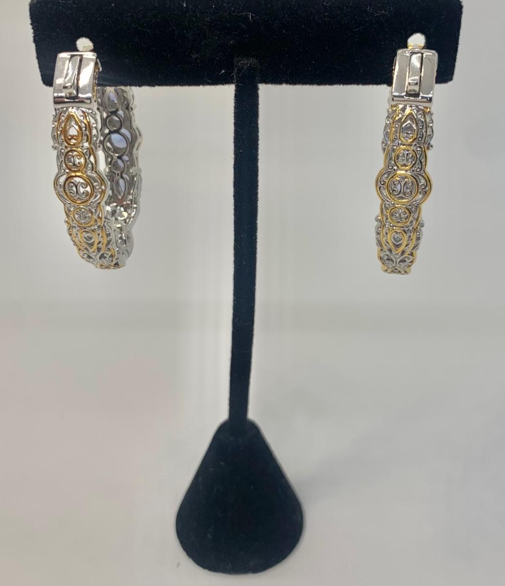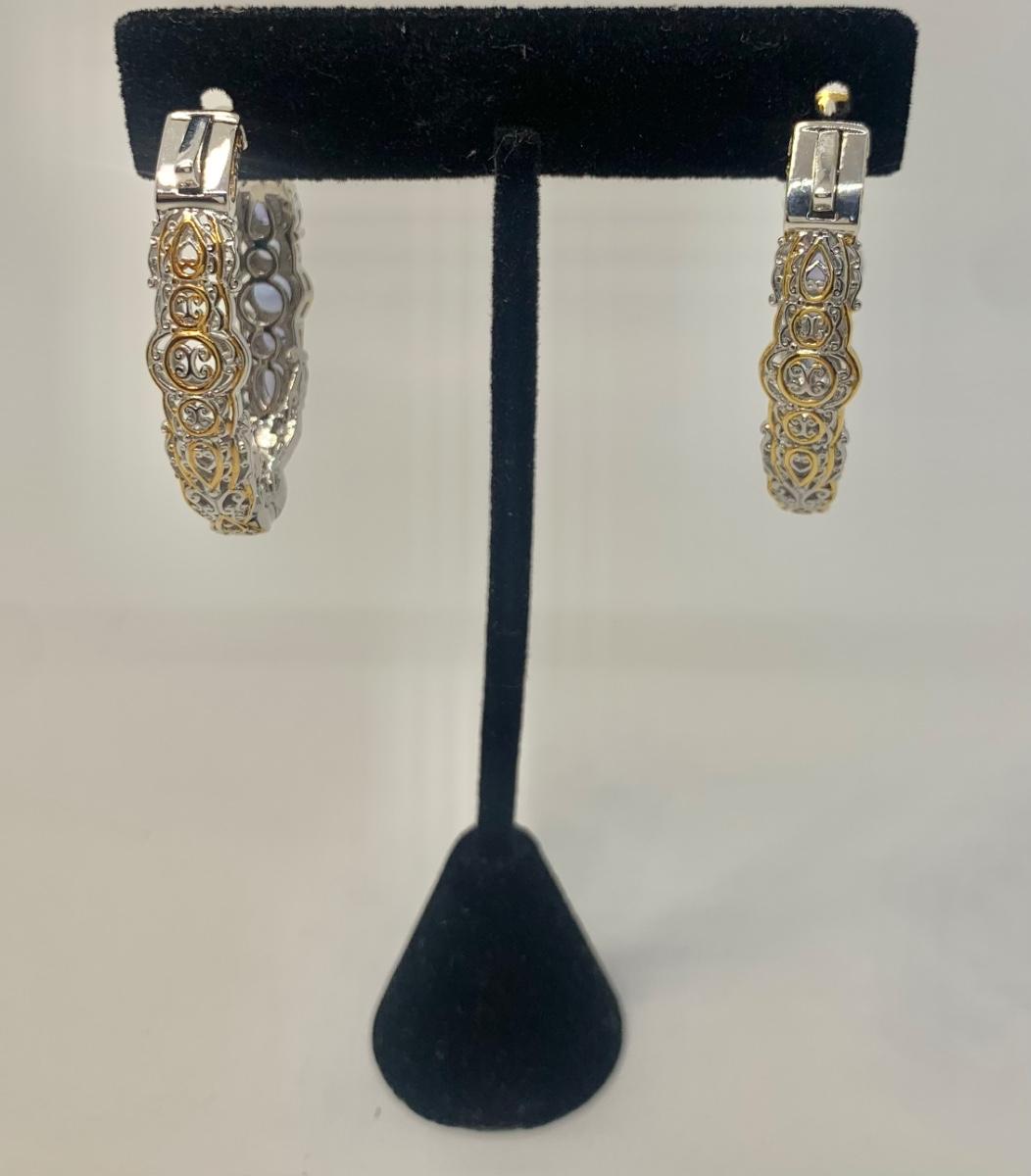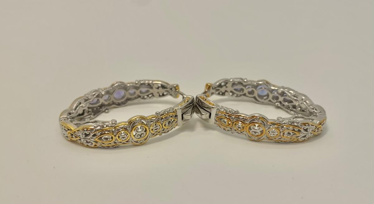 LOT 16: 925 NH  Two Tone Tanzanite Hoop Earrings