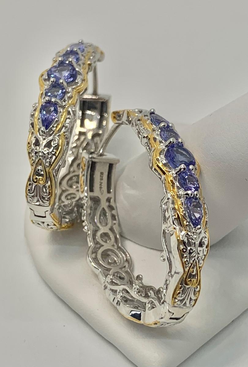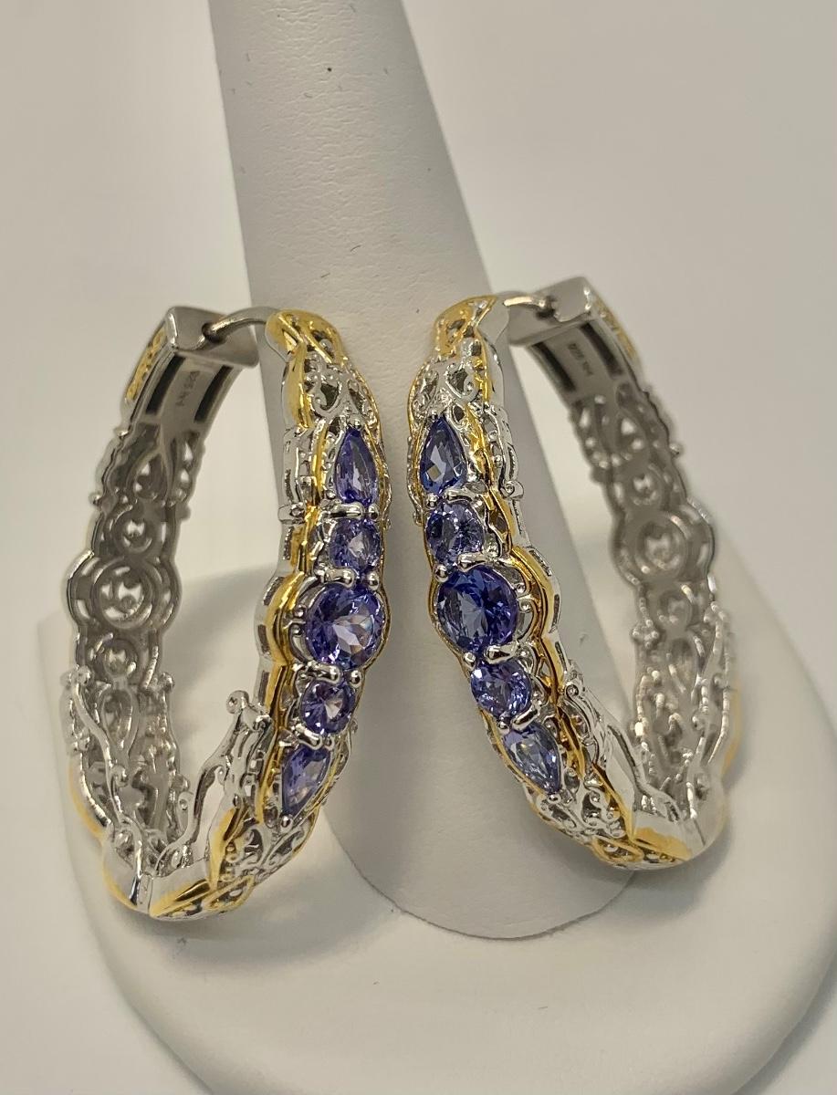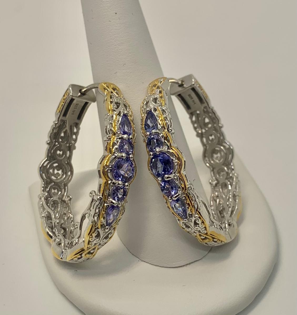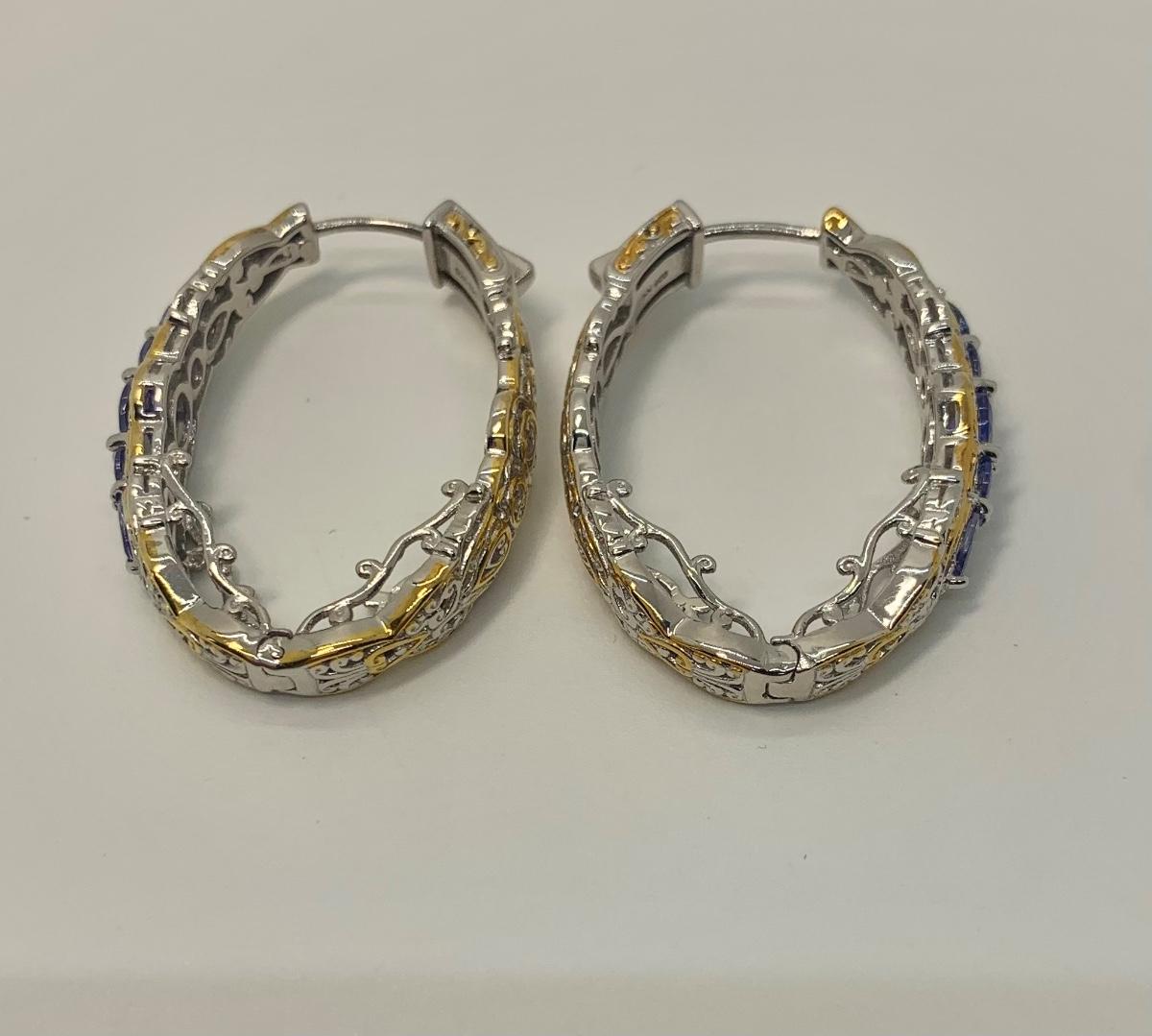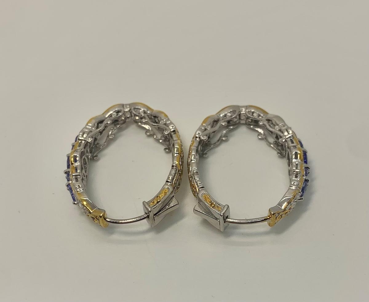 LOT 16: 925 NH Two Tone Tanzanite Hoop Earrings