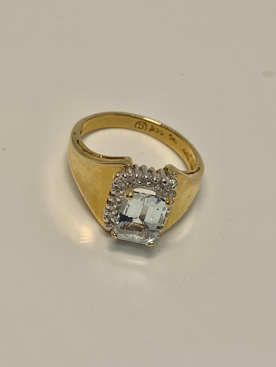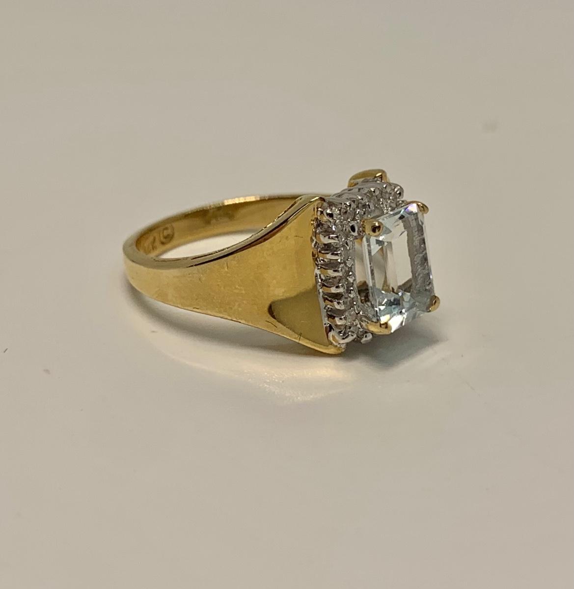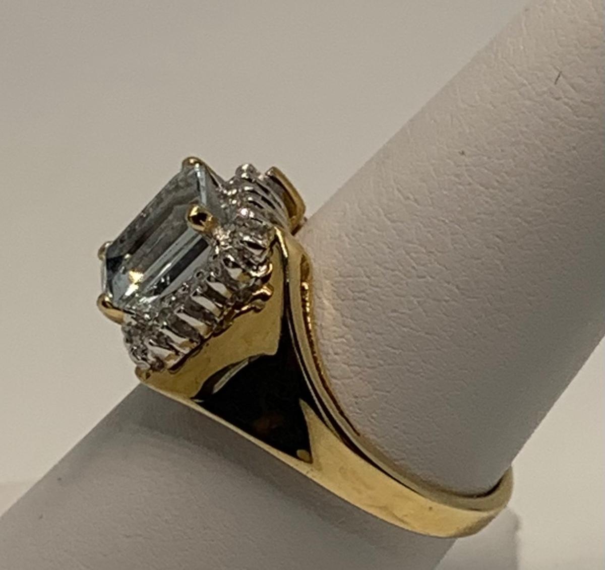 LOT 22: 5g 14k yellow gold Aquamarine Ring w/Diamond Halo