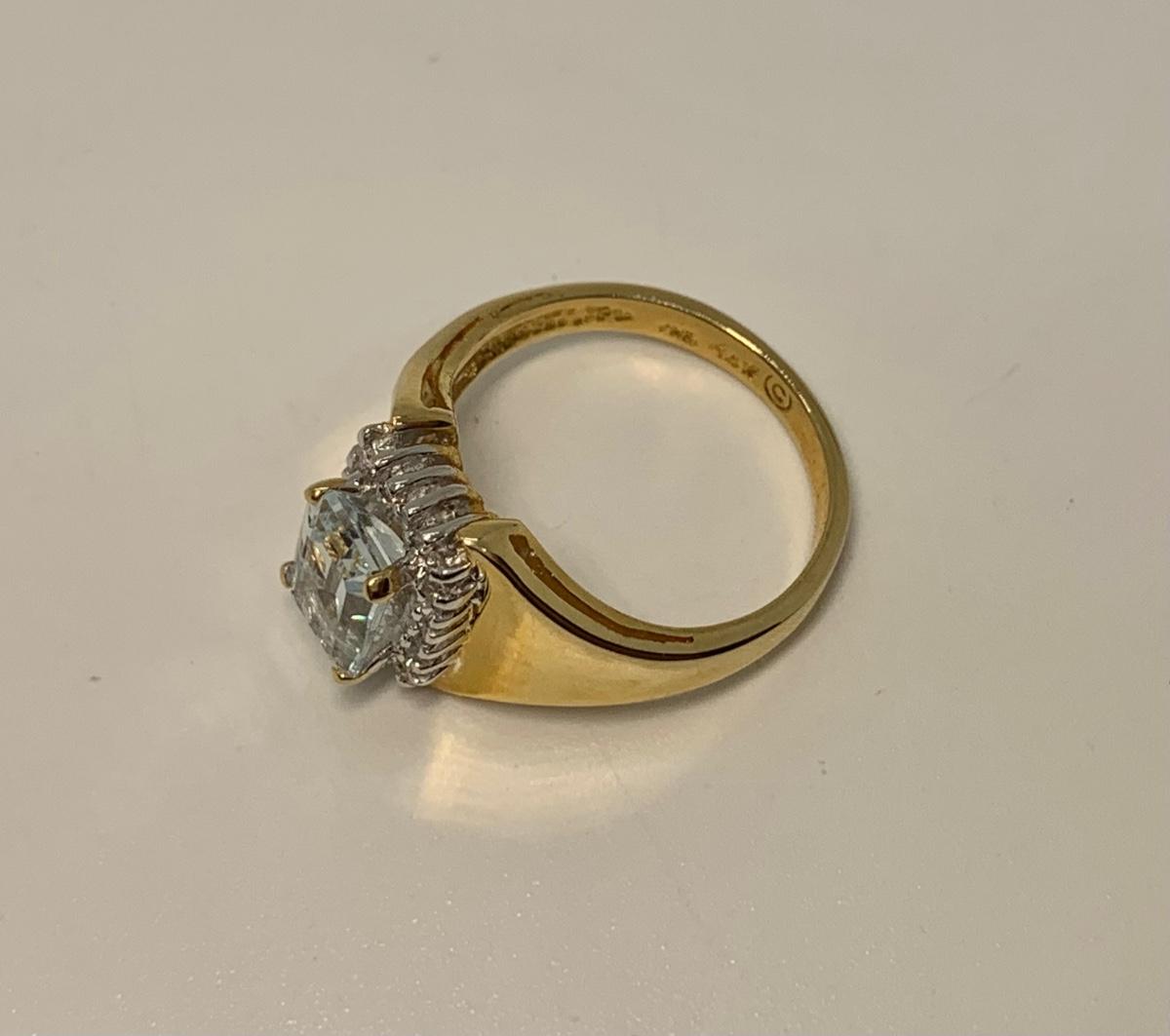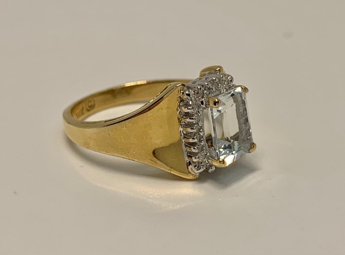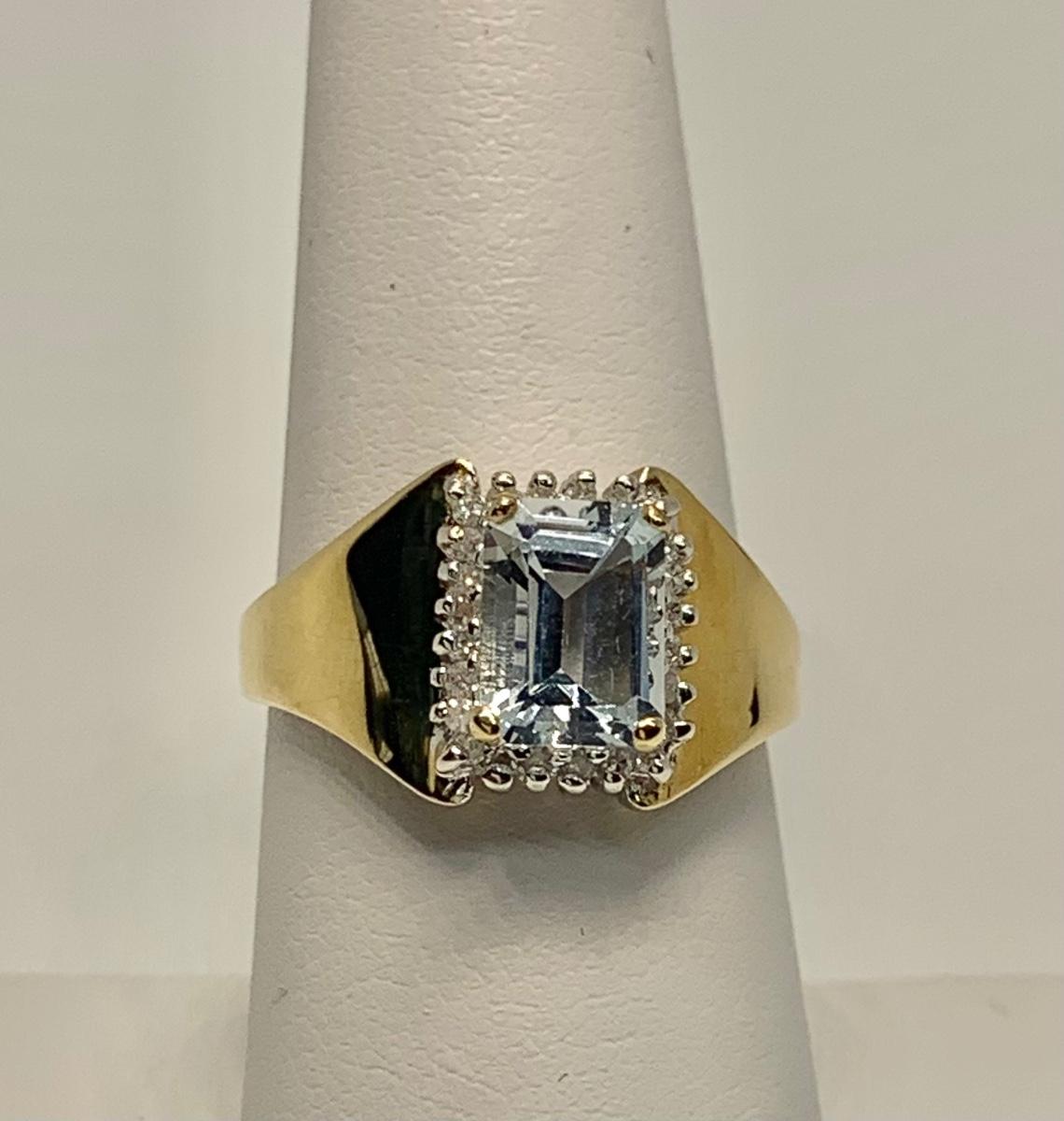 LOT 22: 5g 14k yellow gold Aquamarine Ring w/Diamond Halo
