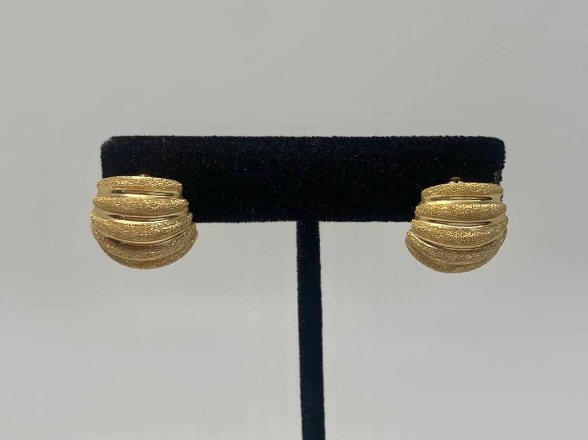 LOT 23: 14k PE 13.2g Druzy Quartz Yellow Gold Pierced Earrings