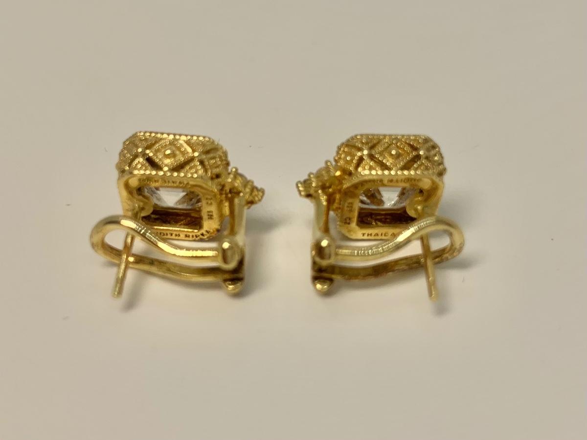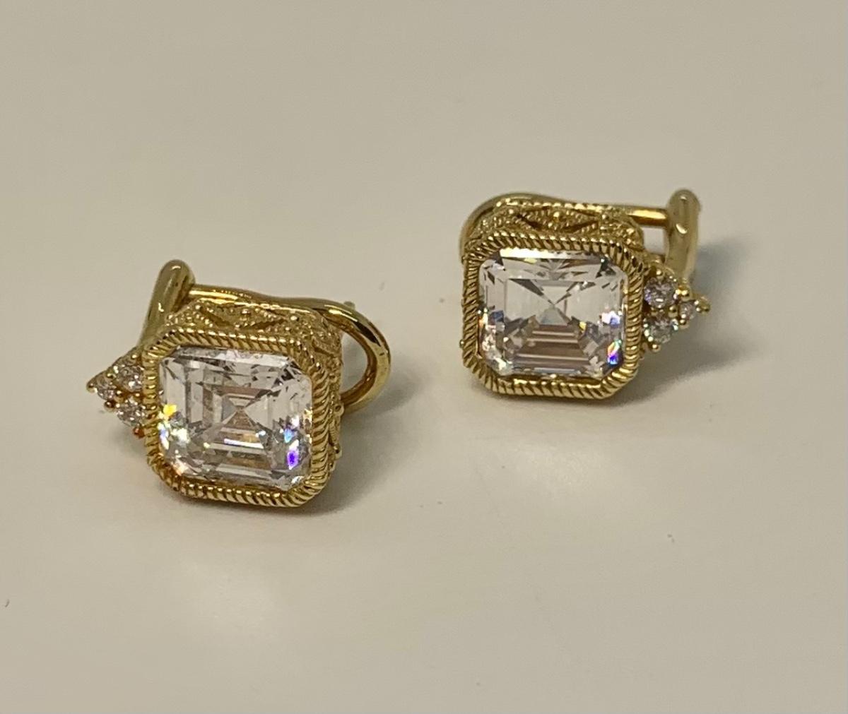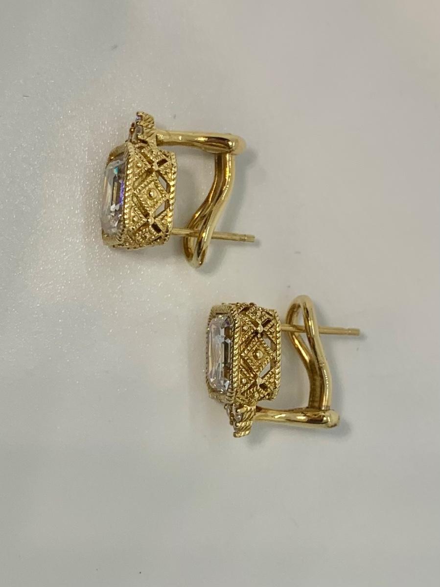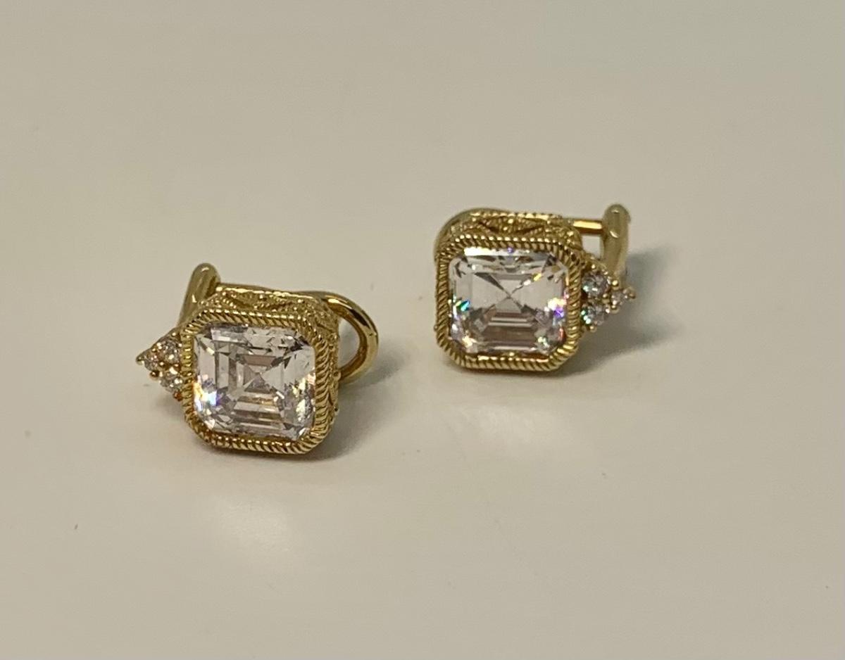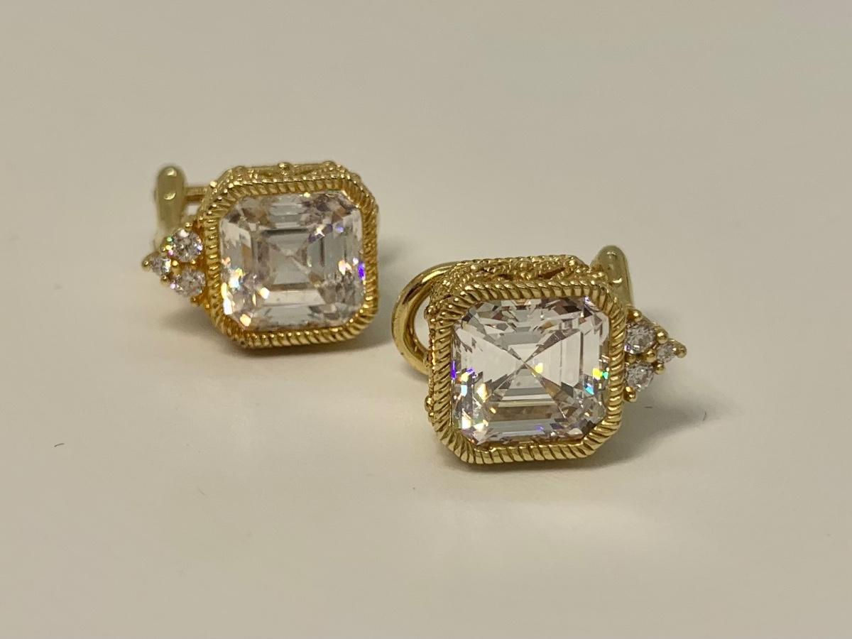 LOT 29: 925 Judith Ripka Cubic Zirconia Square Stone Pierced Lever Back Earrings