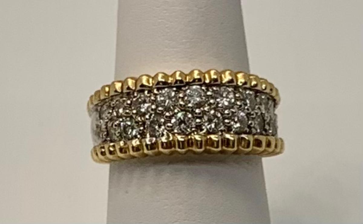 LOT 34: 14k 8.25g Diamond Two-Tone Yellow & White Gold Ring - Size 7