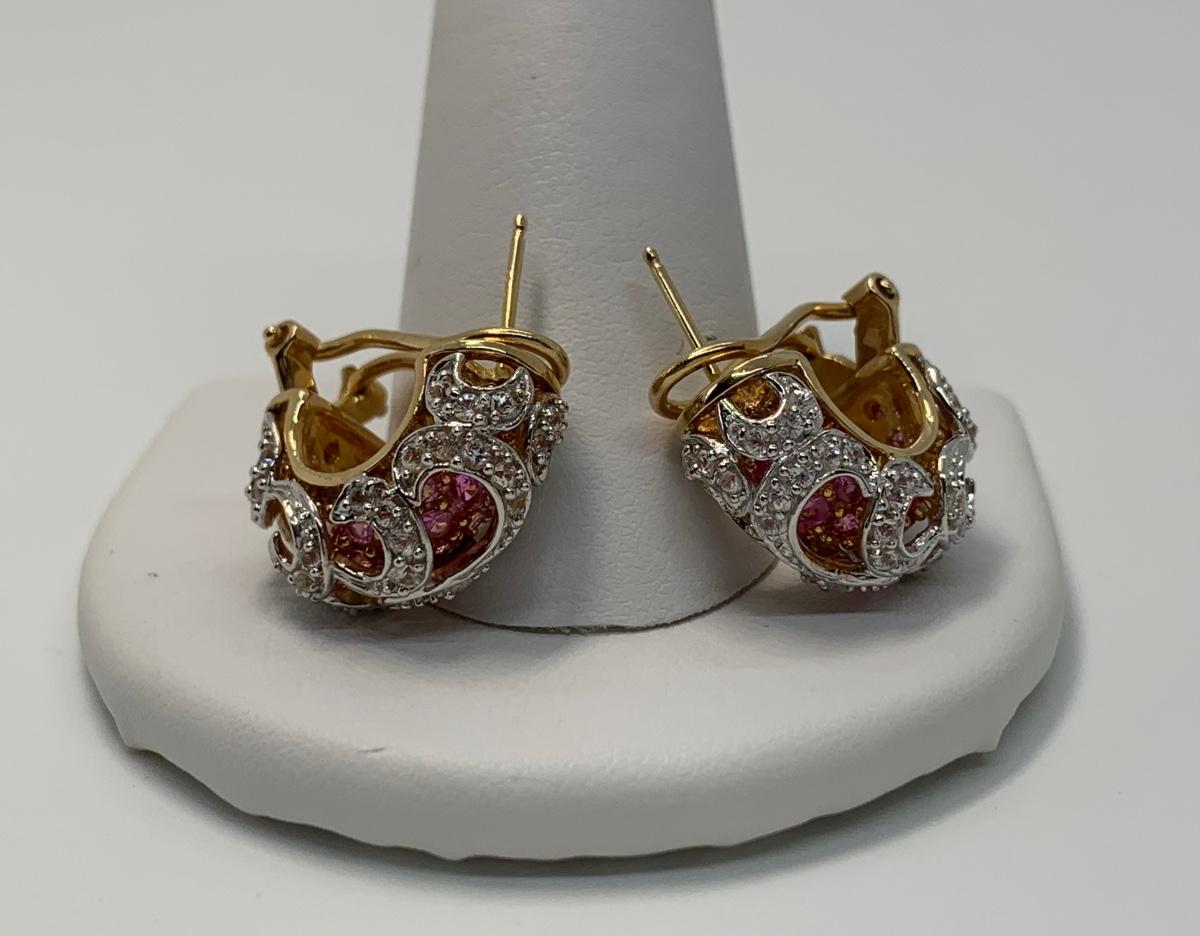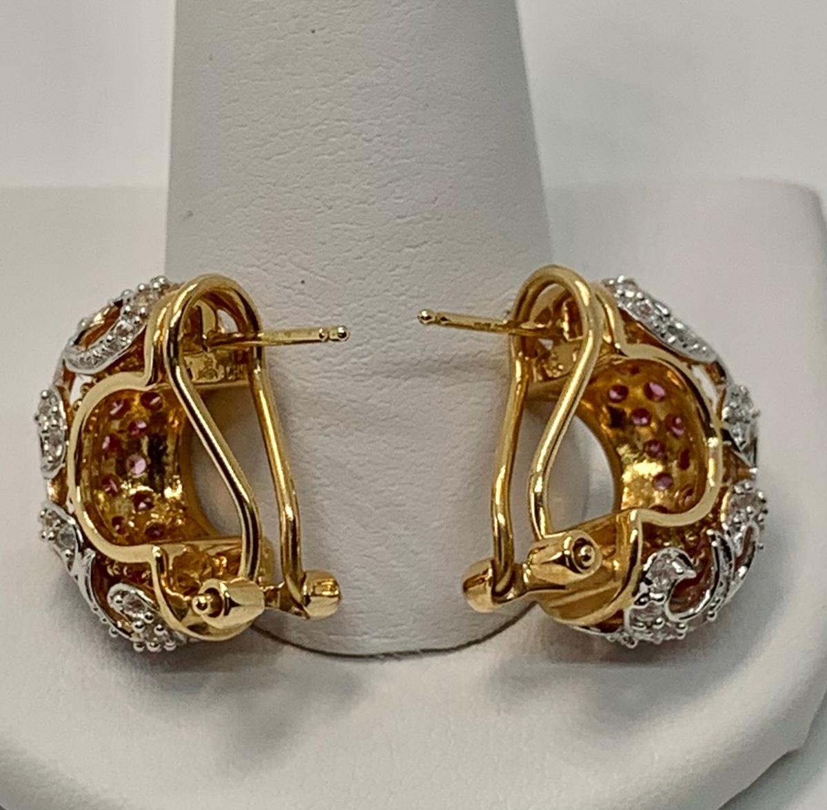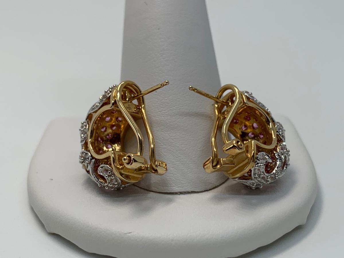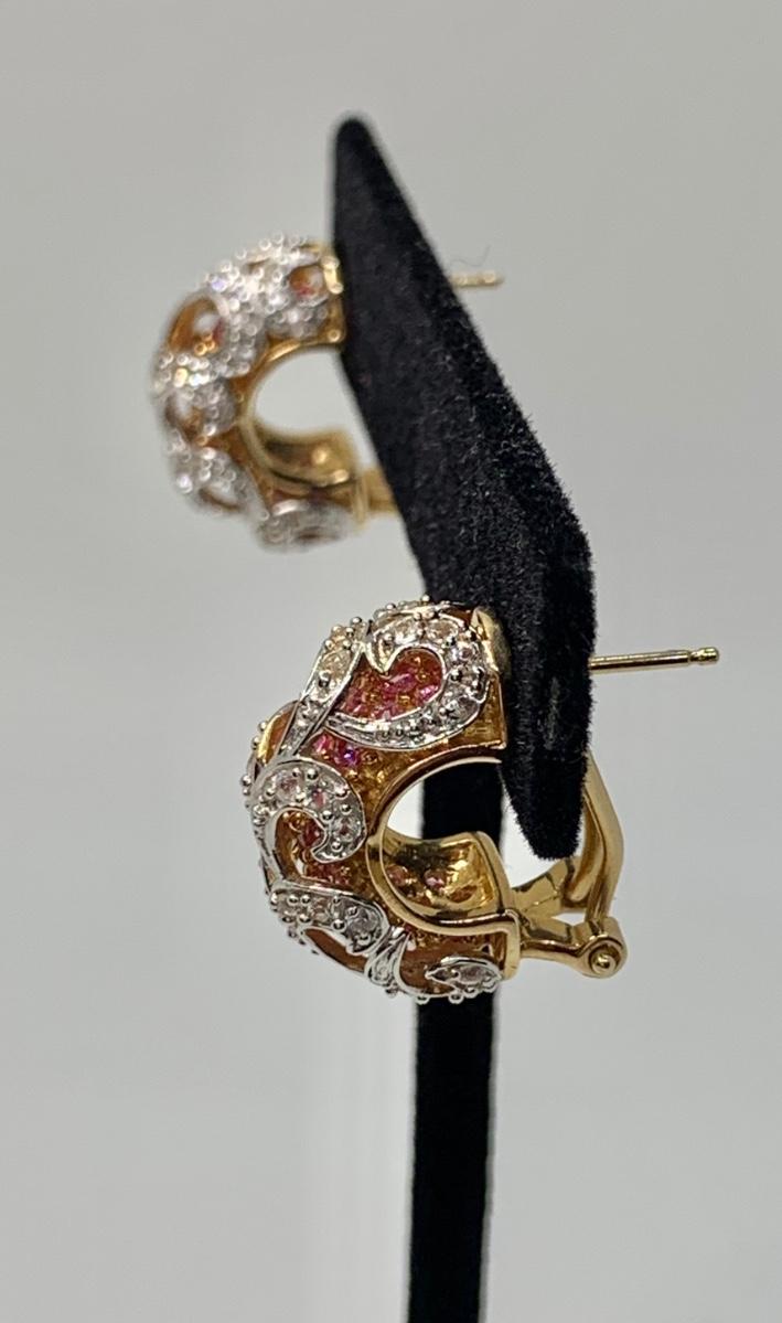 LOT 35: 14k 9.79g Yellow Gold Pink Sapphires & Diamonds Lever Back Pierced Earrings
