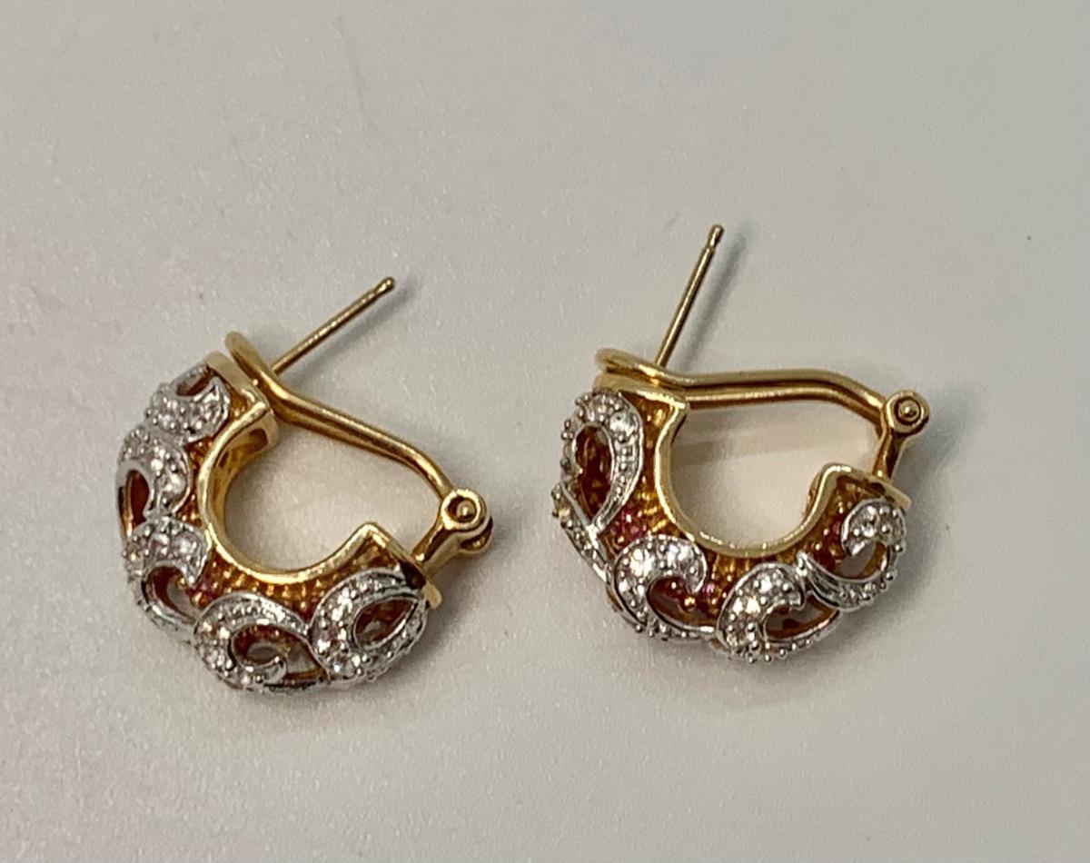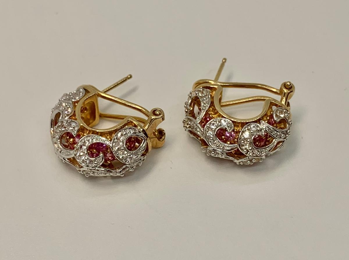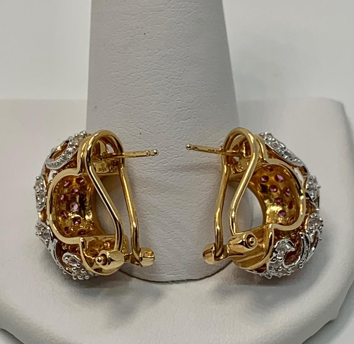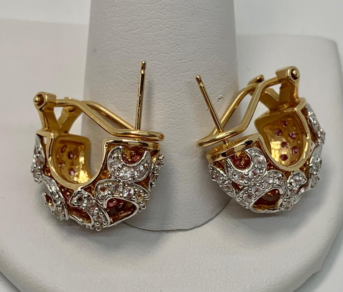 LOT 35: 14k 9.79g Yellow Gold Pink Sapphires & Diamonds Lever Back Pierced Earrings