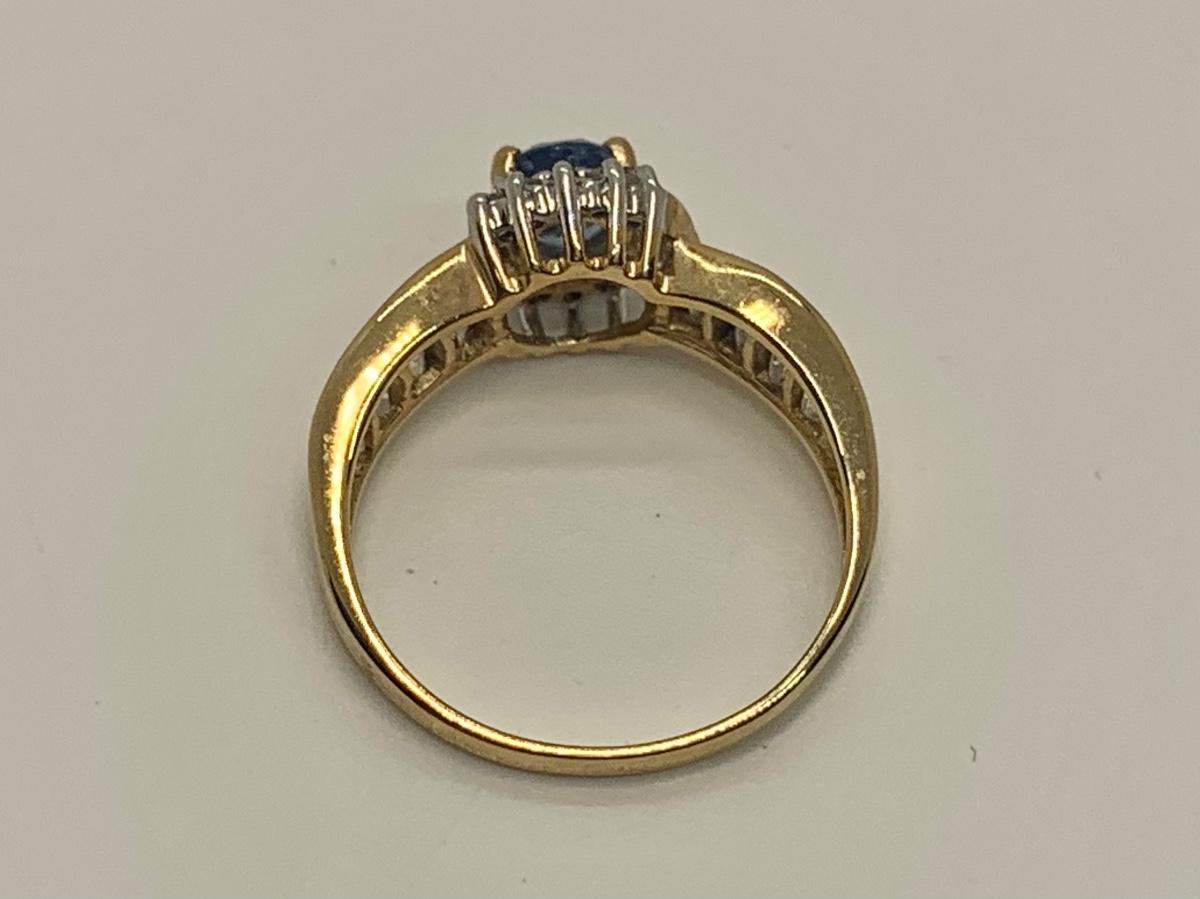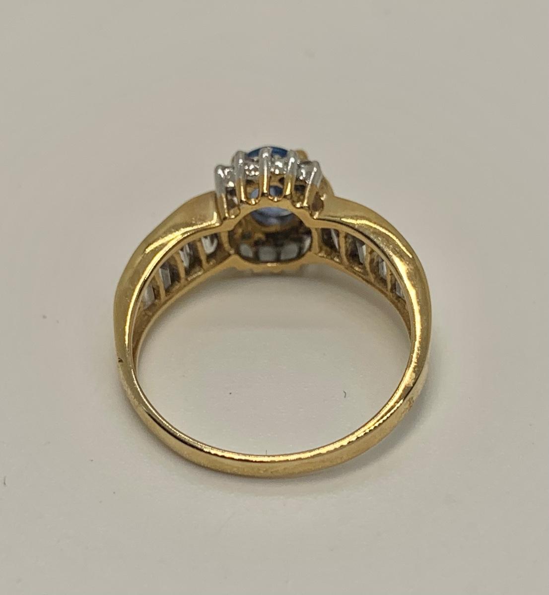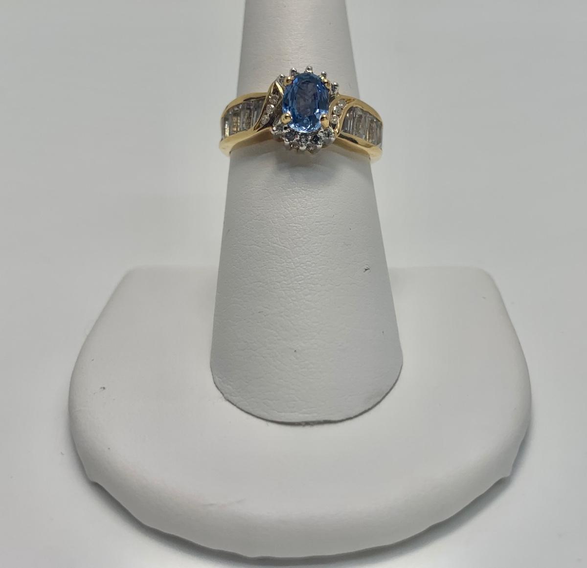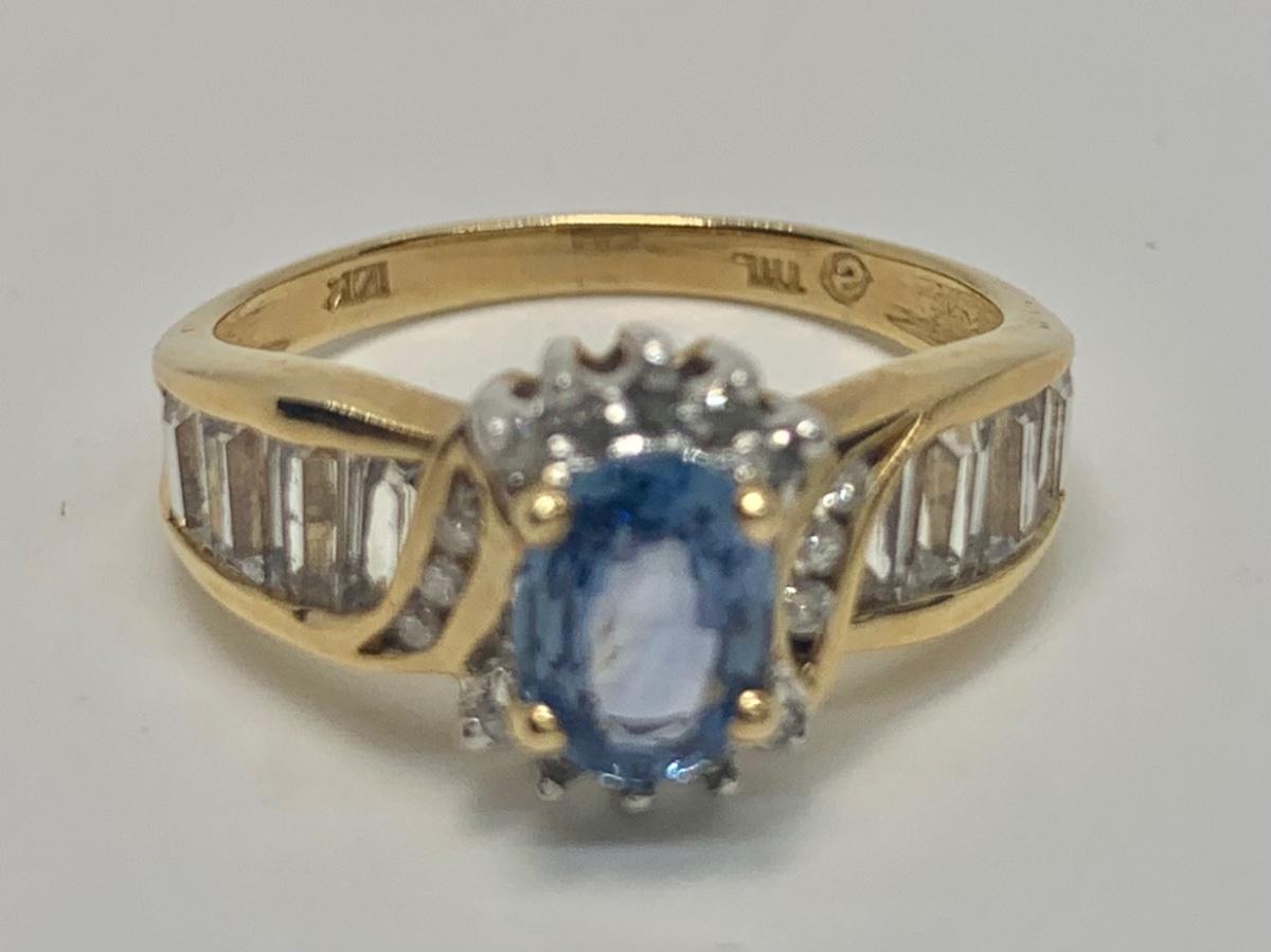 LOT 40: 14k 3.65g Sapphire Diamond Halo & Baguette's - Size 7.5