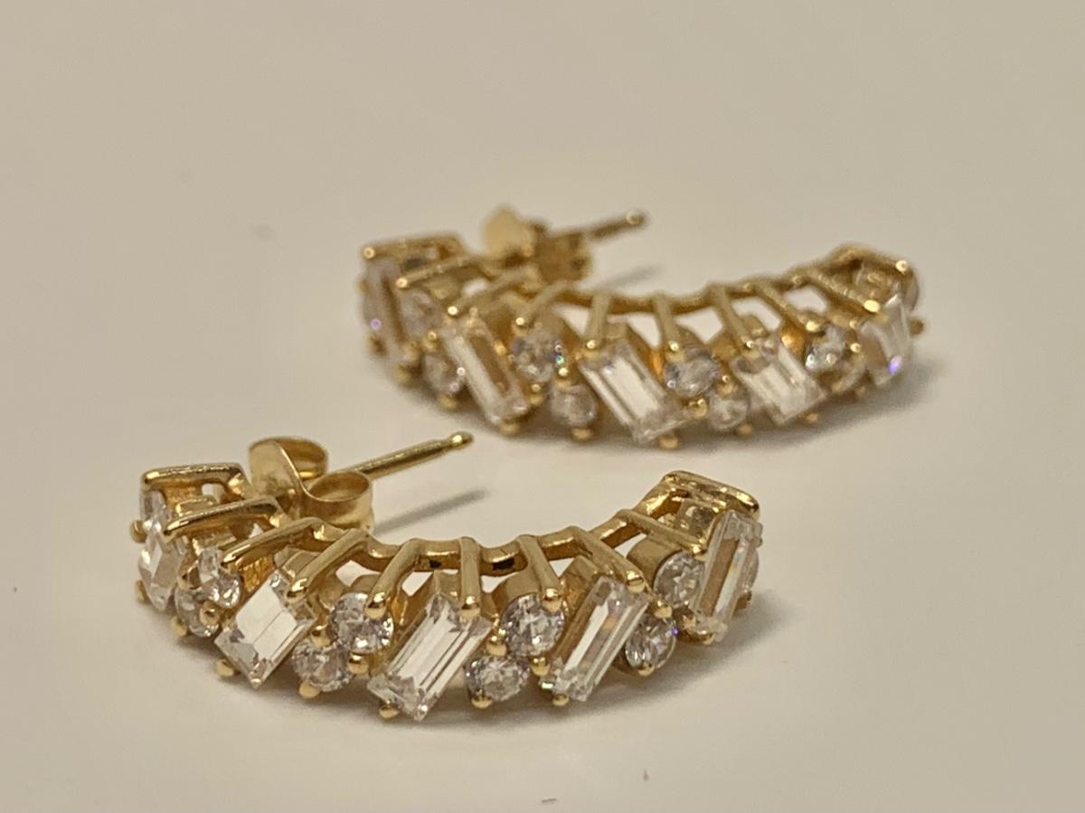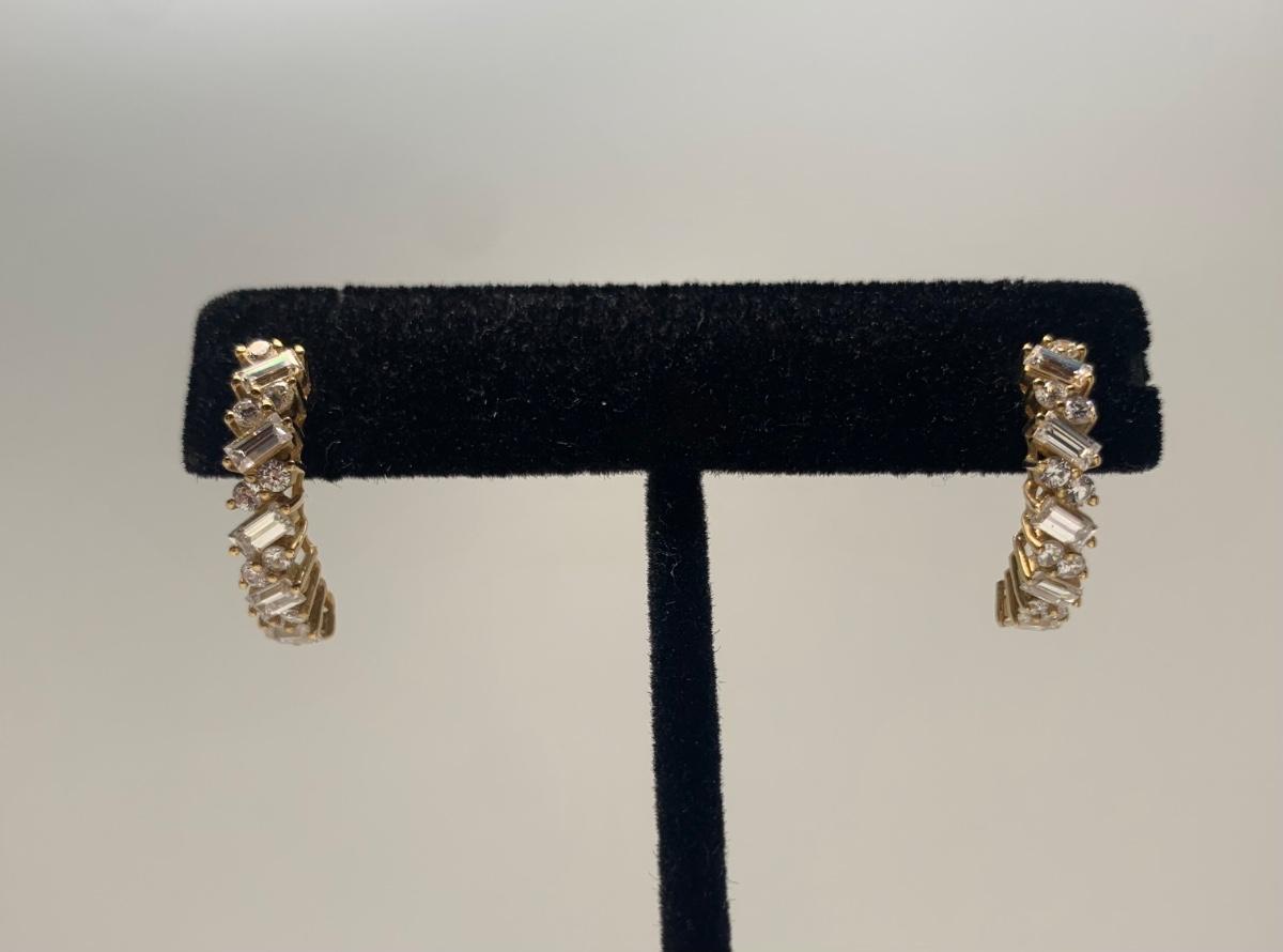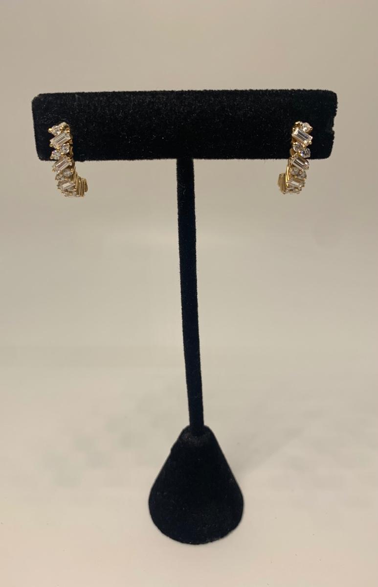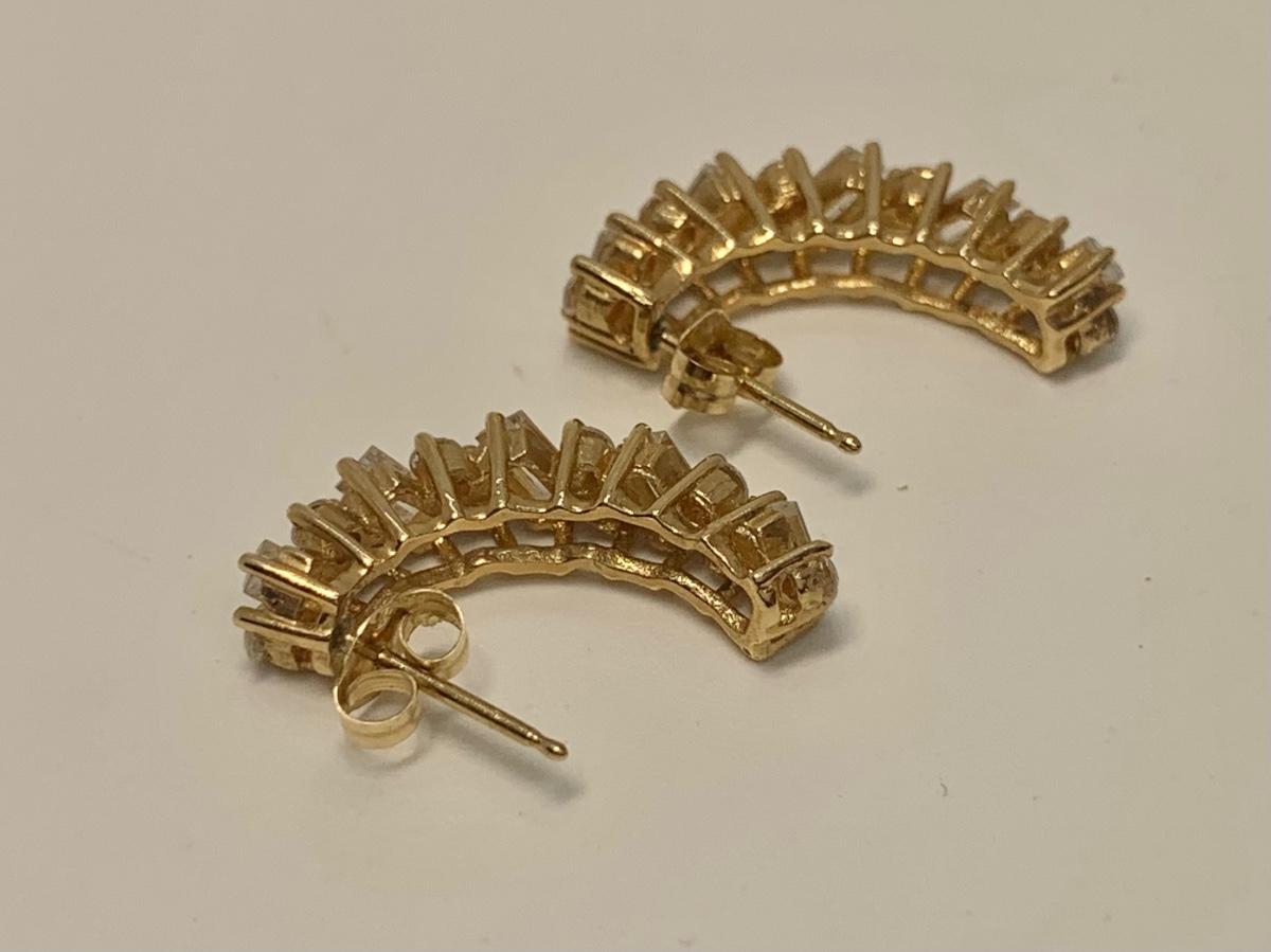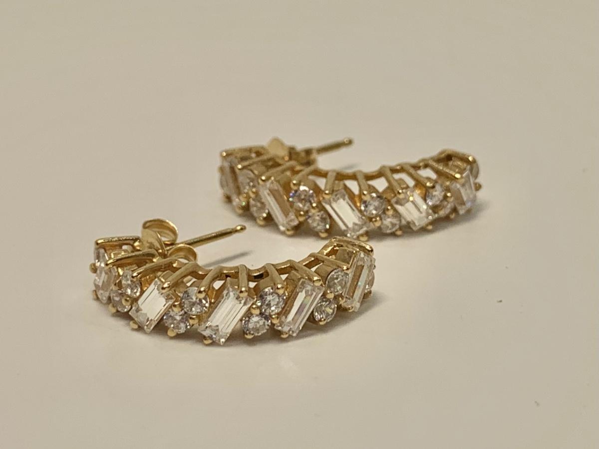 LOT 45: 14k 3.64g Round & Bagguette 1/2 Hoop CZ Pierced Earrings