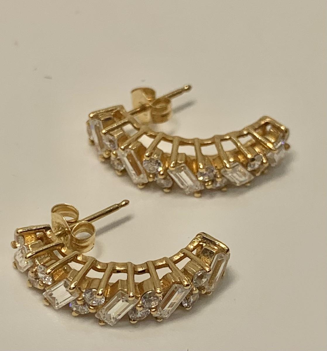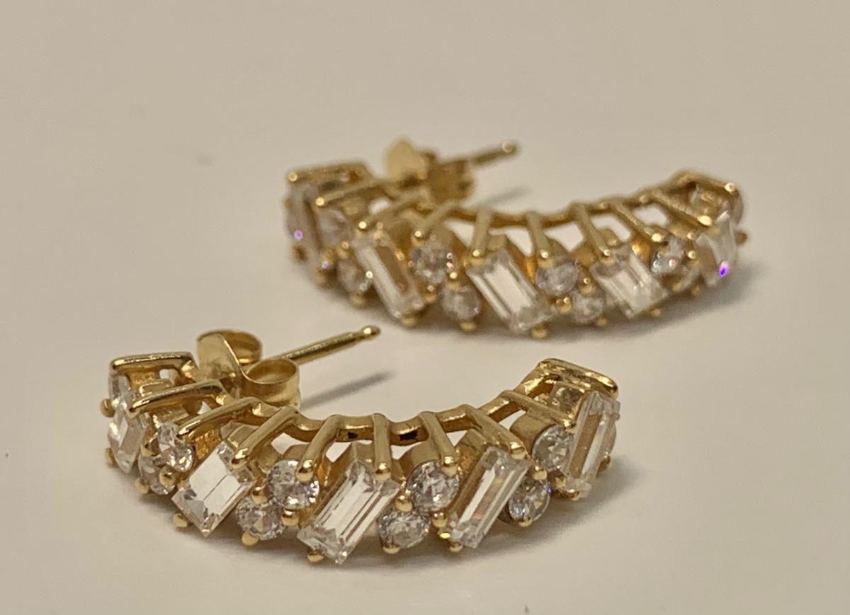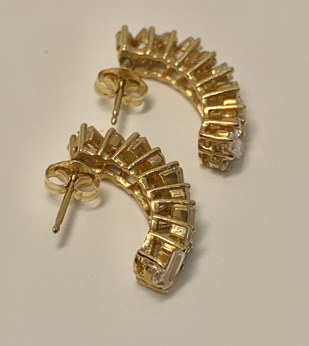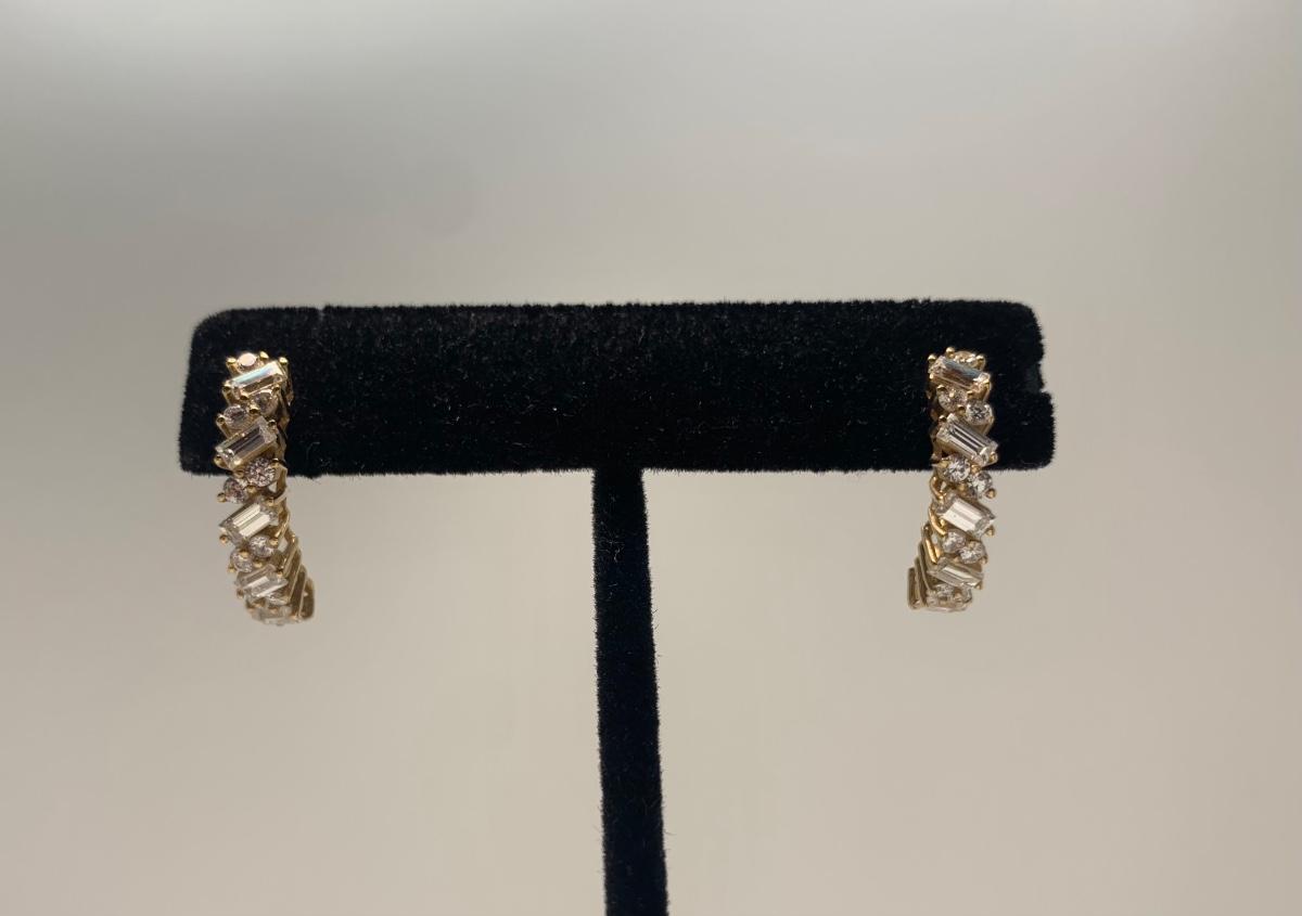 LOT 45: 14k 3.64g Round & Bagguette 1/2 Hoop CZ Pierced Earrings