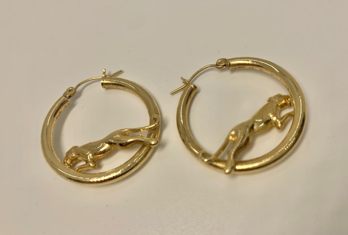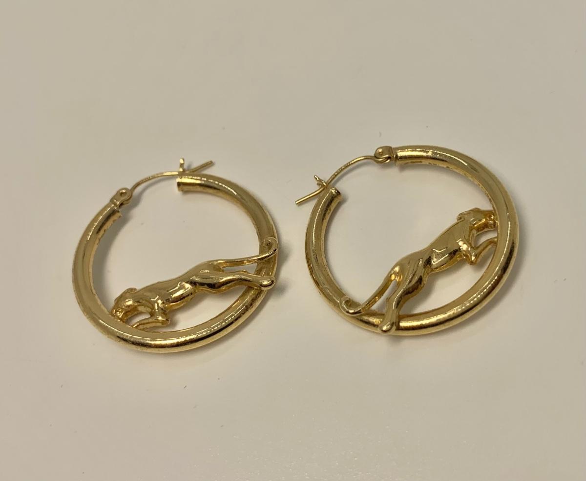 LOT 49: 14k 4.1g Yellow Gold Cougar Pierced Hoops