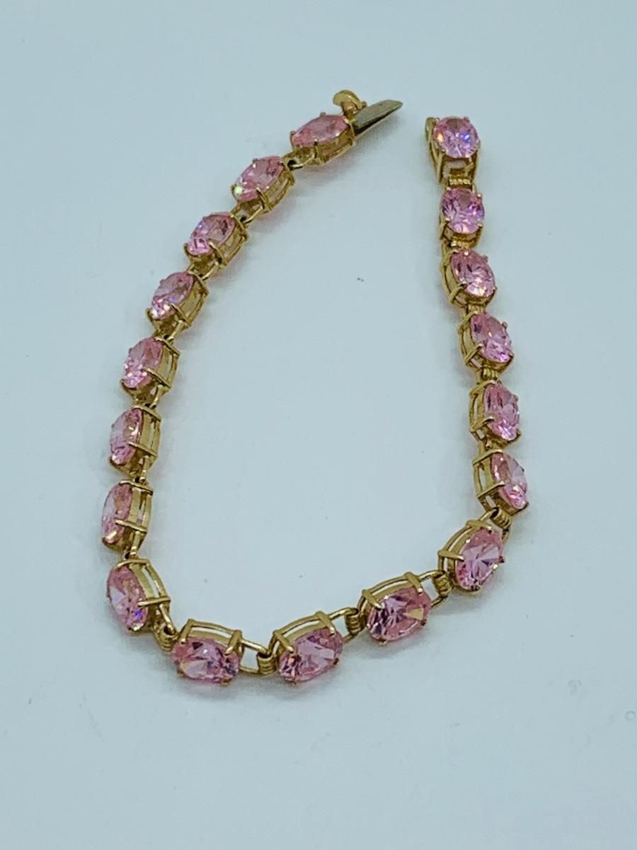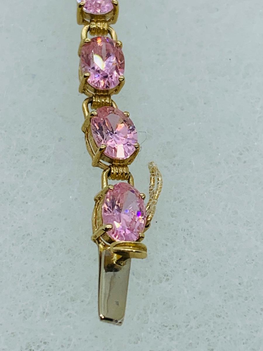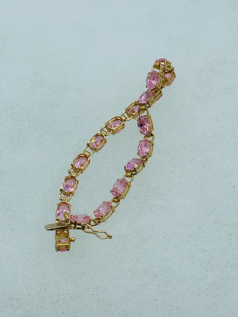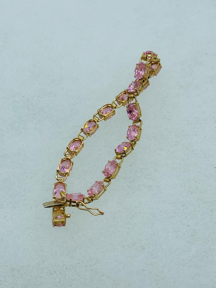 LOT 55: Pink Gemstone 7" 14K Gold Tennis Bracelet - 11 gtw