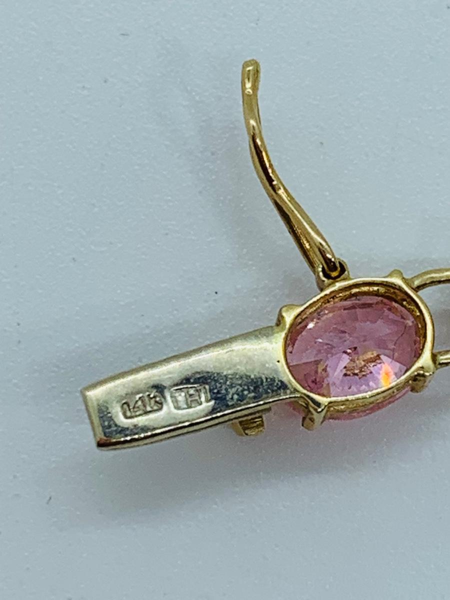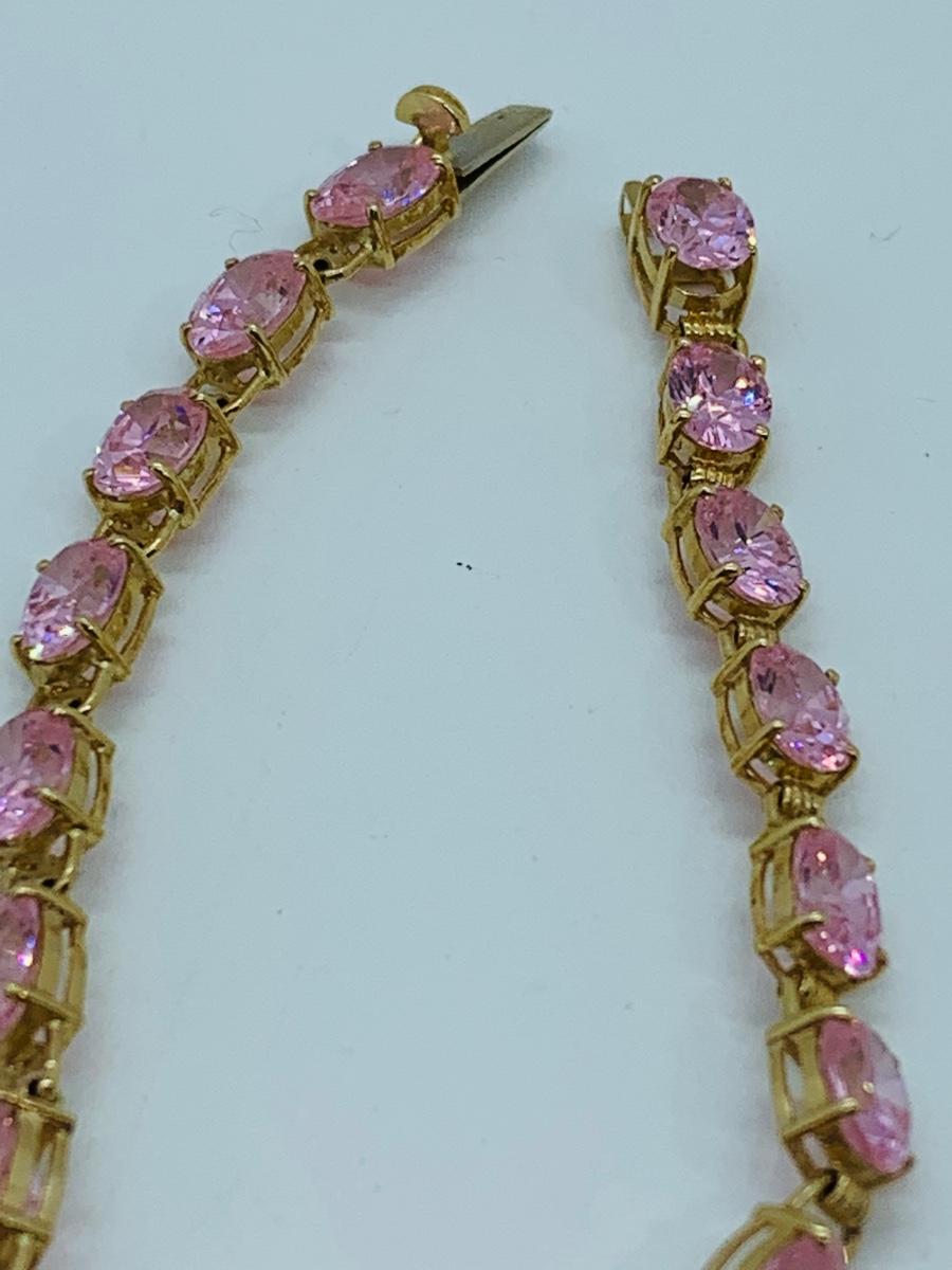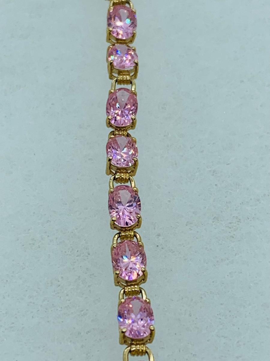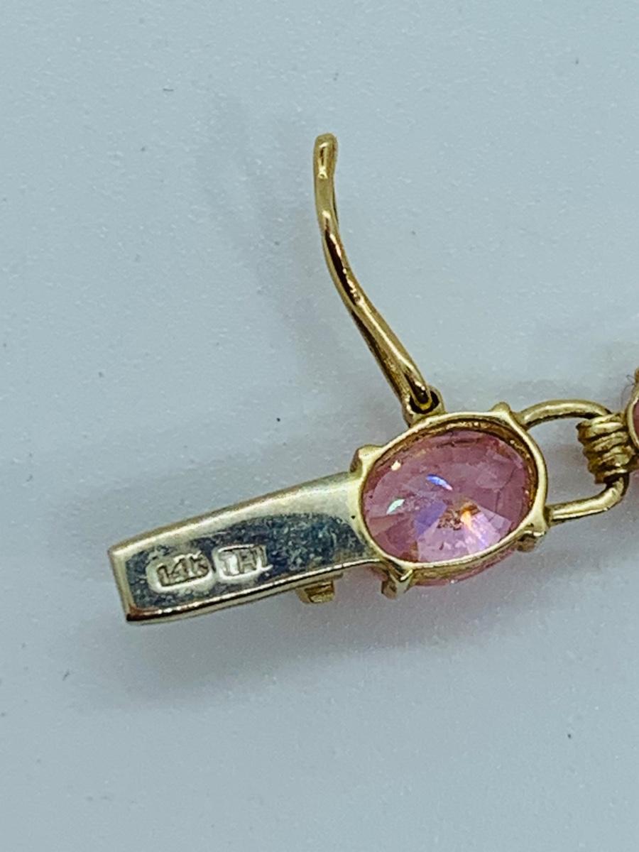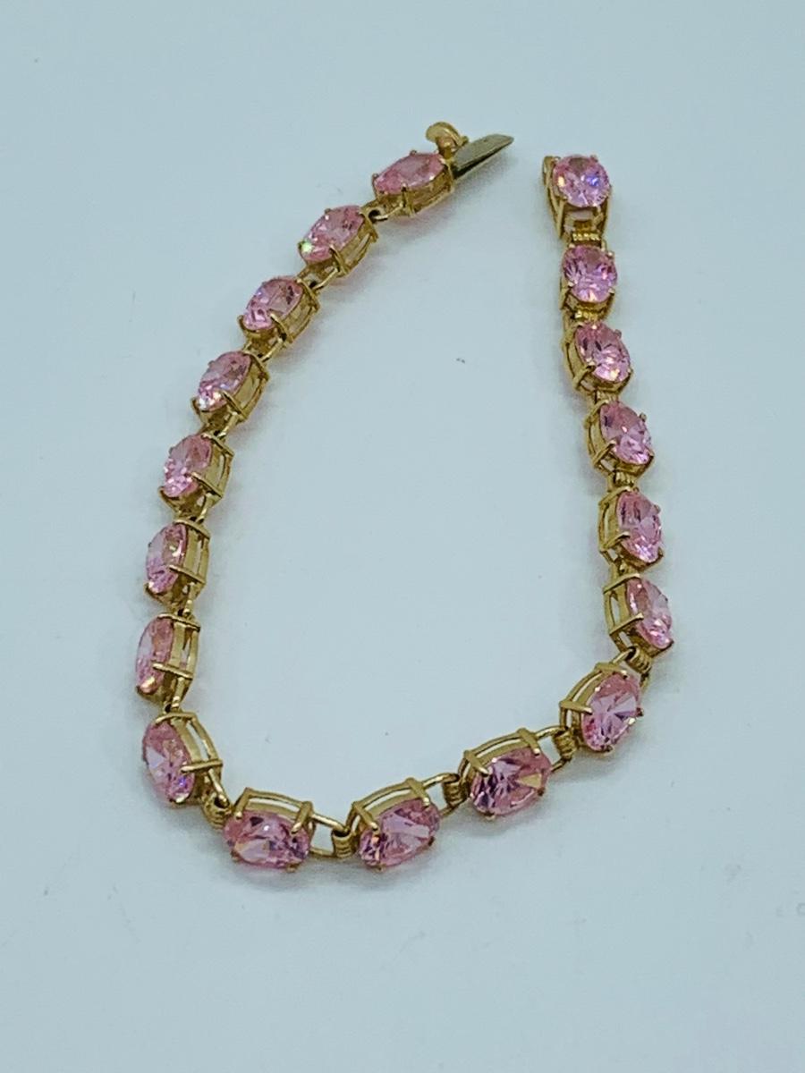 LOT 55: Pink Gemstone 7" 14K Gold Tennis Bracelet - 11 gtw