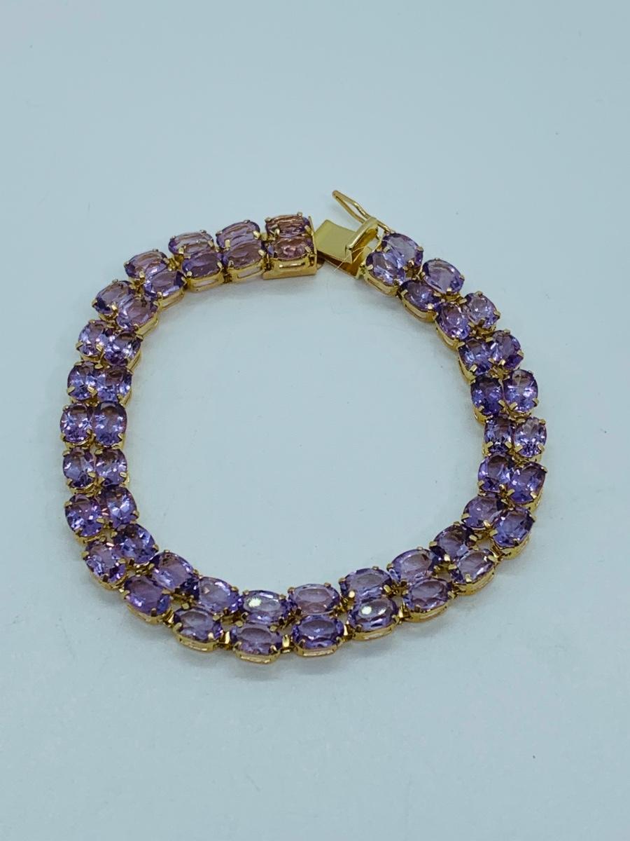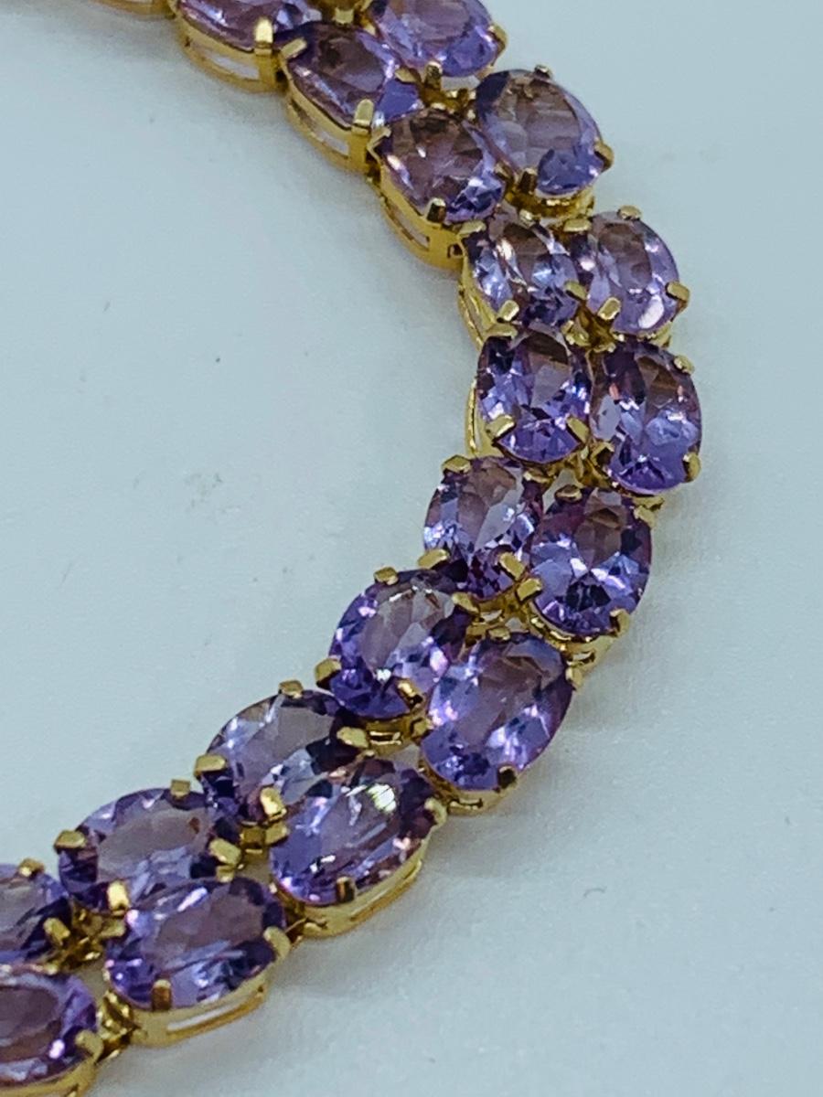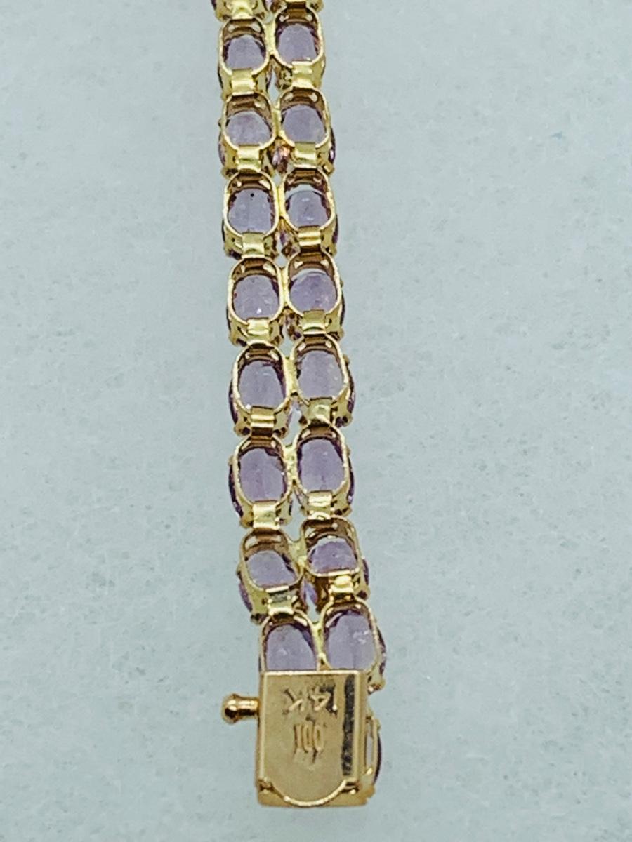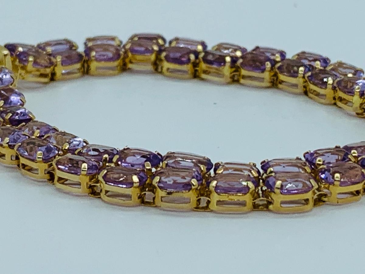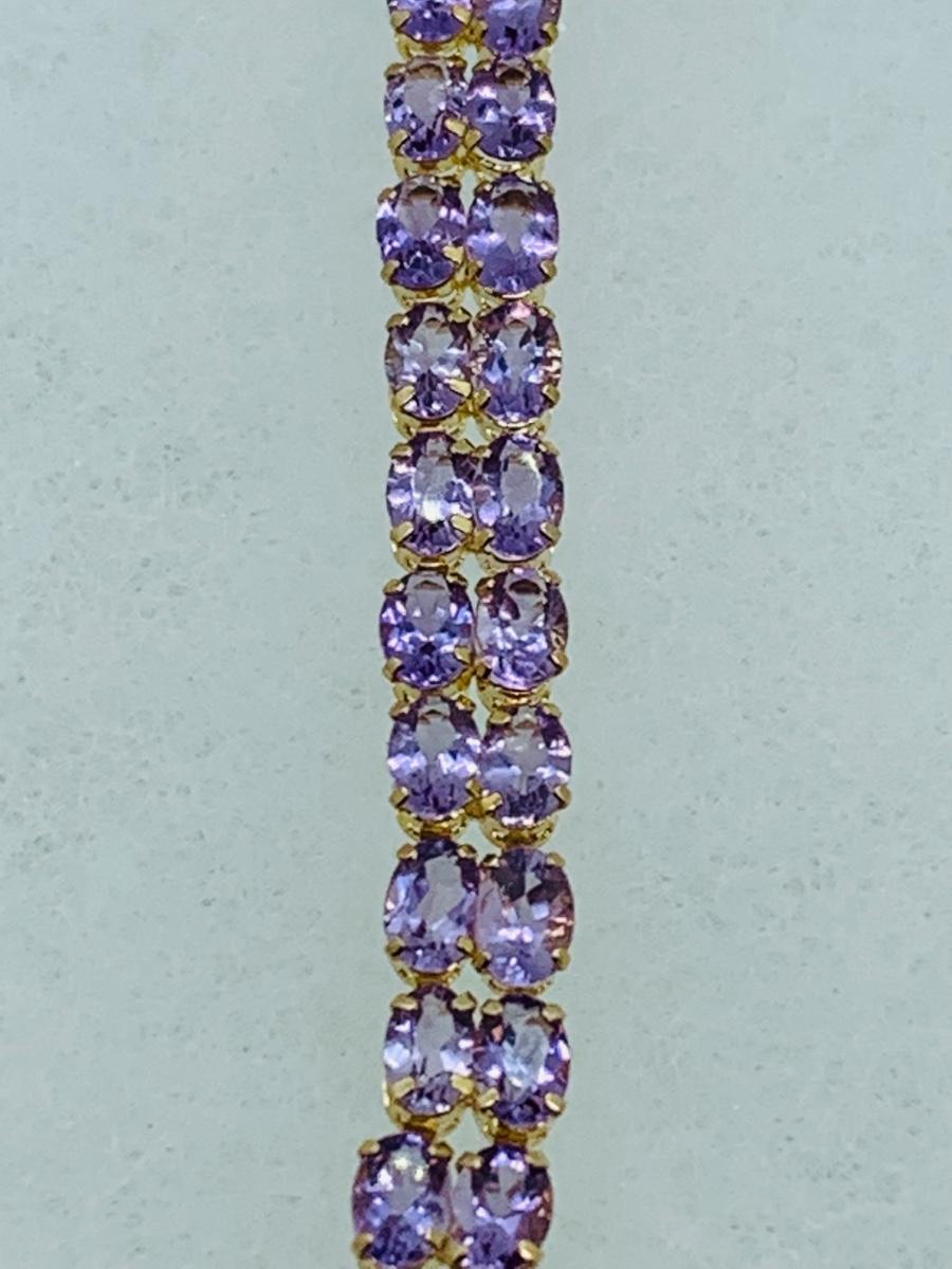 LOT 56: - 11.66g tw 14K ODI Yellow Gold 7" Amethyst Bracelet - Double Row
