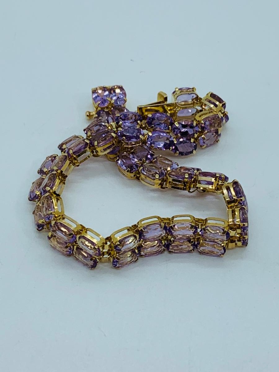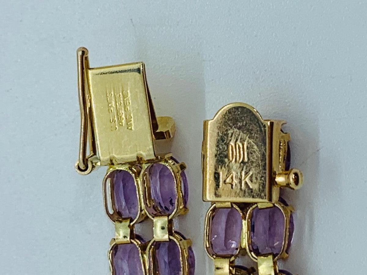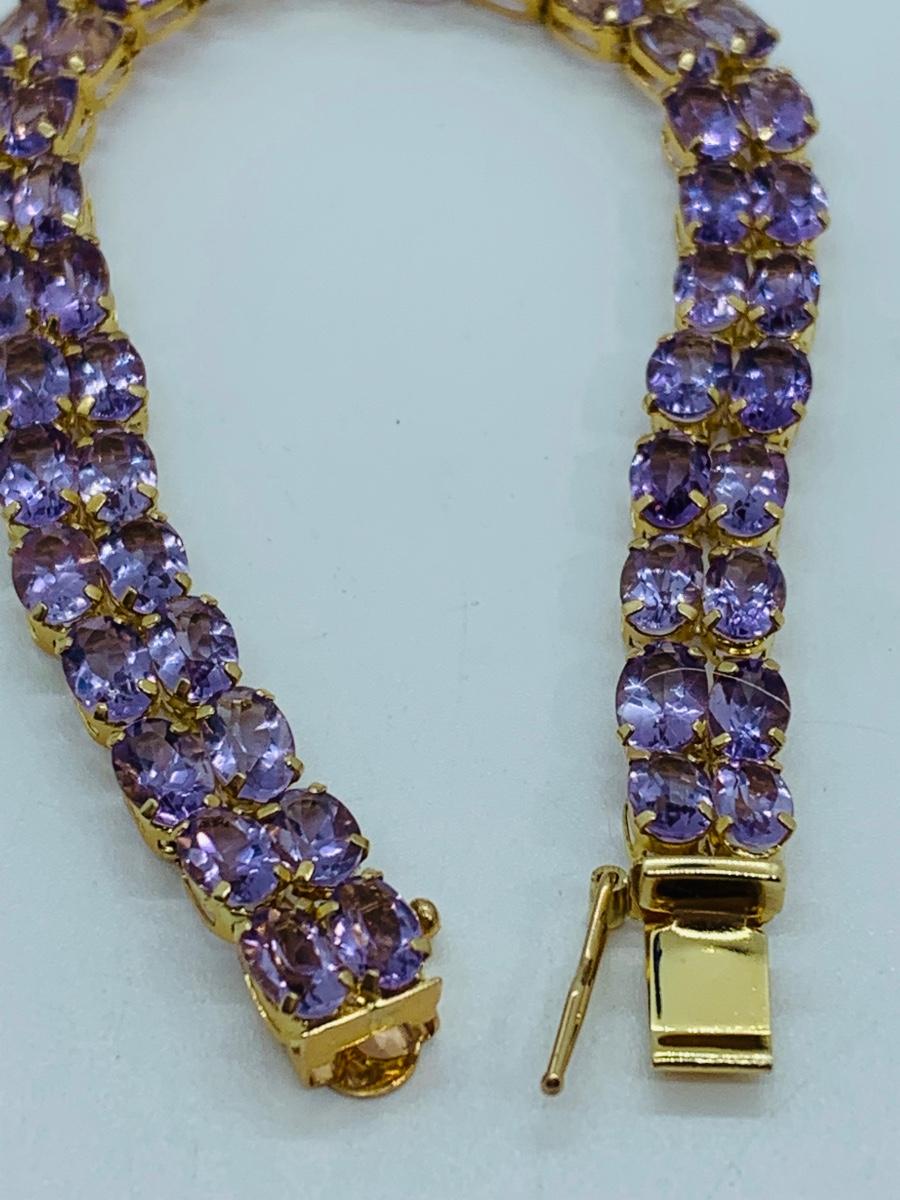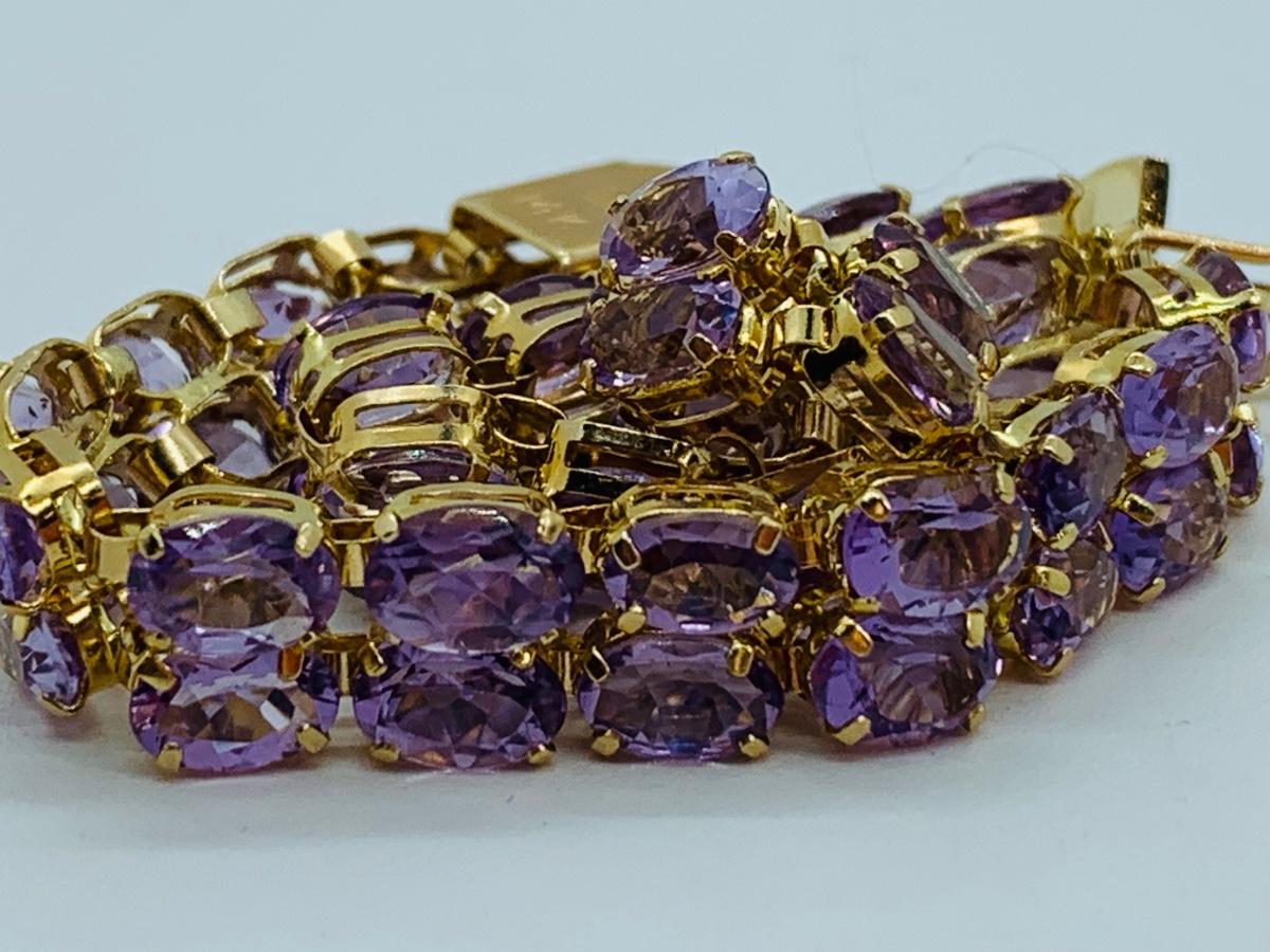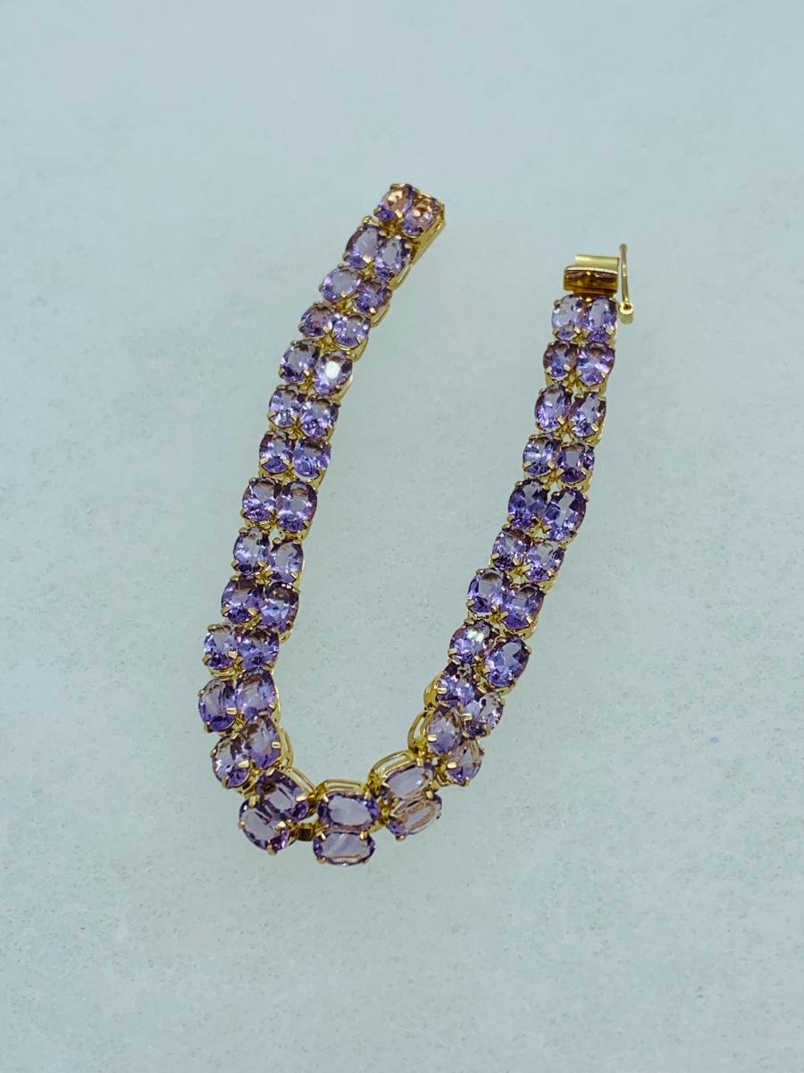 LOT 56: - 11.66g tw 14K ODI Yellow Gold 7" Amethyst Bracelet - Double Row