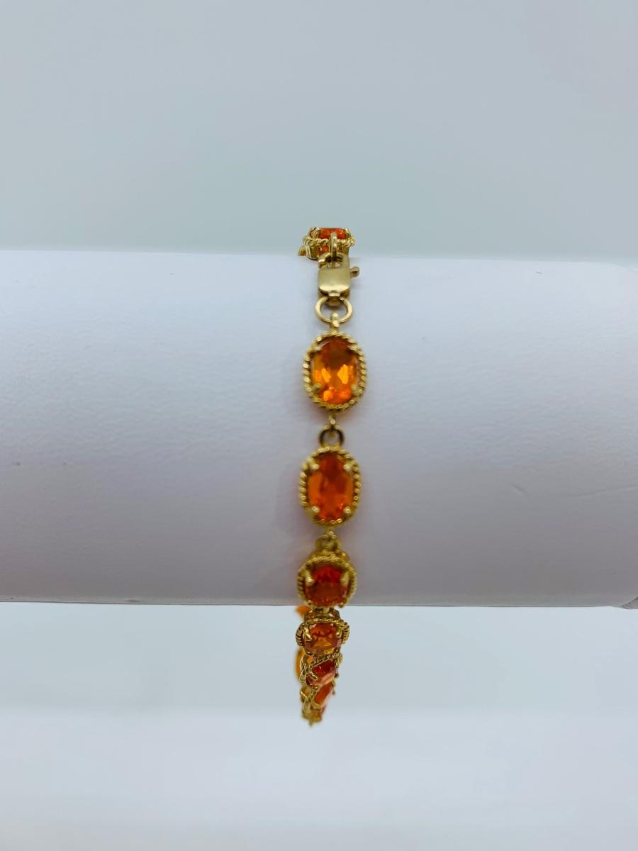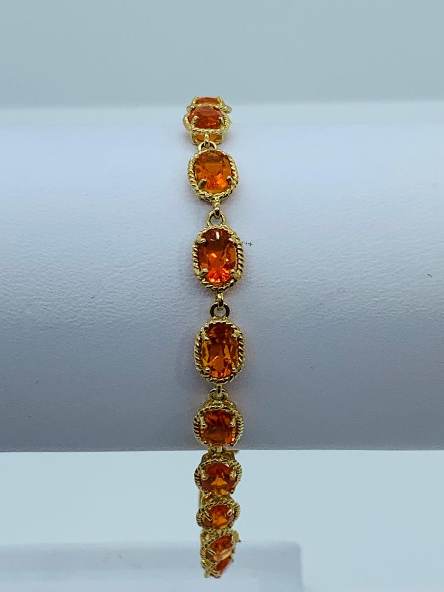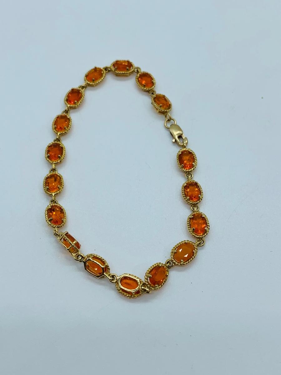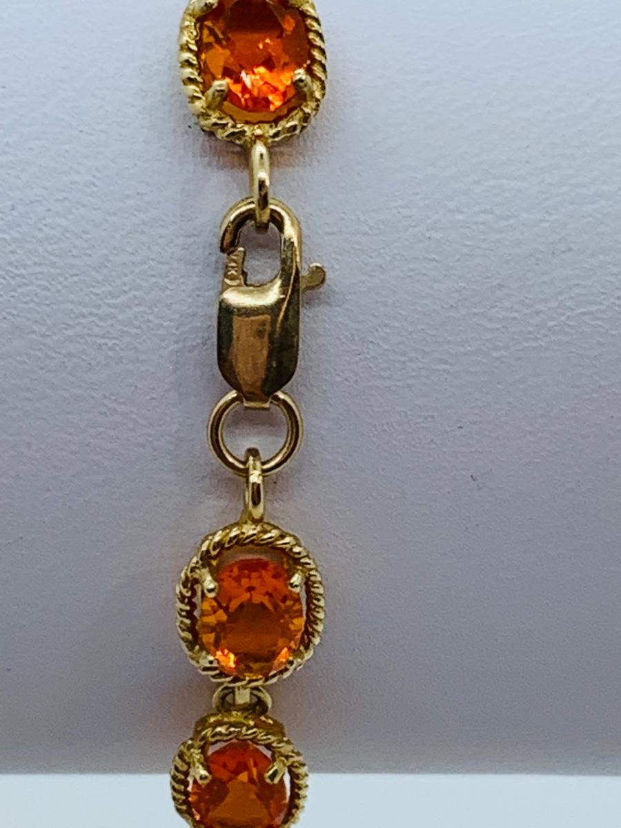 LOT 60: Padparadscha Sapphire 14K Gold 7.5" Tennis Bracelet - 6.2 gtw (One Stone Different than the Rest)