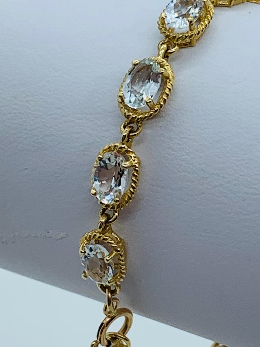 LOT 61: Light Aquamarine 14K Gold 7.5" Tennis Bracelet  - 7.01 gtw