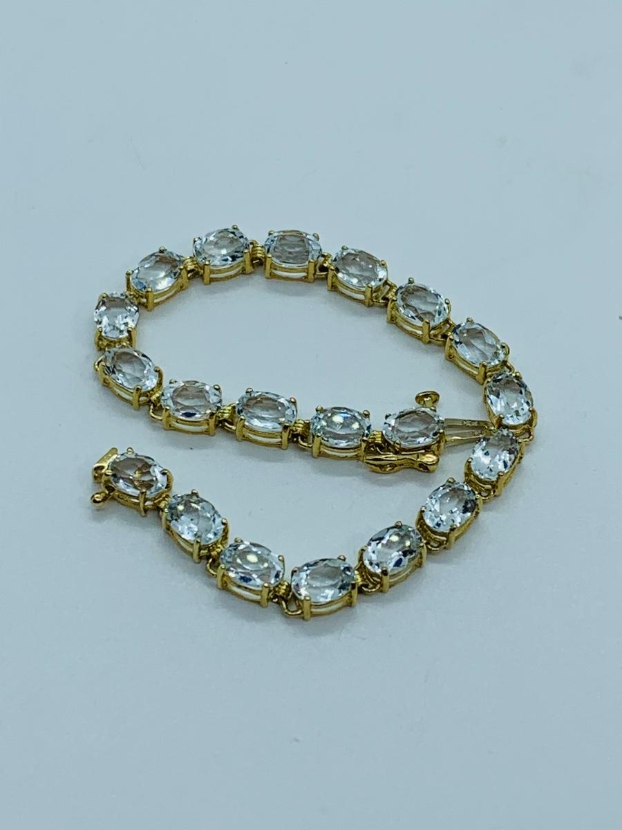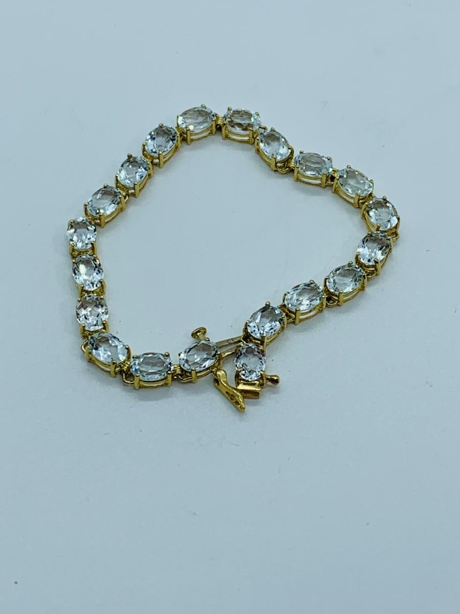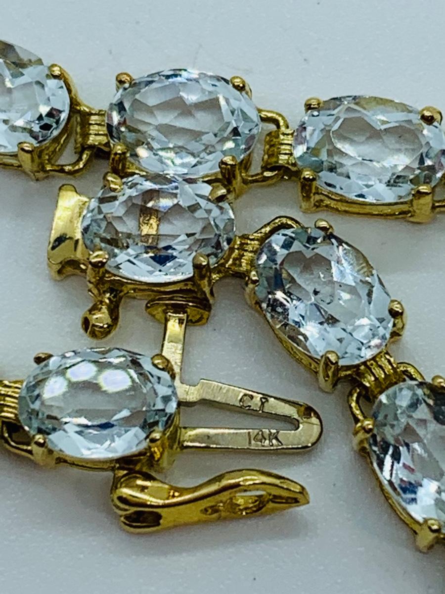 LOT 62: Light Blue Aquamarine 14K Gold Tennis Bracelet - 7" - 9.37 gtw