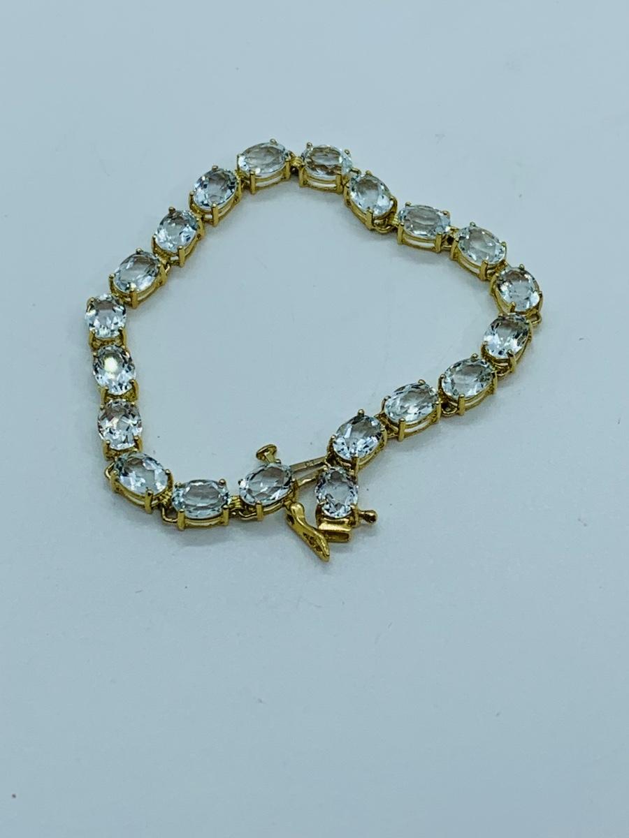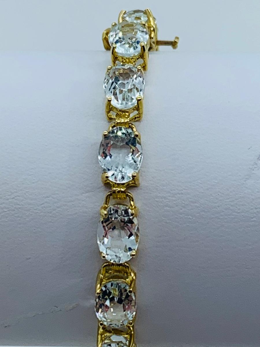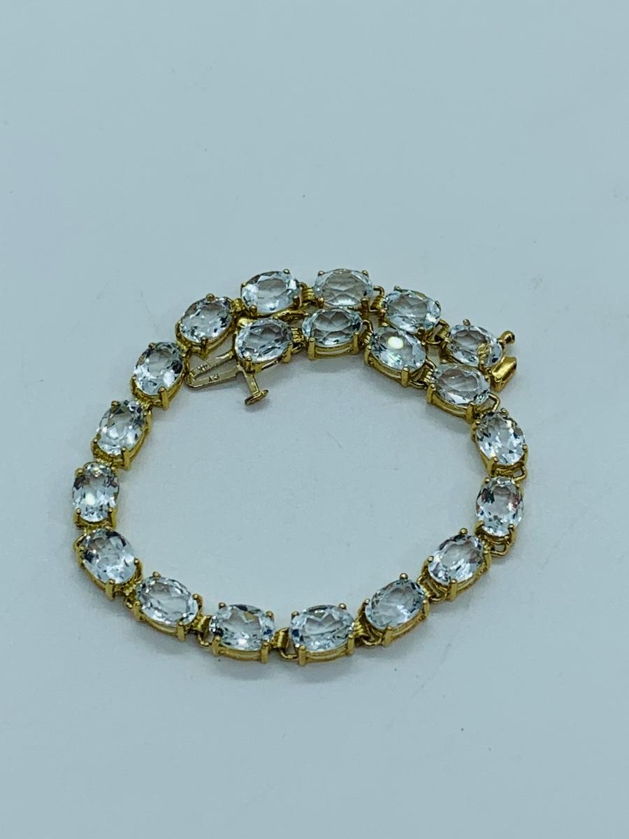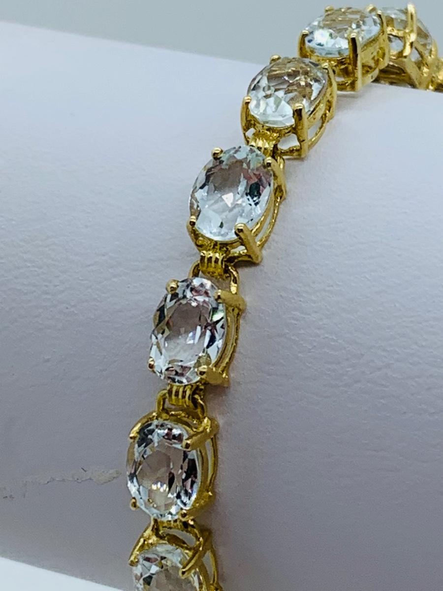 LOT 62: Light Blue Aquamarine 14K Gold Tennis Bracelet - 7" - 9.37 gtw