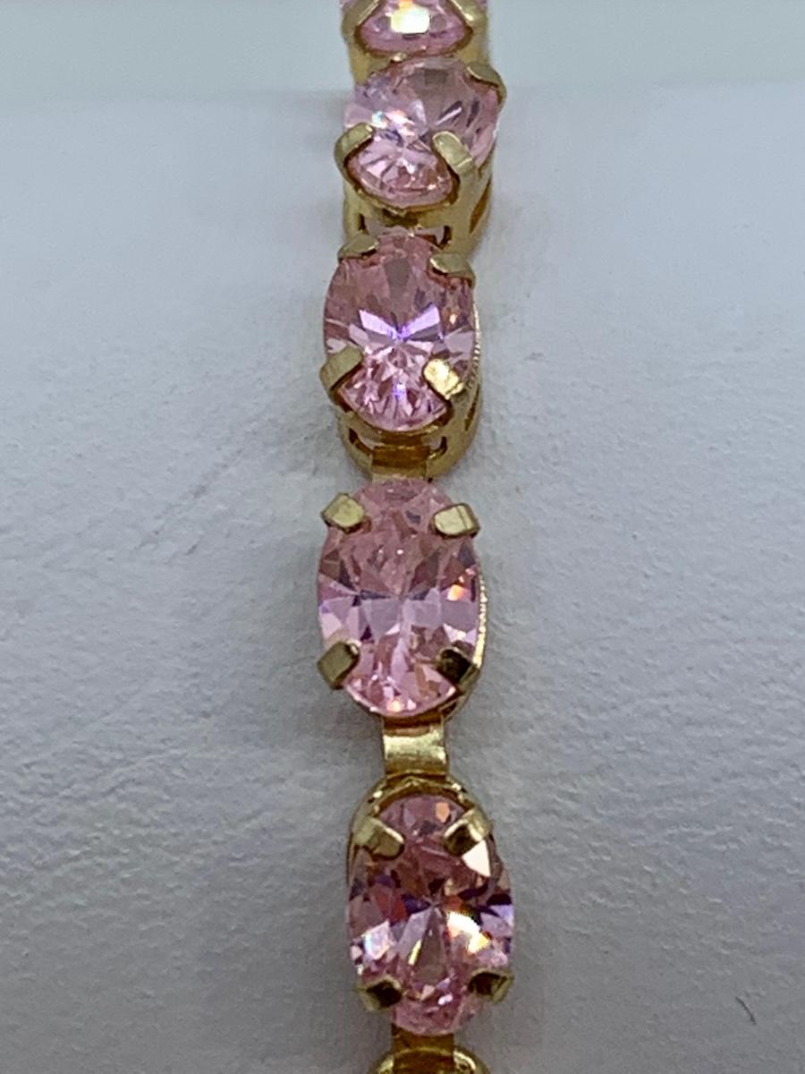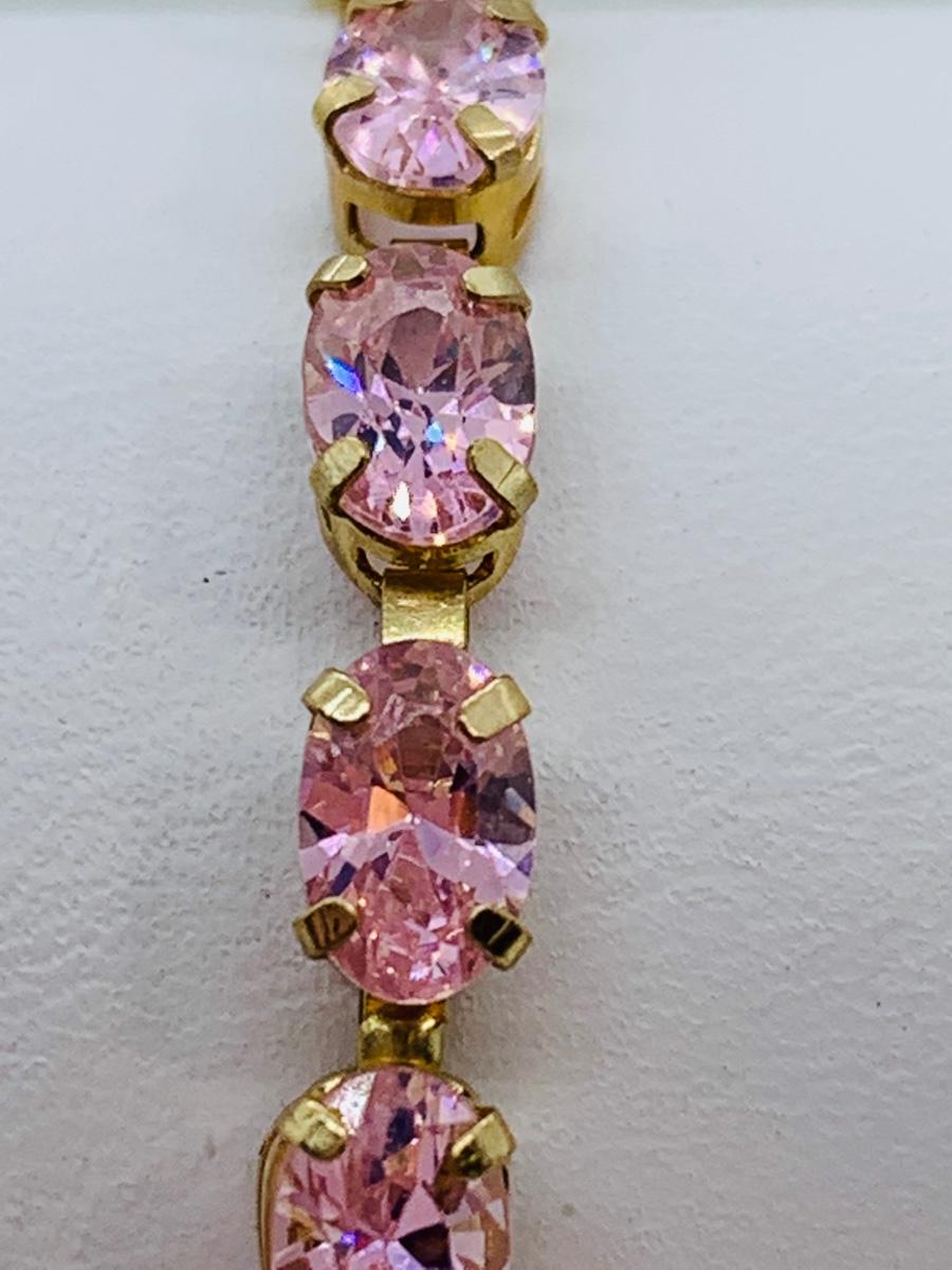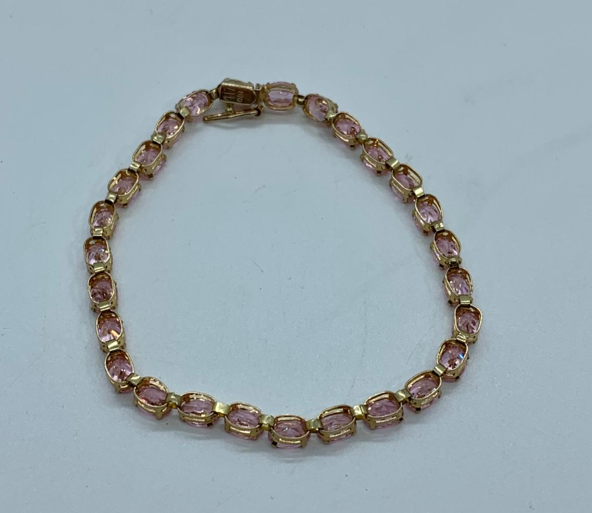 LOT 67: Pink Gemstone 10K Gold 7" Tennis Bracelet - 8.31 gtw