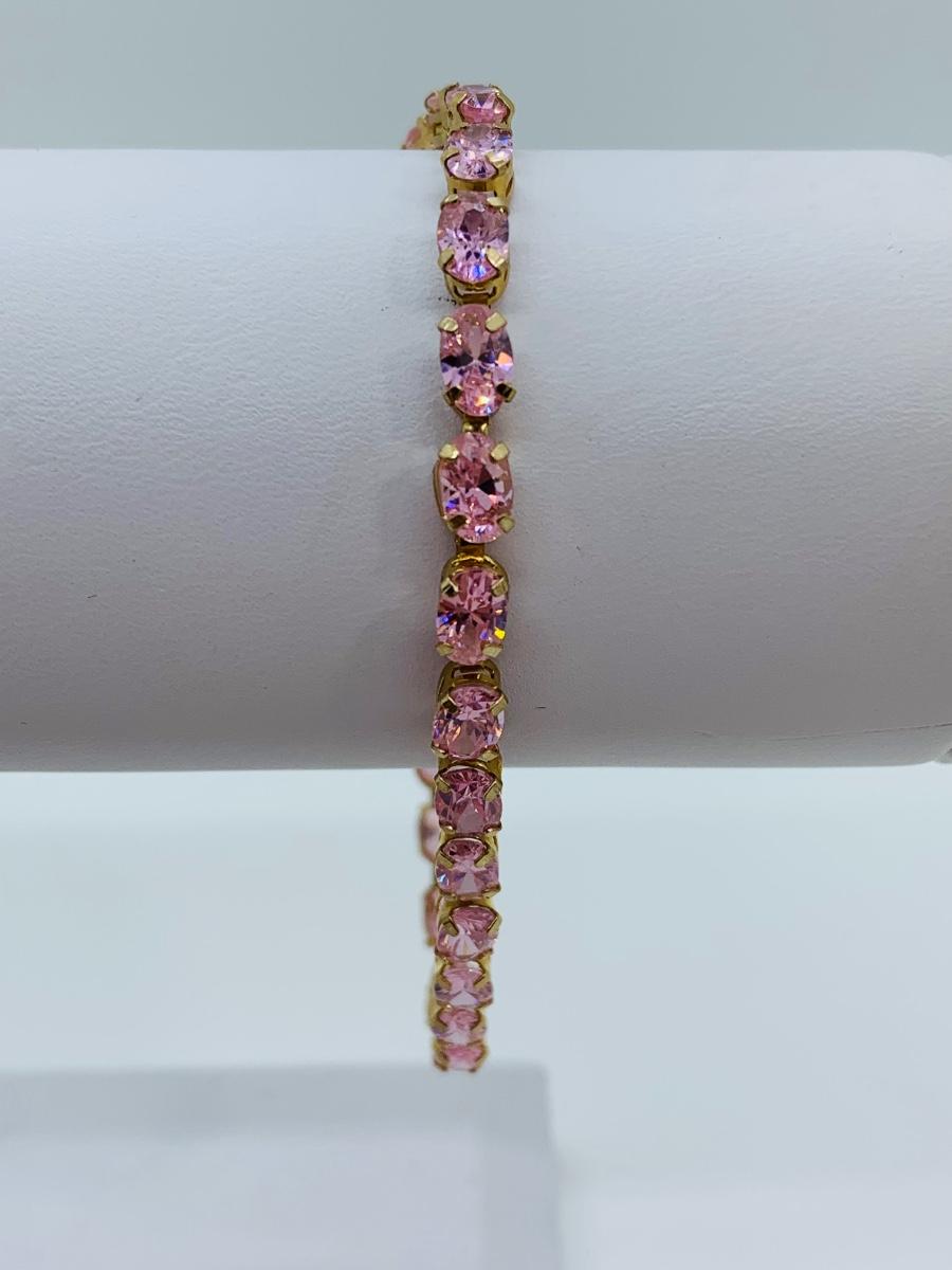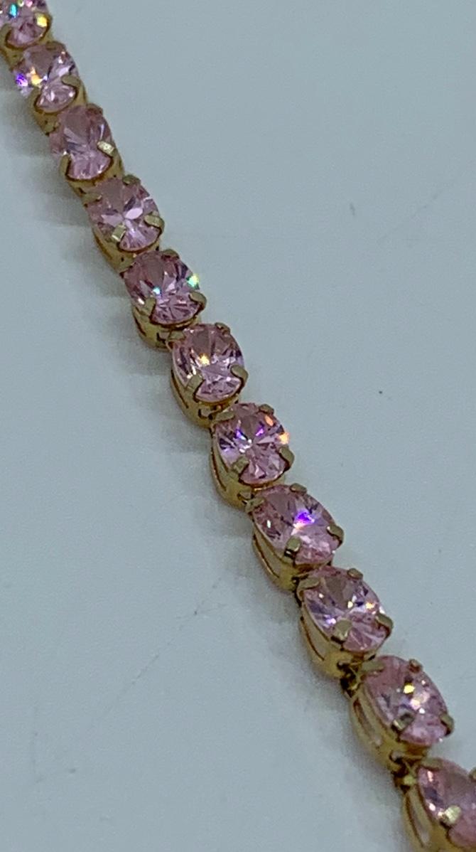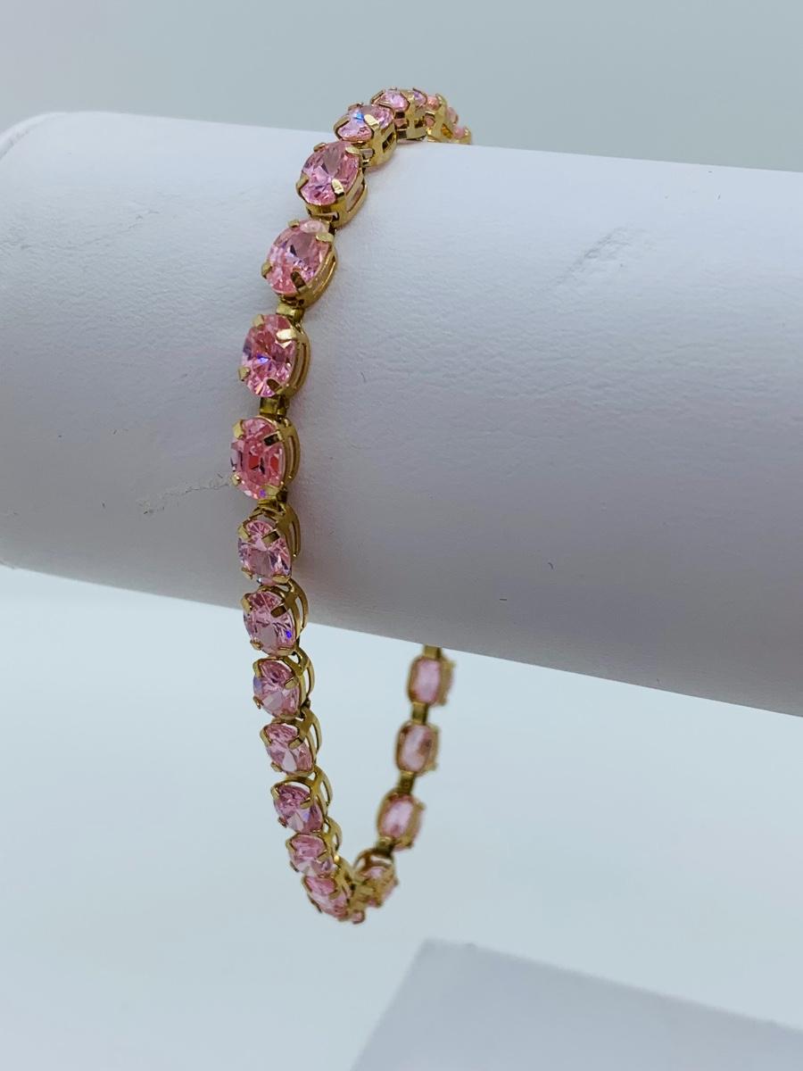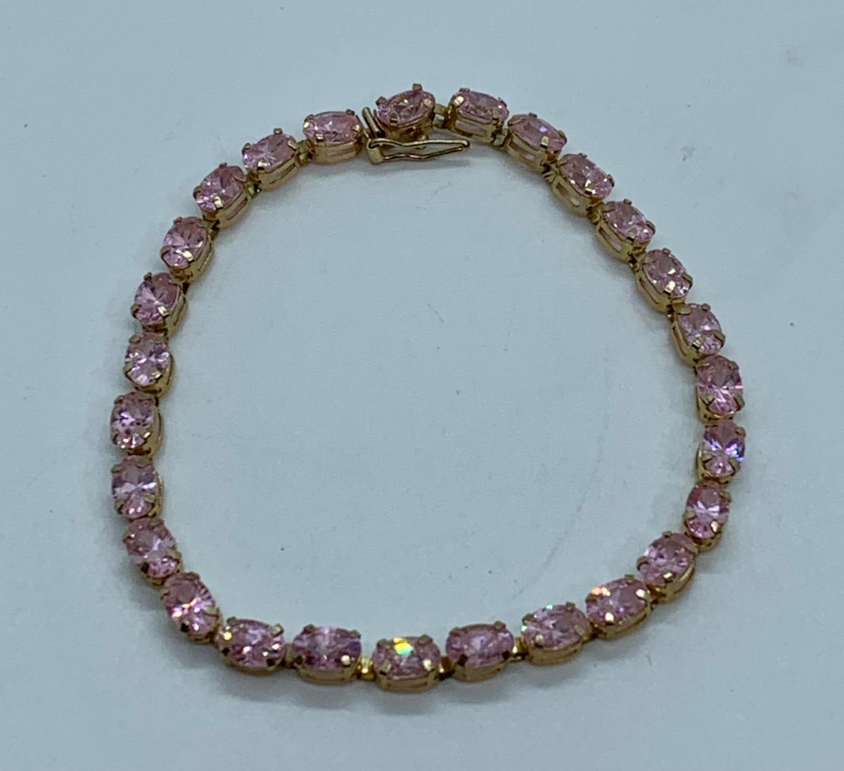 LOT 67: Pink Gemstone 10K Gold 7" Tennis Bracelet - 8.31 gtw