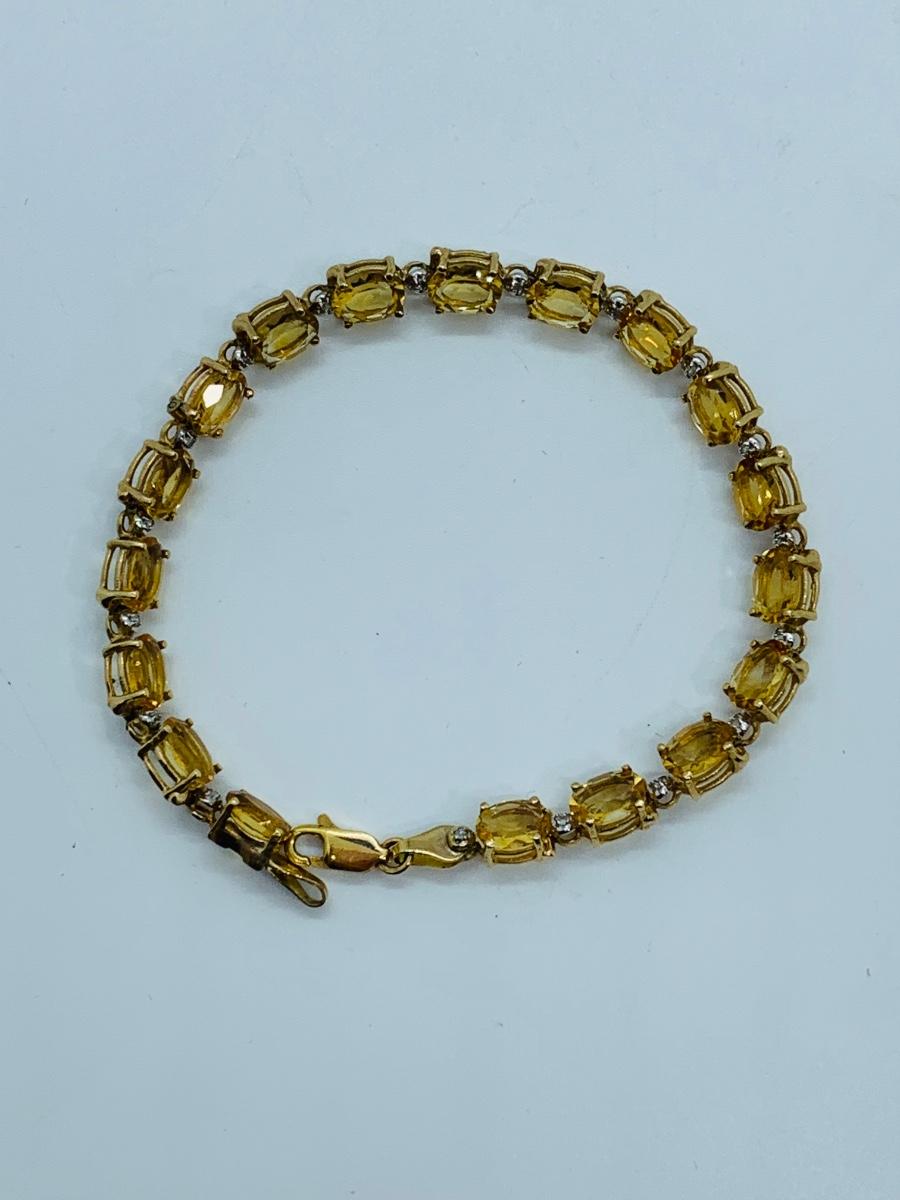 LOT 68: Yellow Gemstone 14K Gold 7.5" Tennis Bracelet - 11.14 gtw