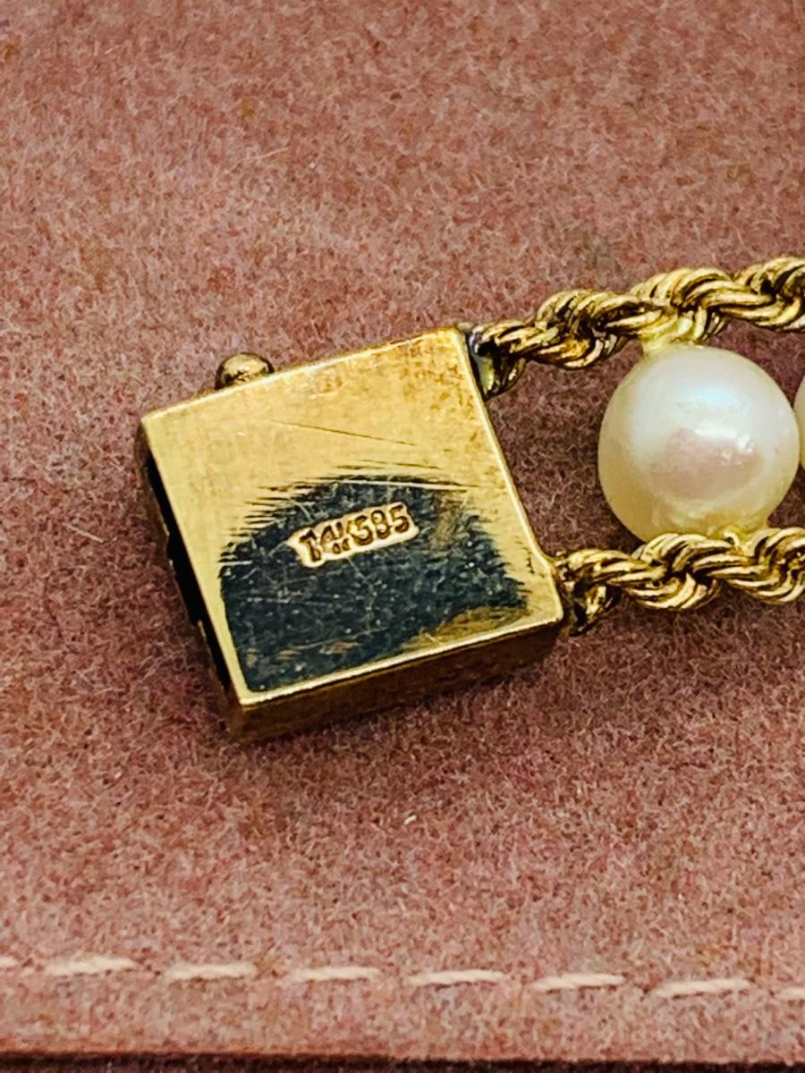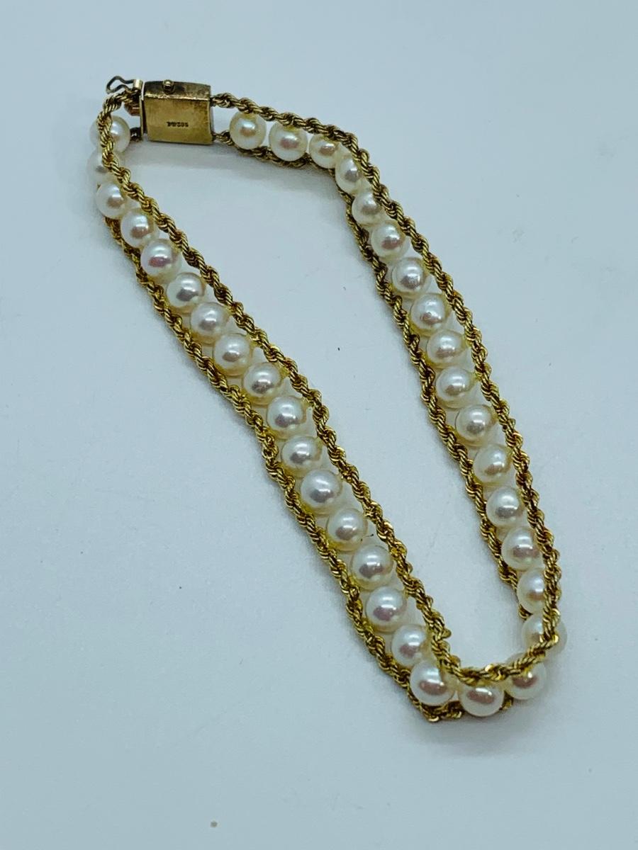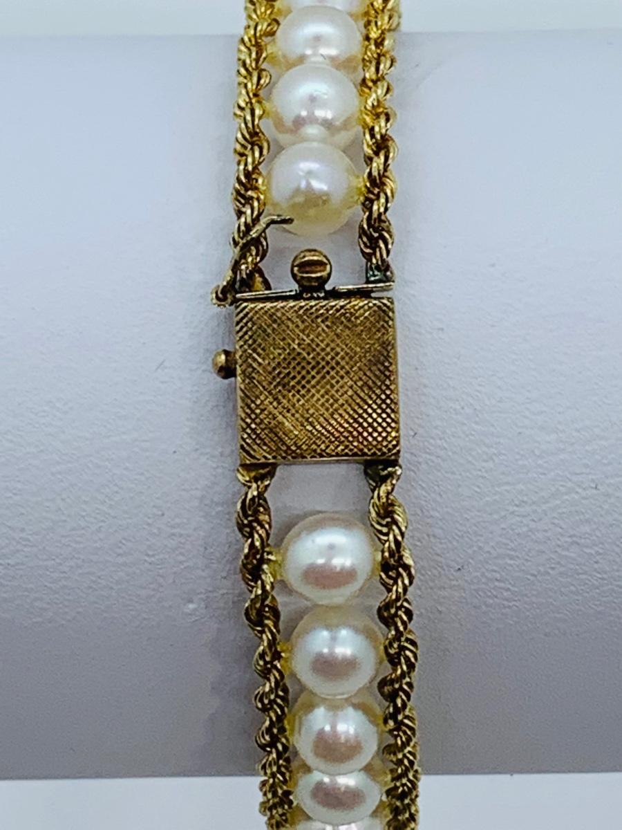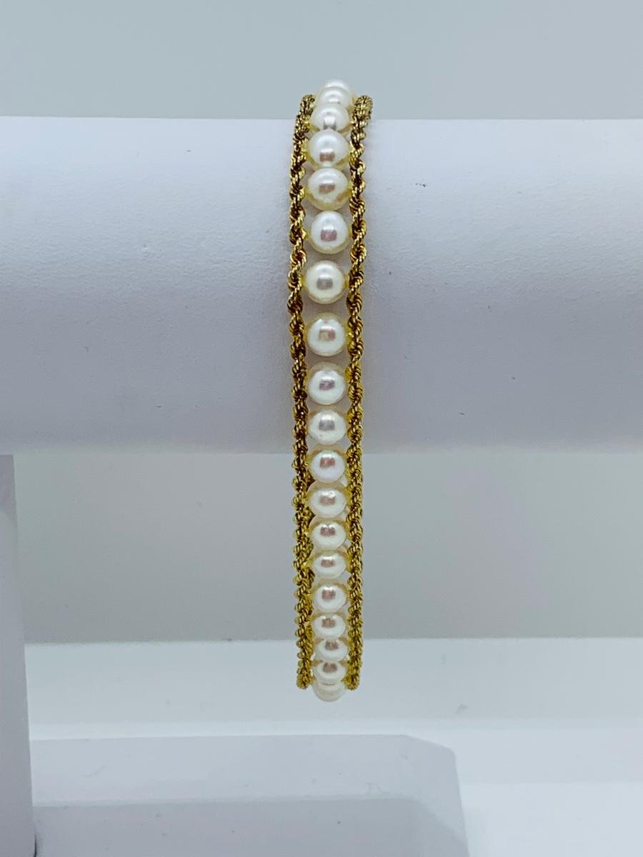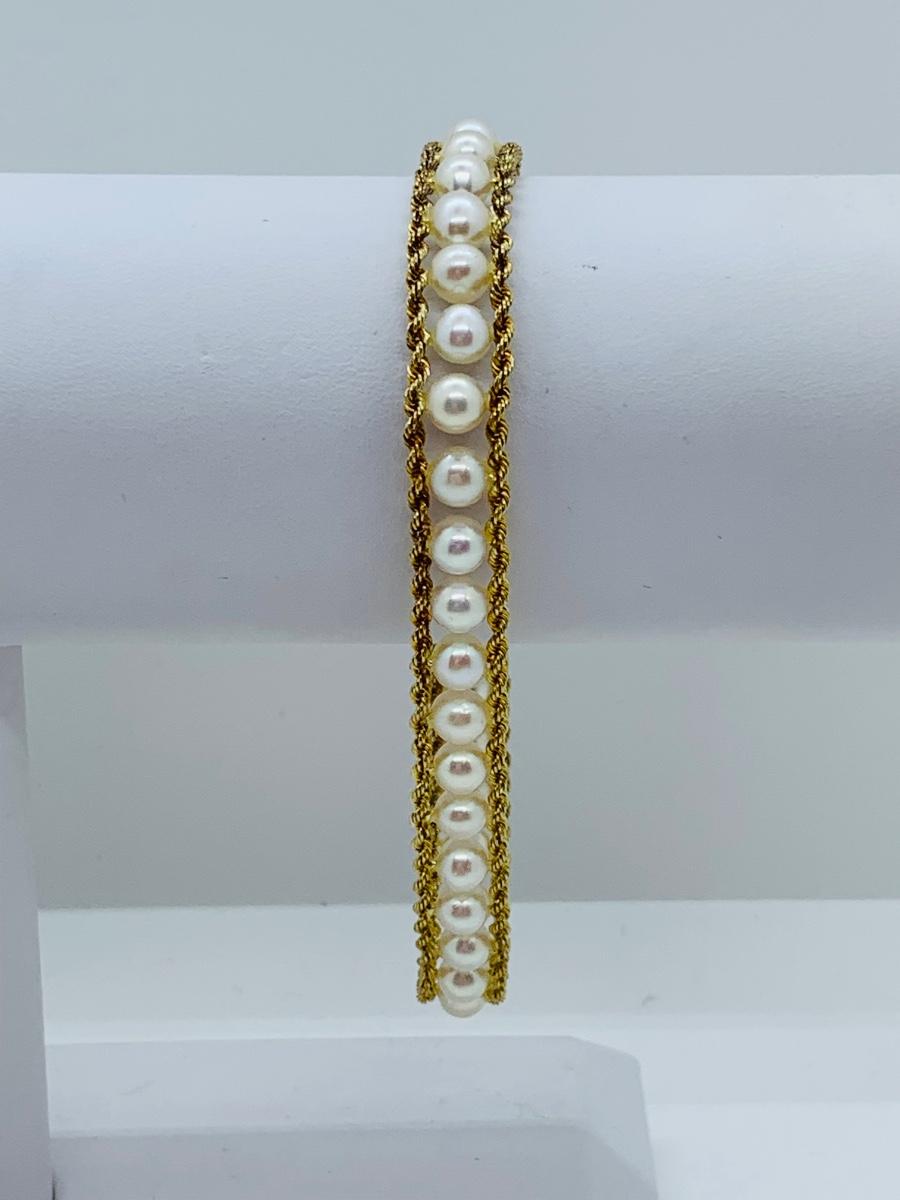 LOT 71: 14K Gold Rope Pearl Bracelet - 8" - 11.61 gtw