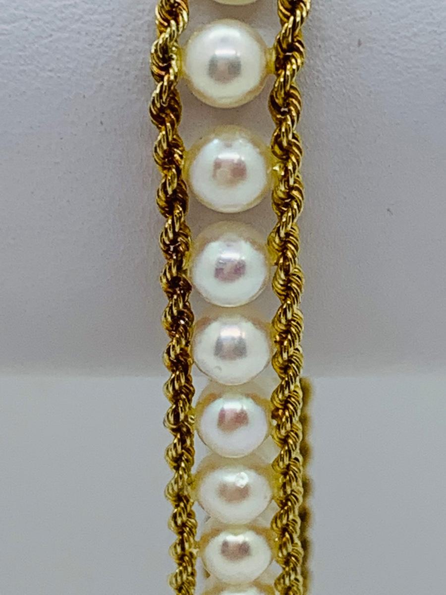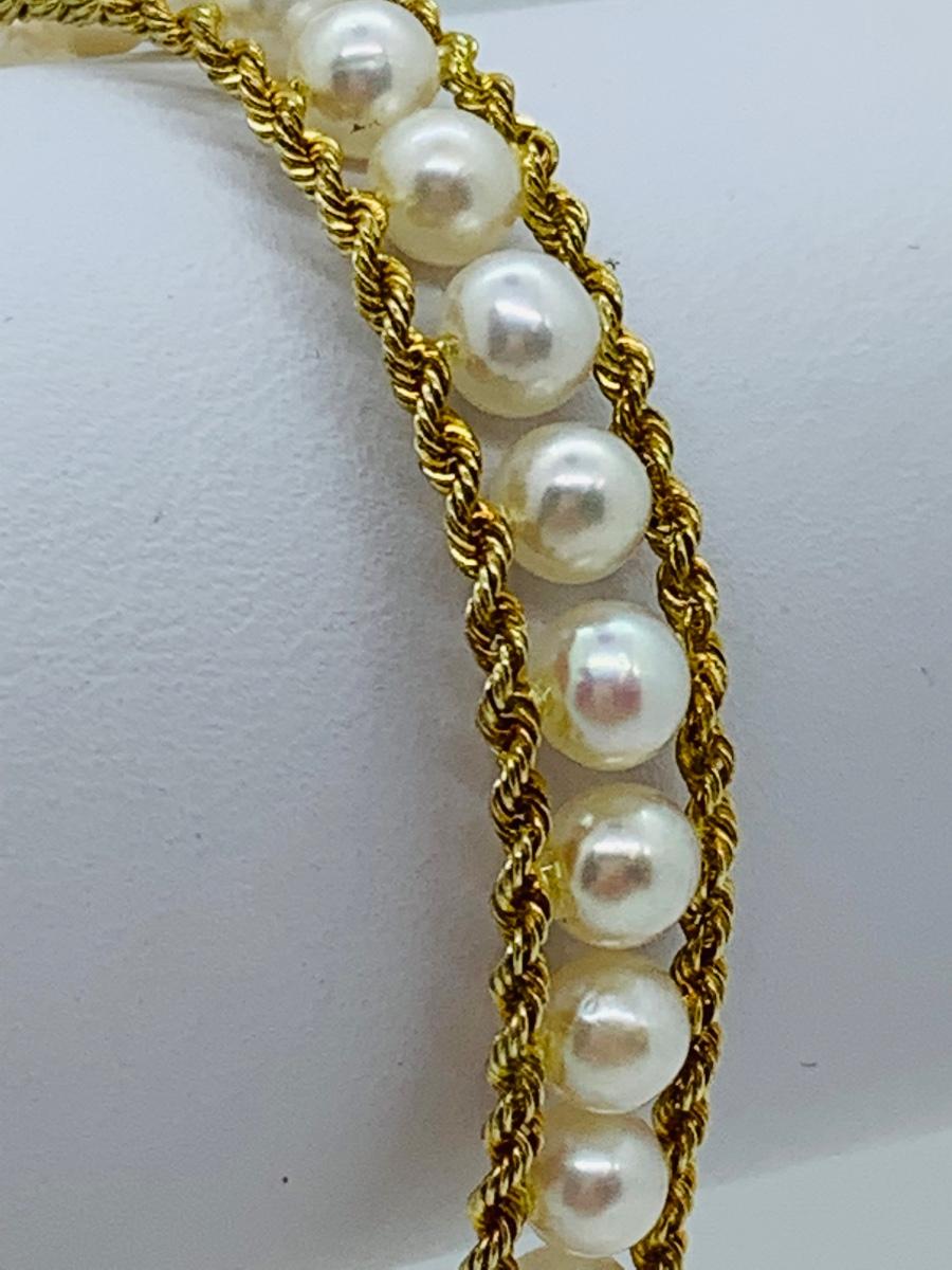 LOT  71: 14K Gold Rope Pearl Bracelet - 8" - 11.61 gtw