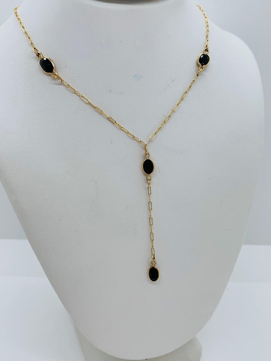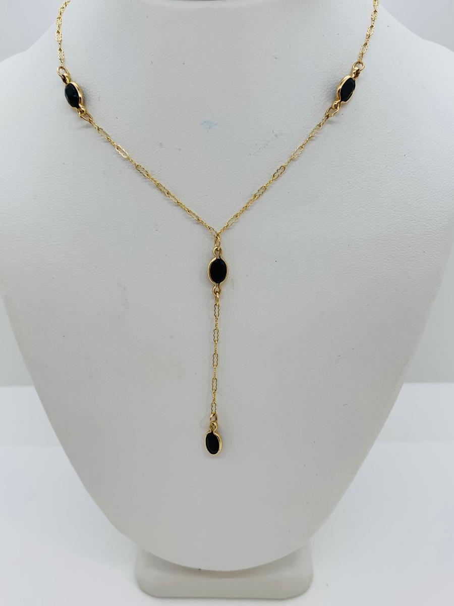 LOT 72: Black Onyx and 10K Gold "Y" Chain Necklace 18" - 2.32 gtw