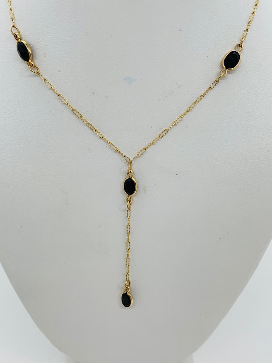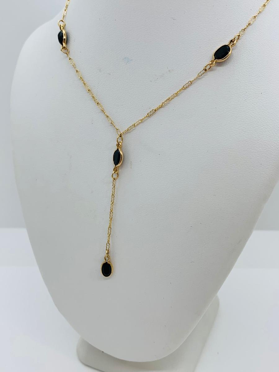 LOT 72: Black Onyx and 10K Gold "Y" Chain Necklace 18"  - 2.32 gtw