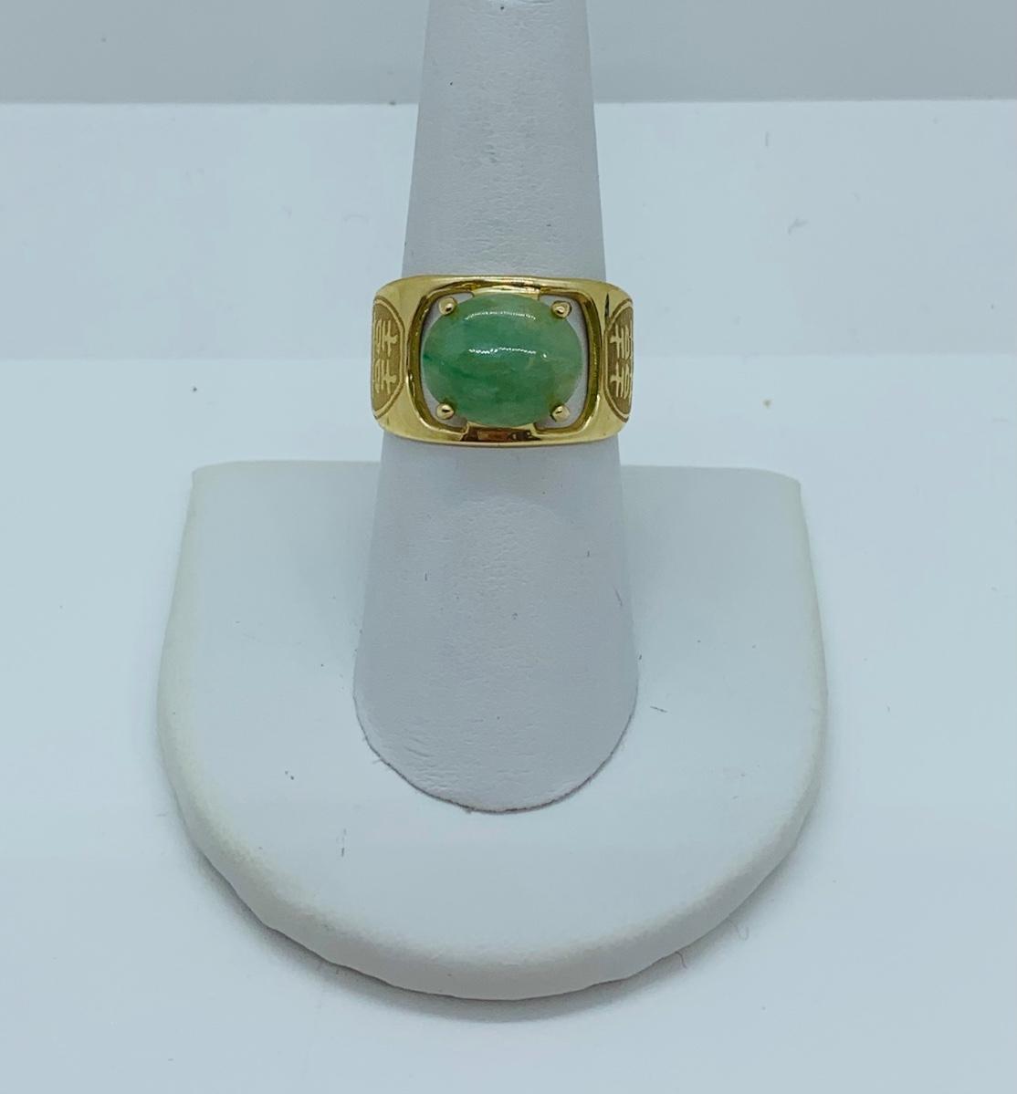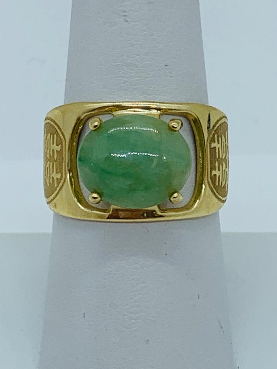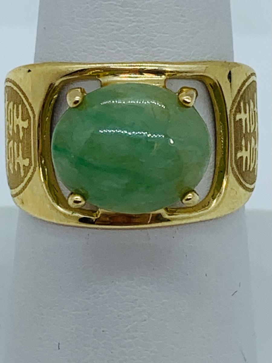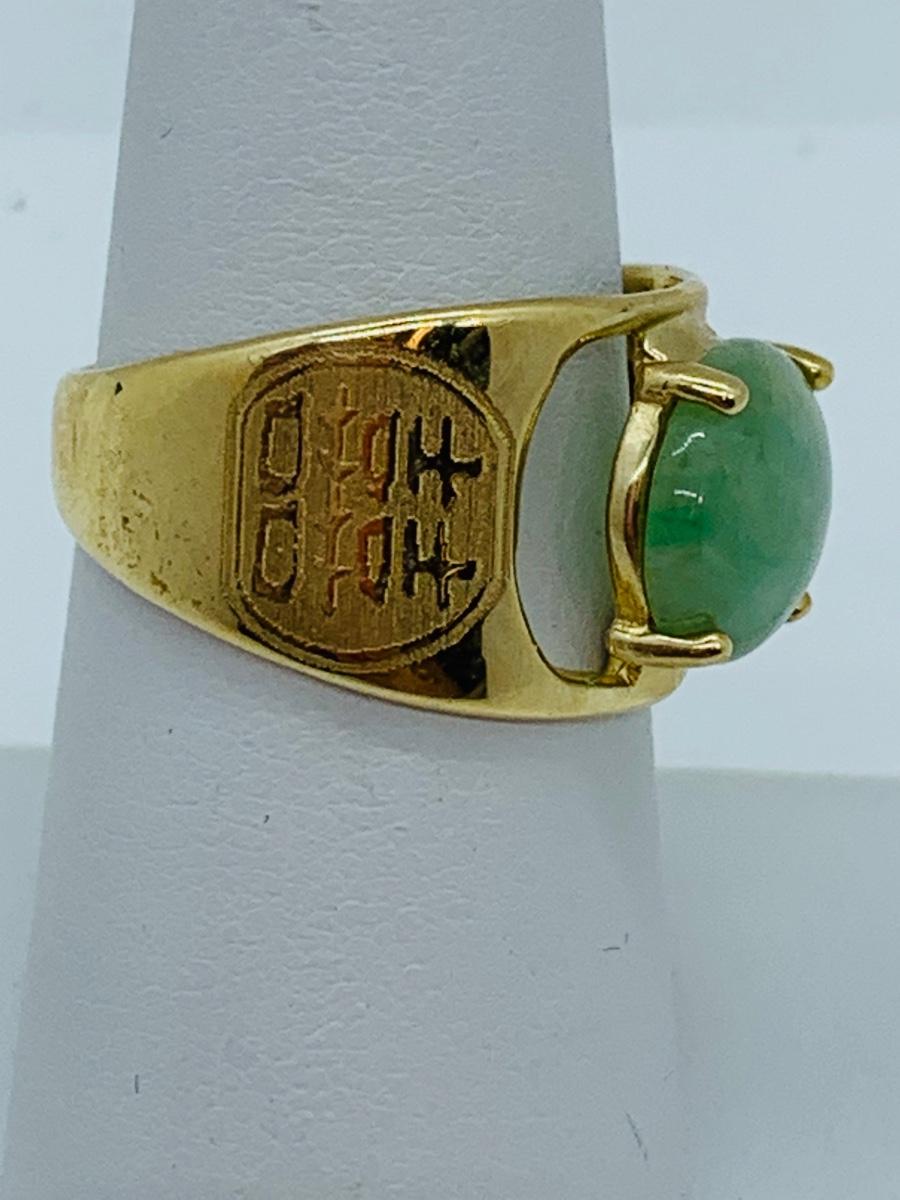 LOT 75: Jade & 10K Gold Ring - Size 8 - 6.51 gtw
