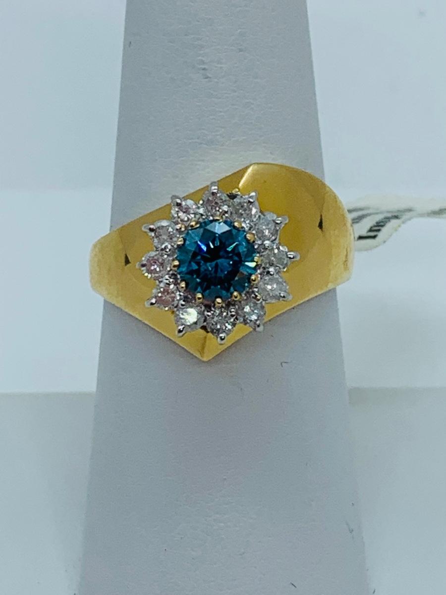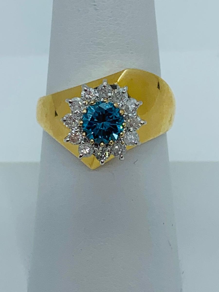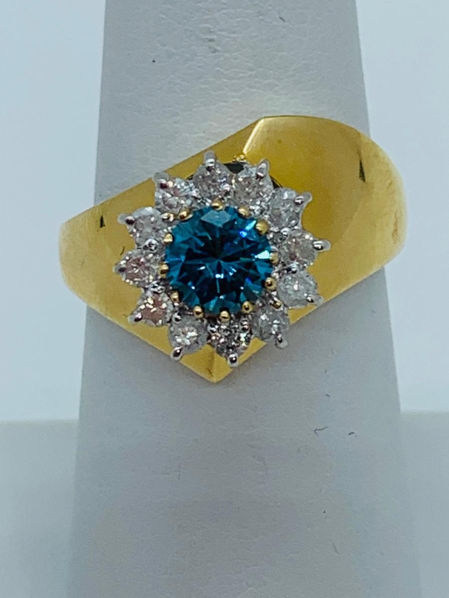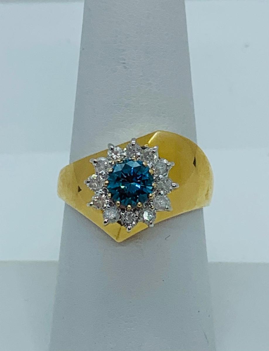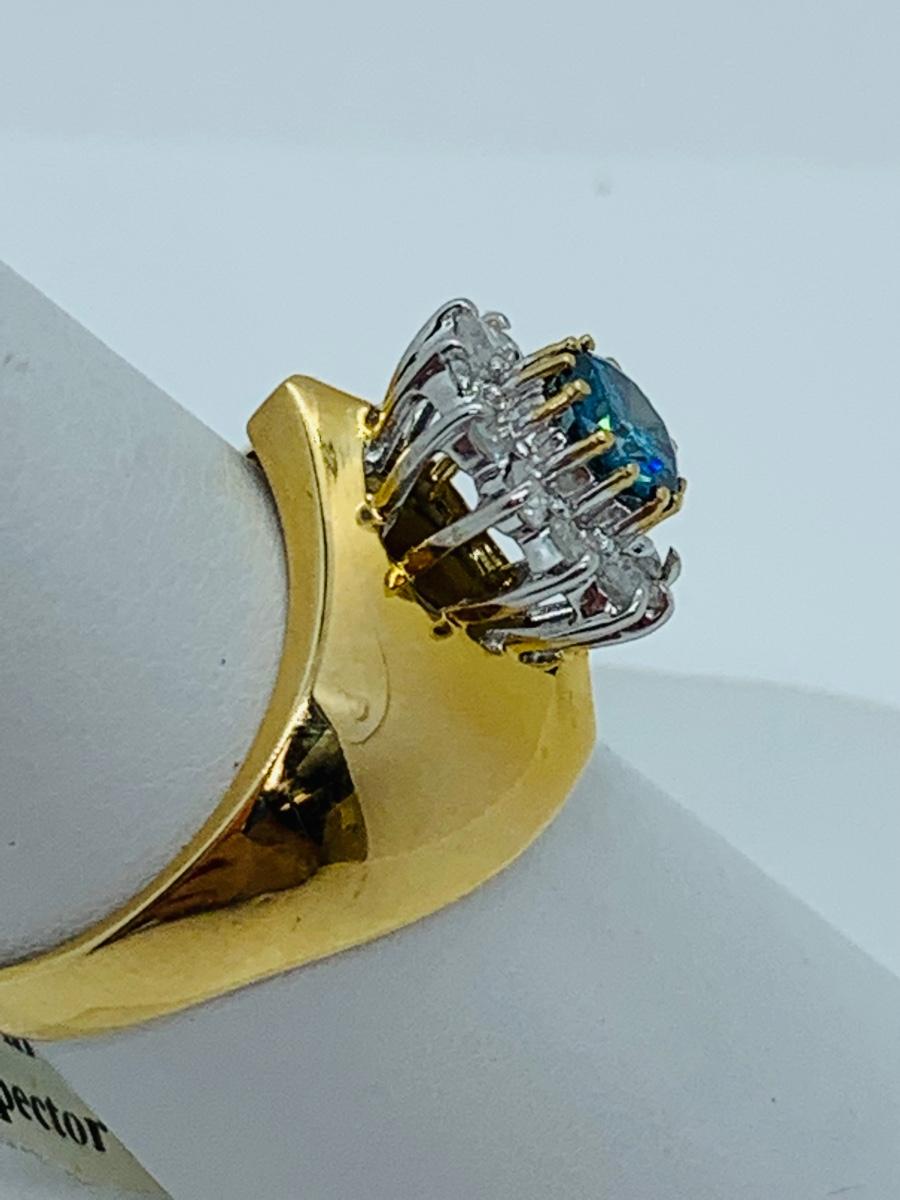 LOT 78: 14K Gold Teal Blue Montana Sapphire With Diamond Halo - Size 8 - 5.08 gtw