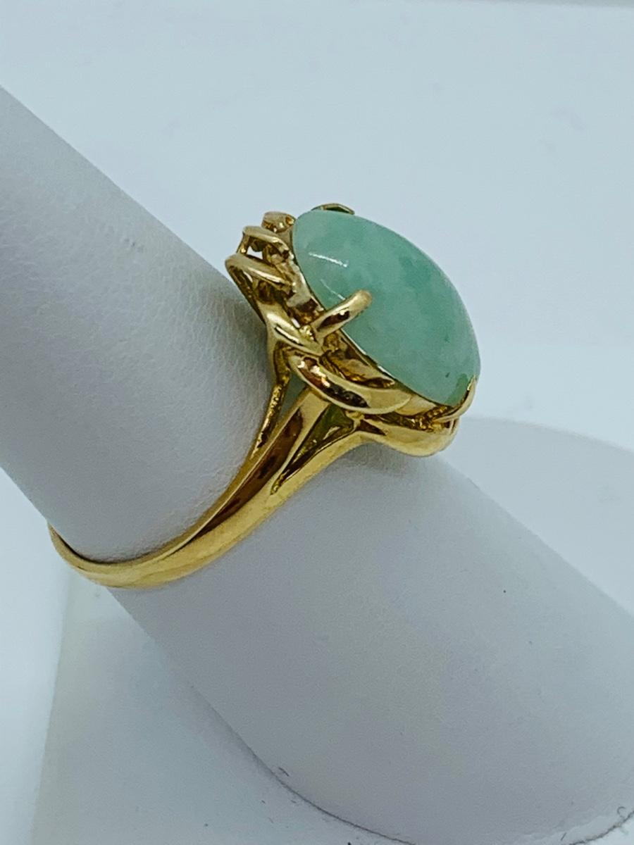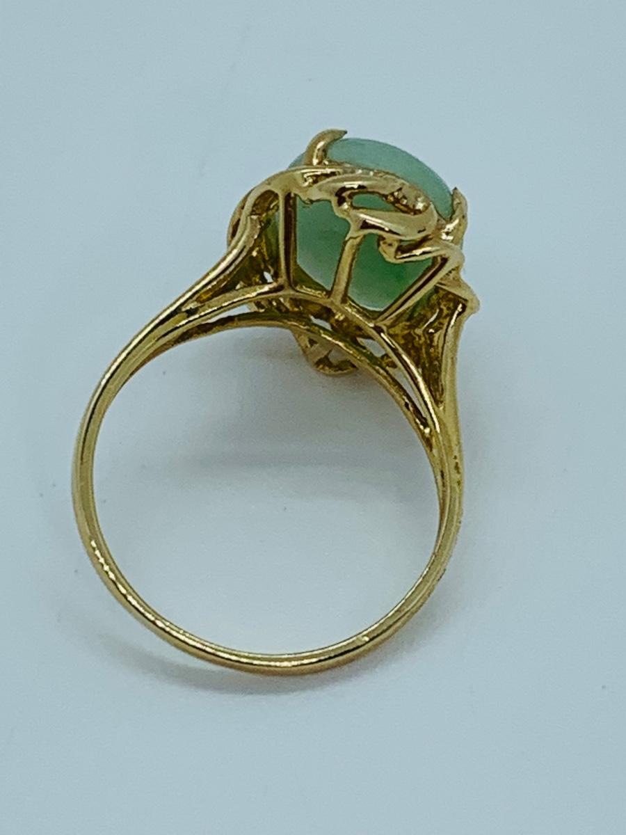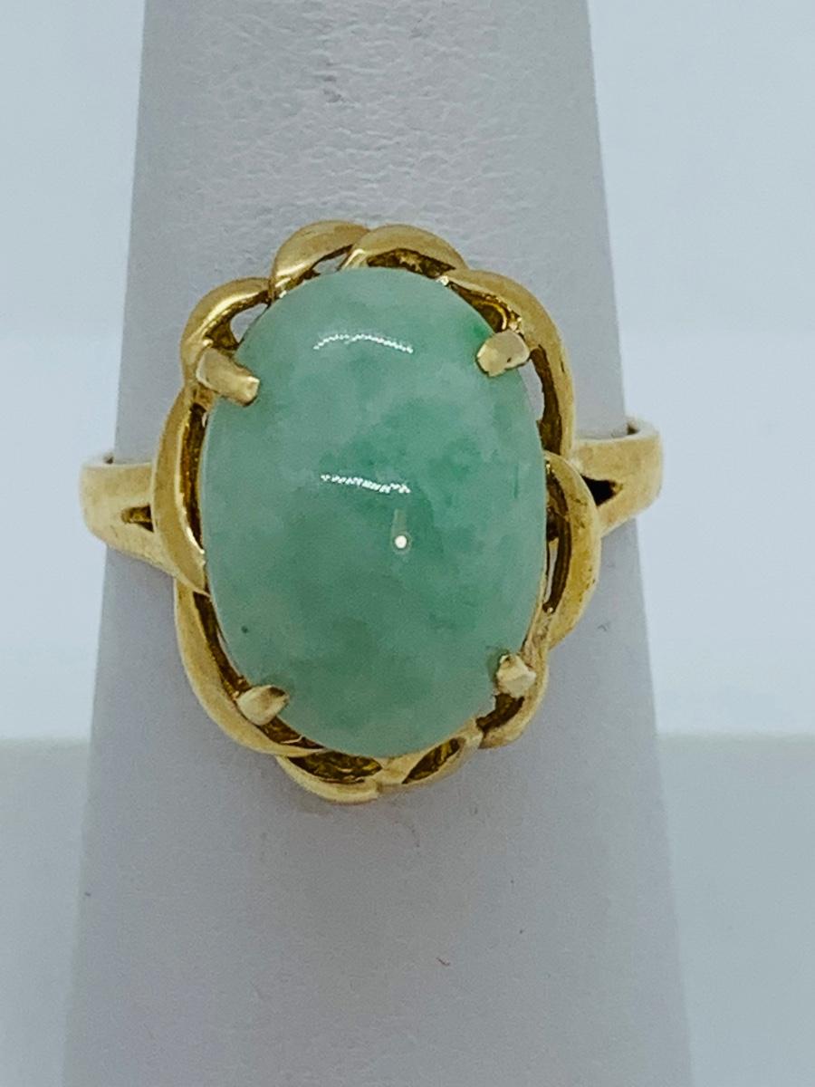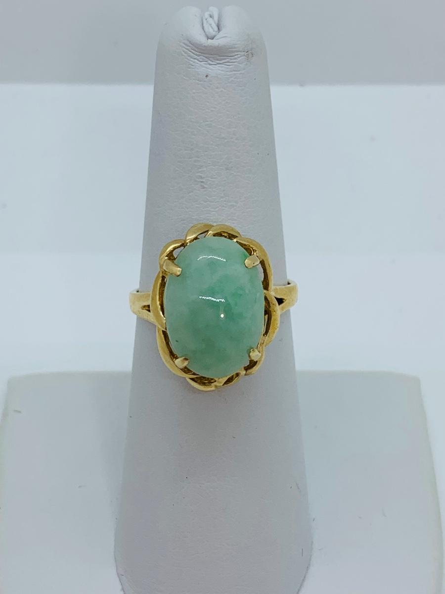 LOT 80: 14K Gold & Jade Ring - Size 7 - 4.23 gtw