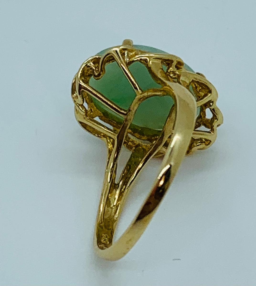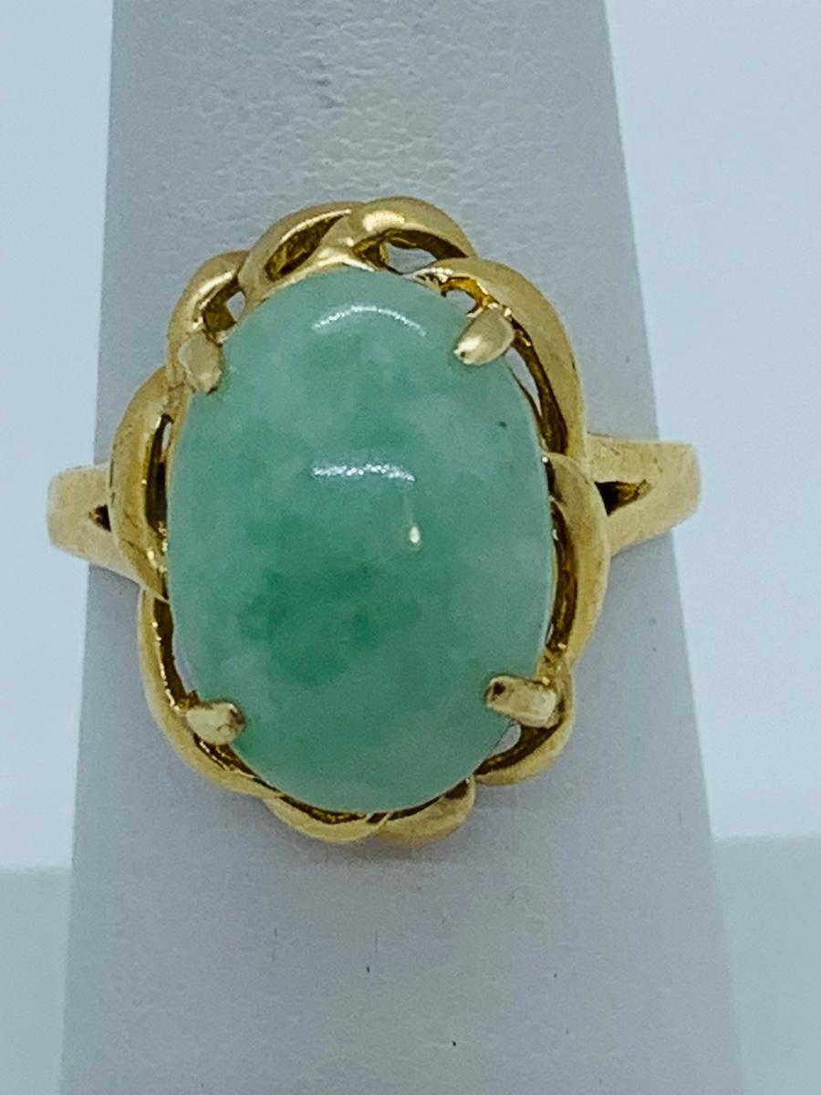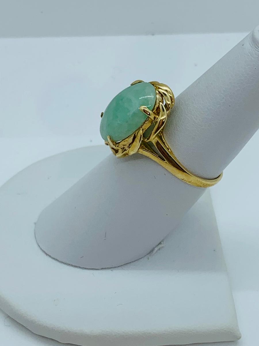 LOT 80: 14K Gold & Jade Ring - Size 7 - 4.23 gtw