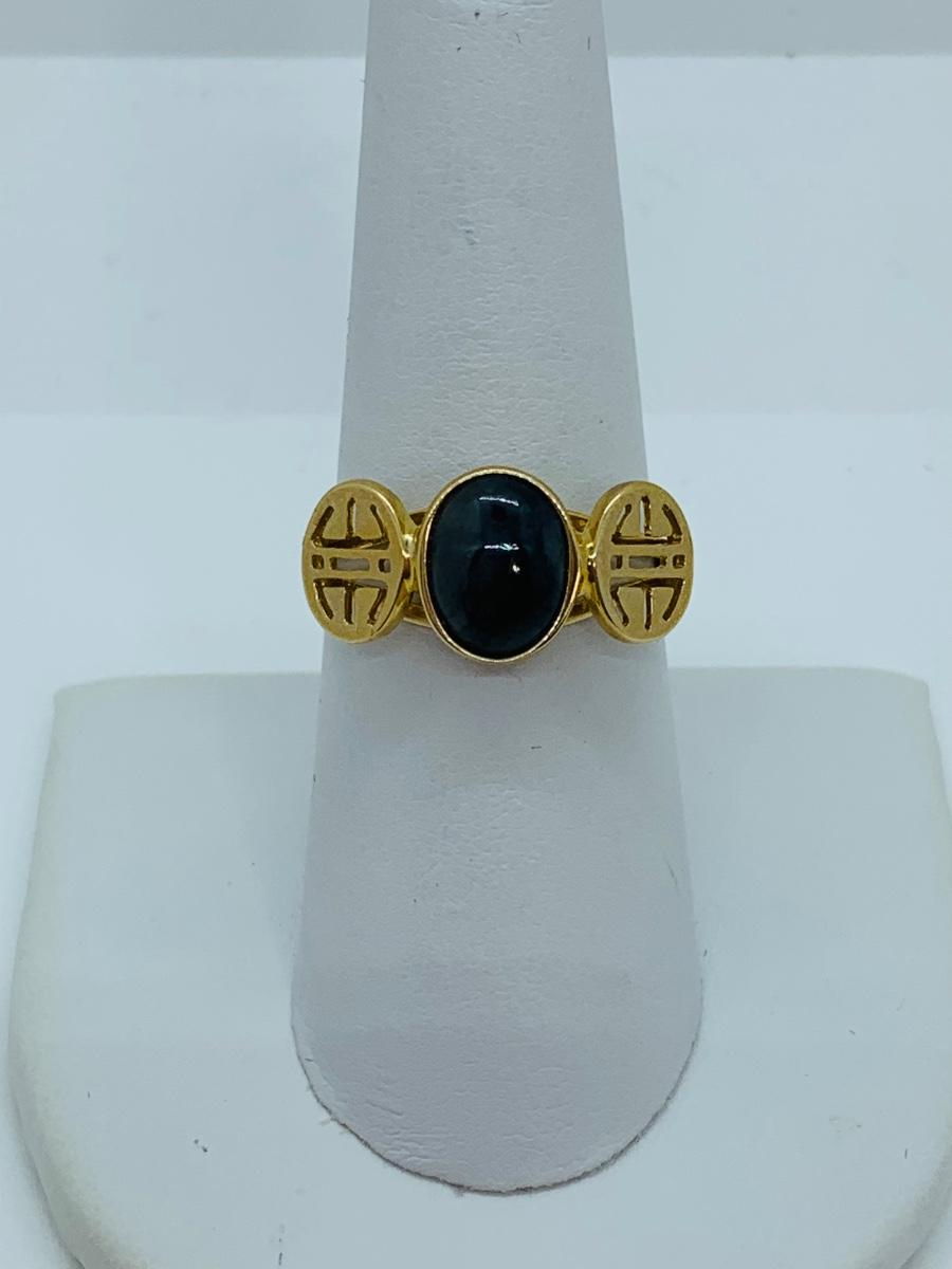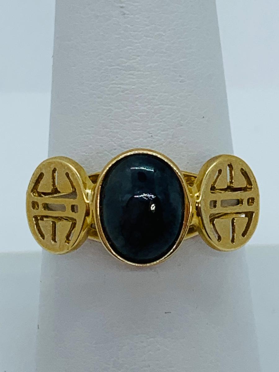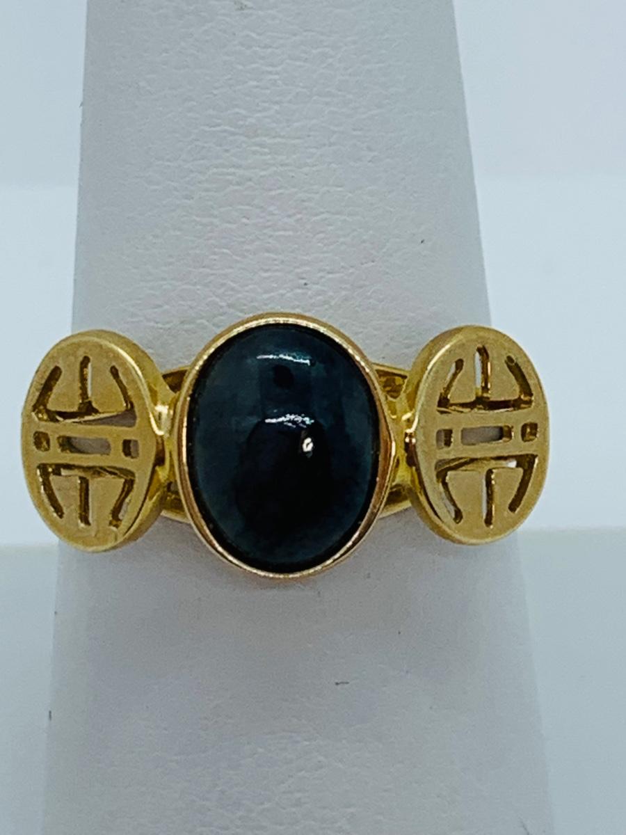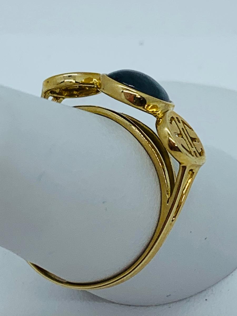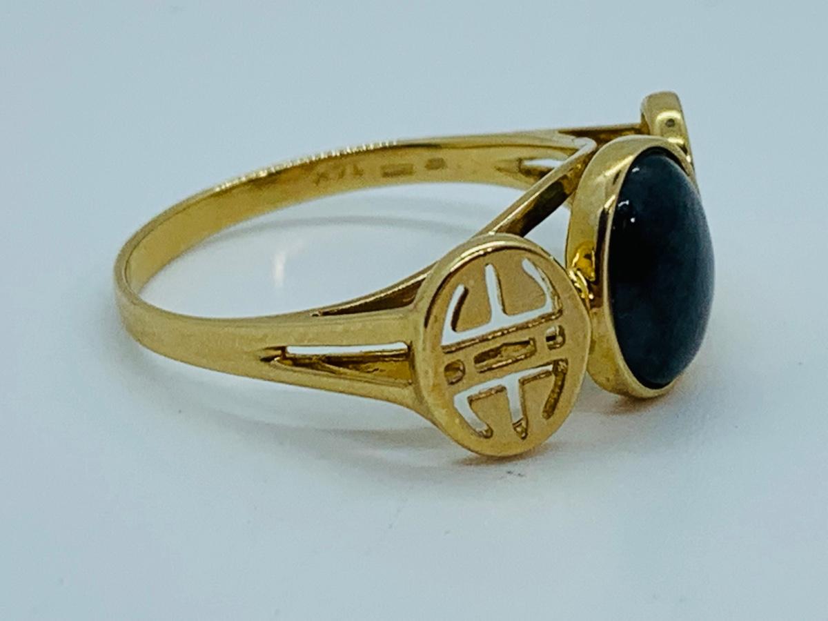 LOT 83: Grey Jade & 14K Gold Ring - Size 8 - 2.96 gtw