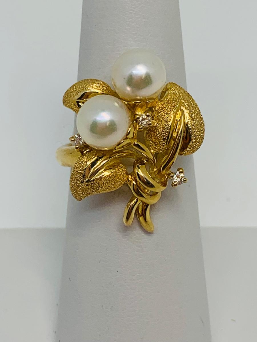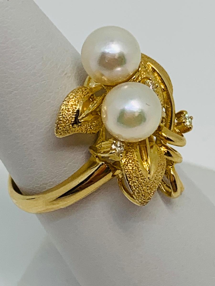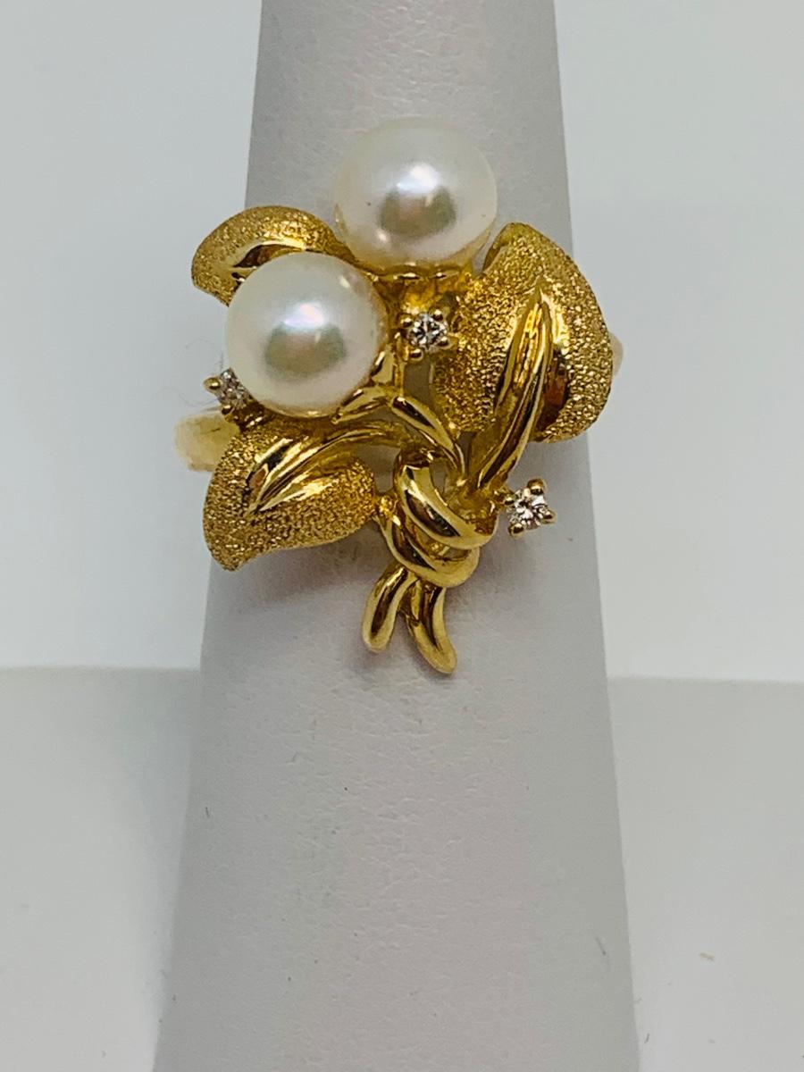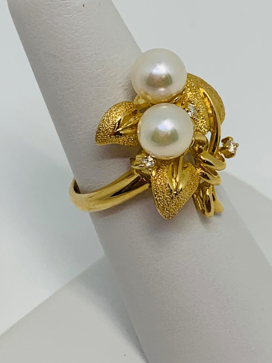 LOT 89: Cultured Pearl, Druzy & Diamond Chip 14K Gold Ring - Size 7 - 5.2 gtw