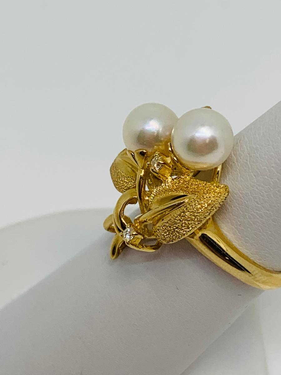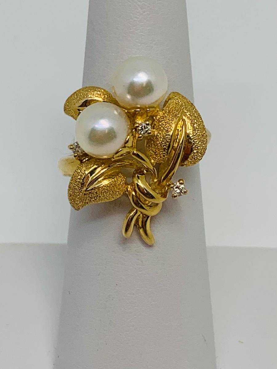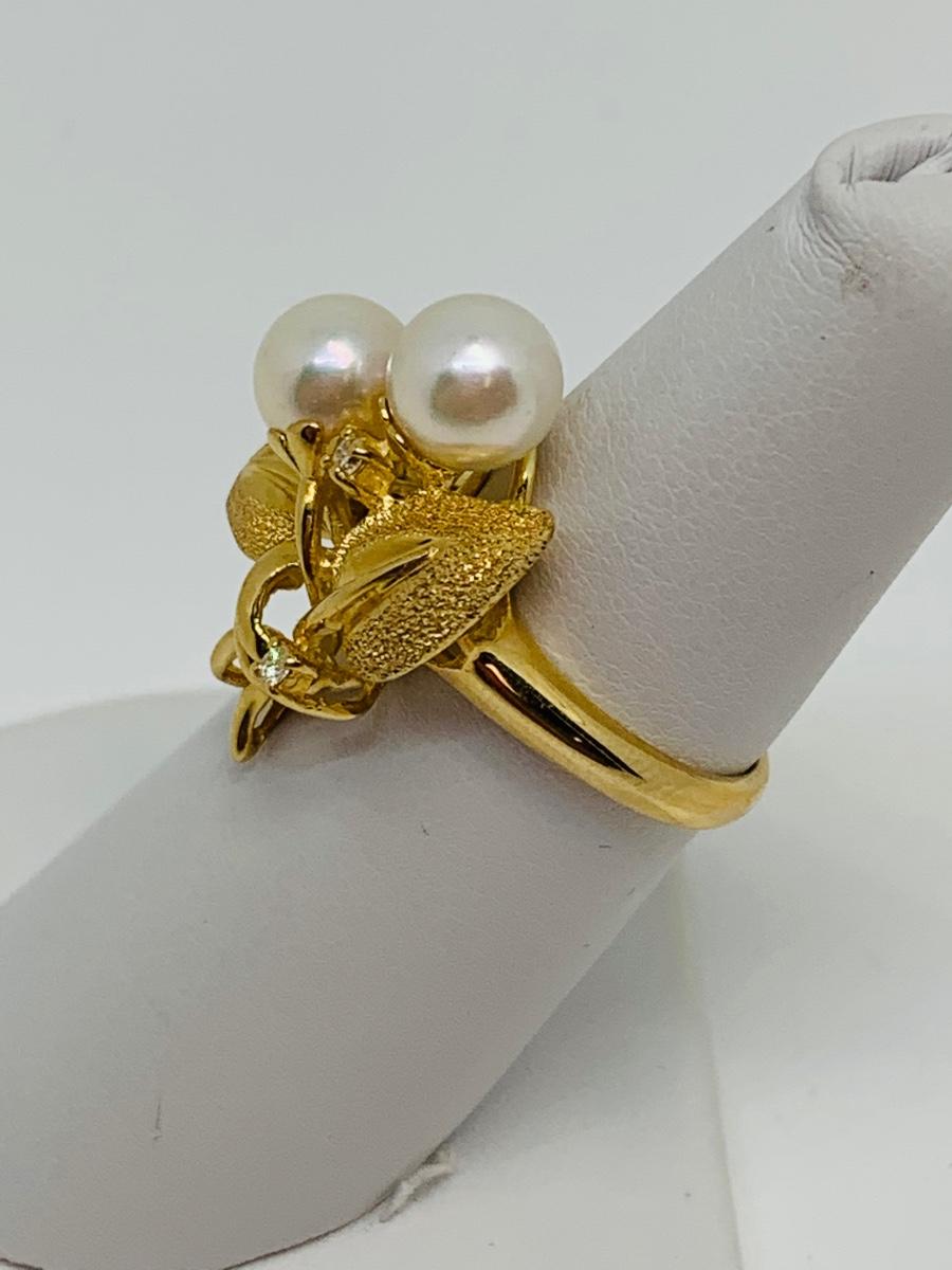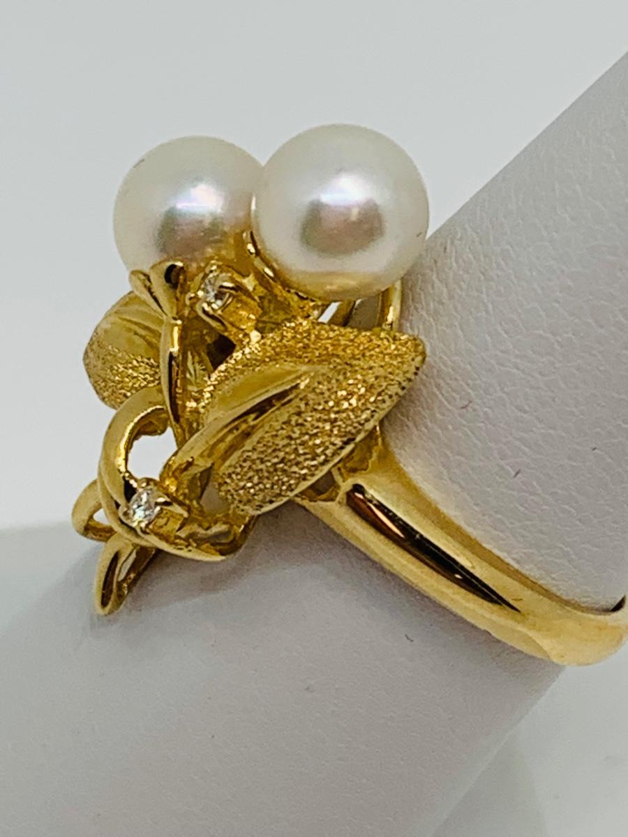 LOT 89: Cultured Pearl, Druzy & Diamond Chip 14K Gold Ring - Size 7 - 5.2 gtw