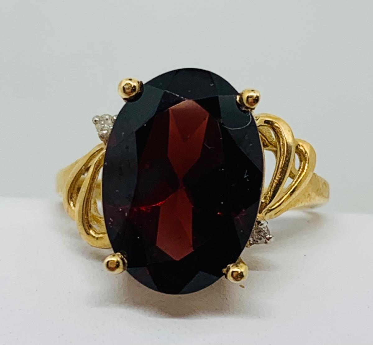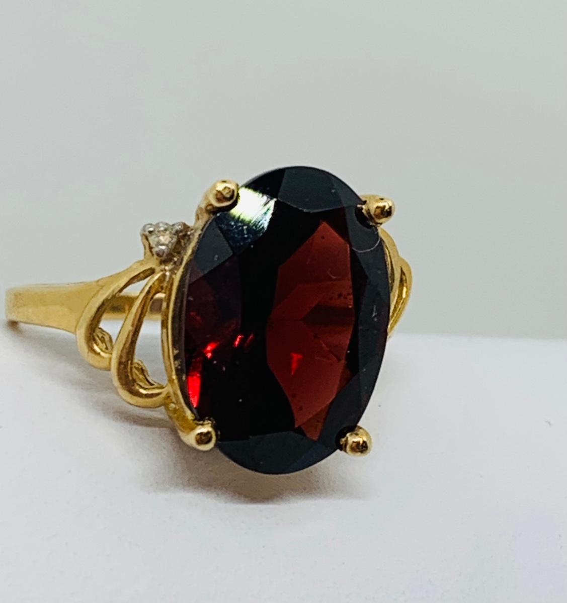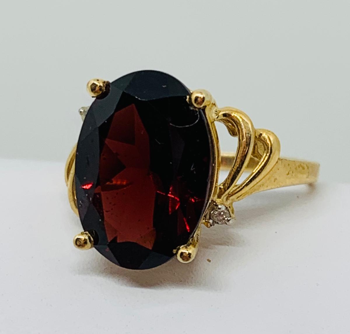 LOT 92: Oval Garnet  14K Gold Size 7 Ring - 3.54 gtw