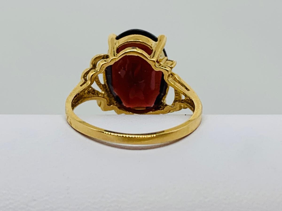 LOT 92: Oval Garnet 14K Gold Size 7 Ring - 3.54 gtw
