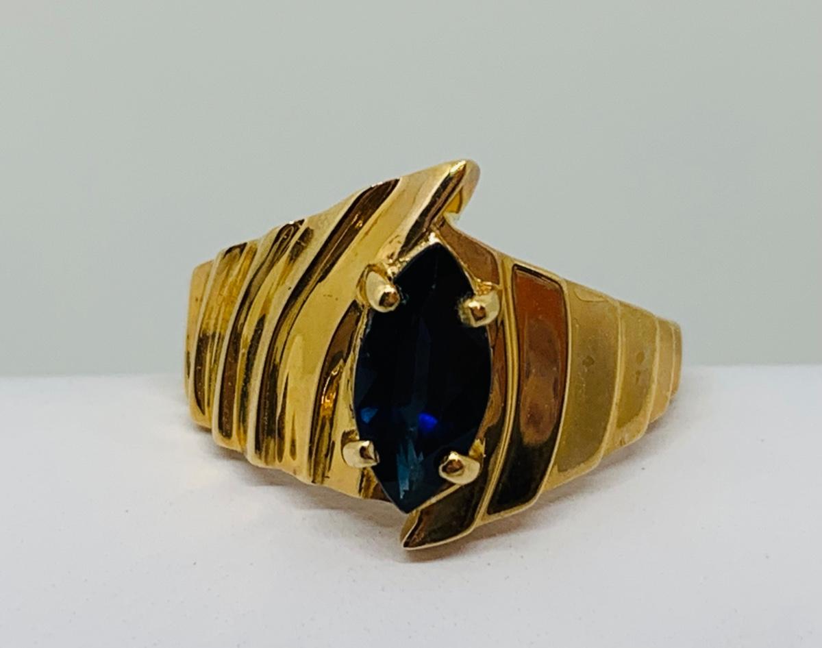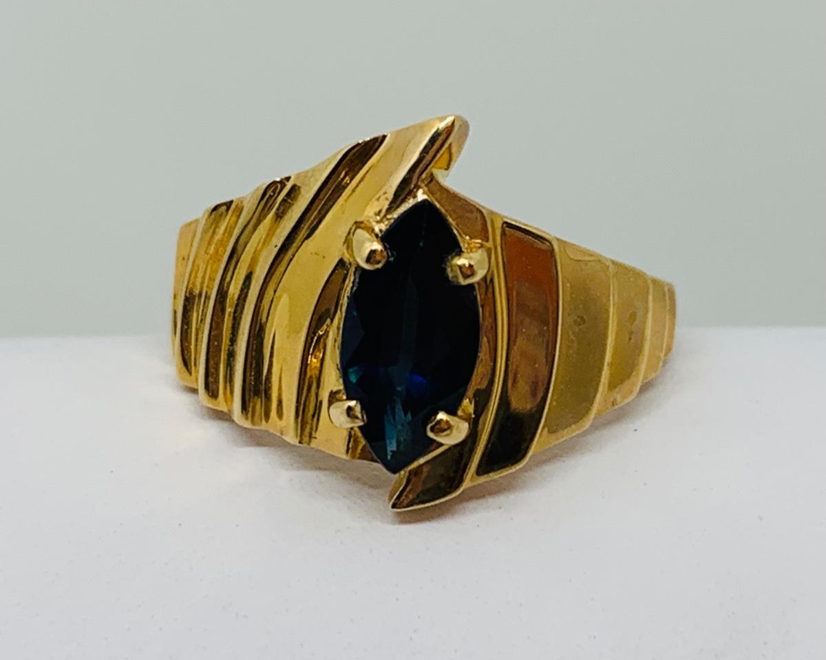 LOT 93: Blue Sapphire 14K Gold Size 7 Ring - 4.46 gtw