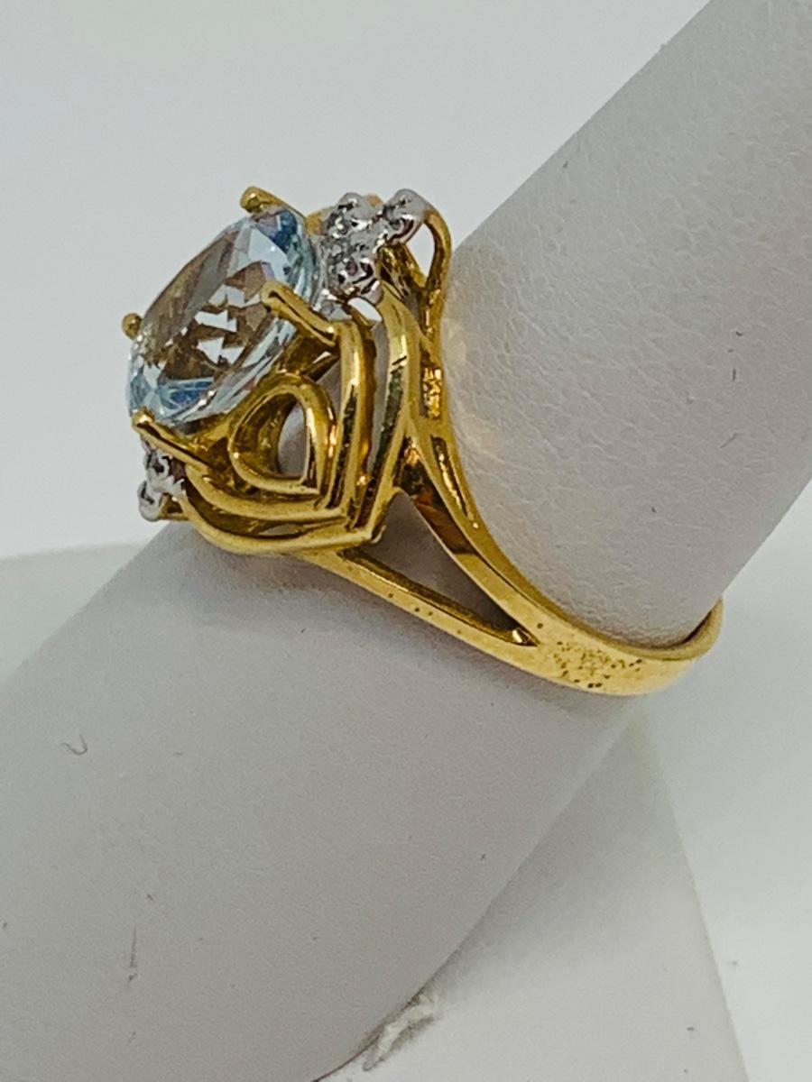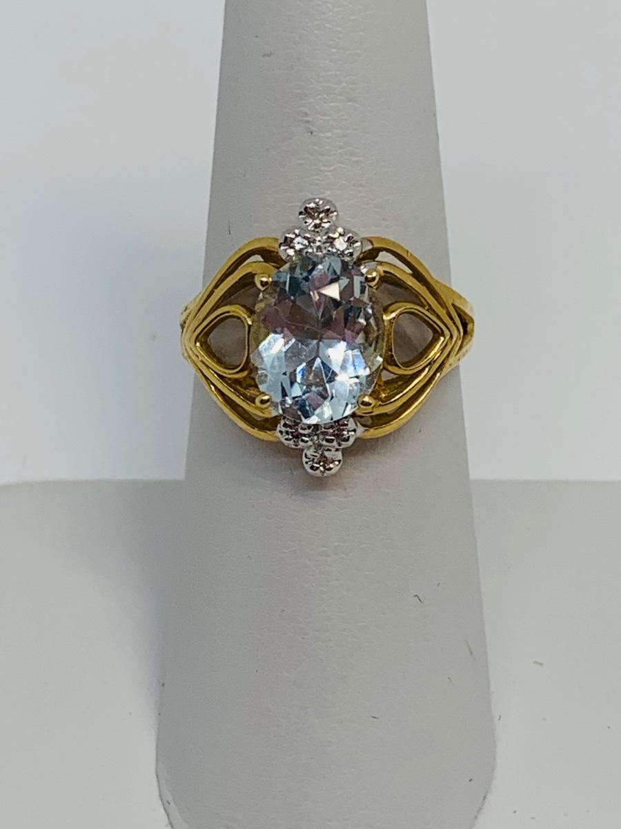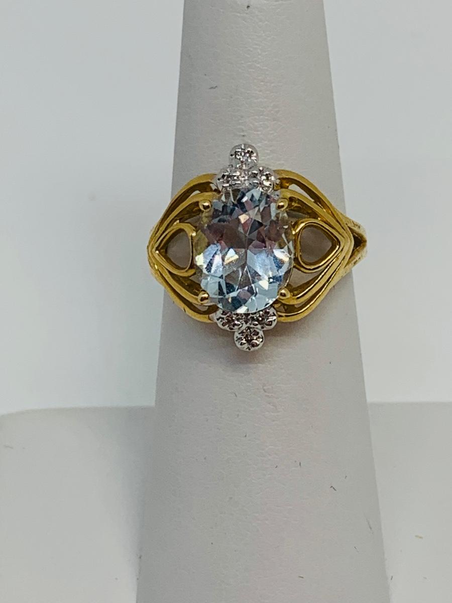 LOT 94: Aquamarine w/ Diamond Chips 14K Gold Size 7 Ring - 3.62 gtw