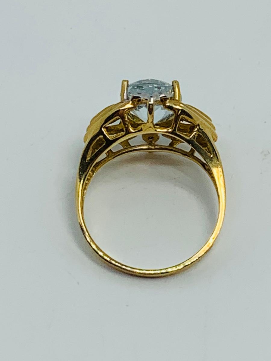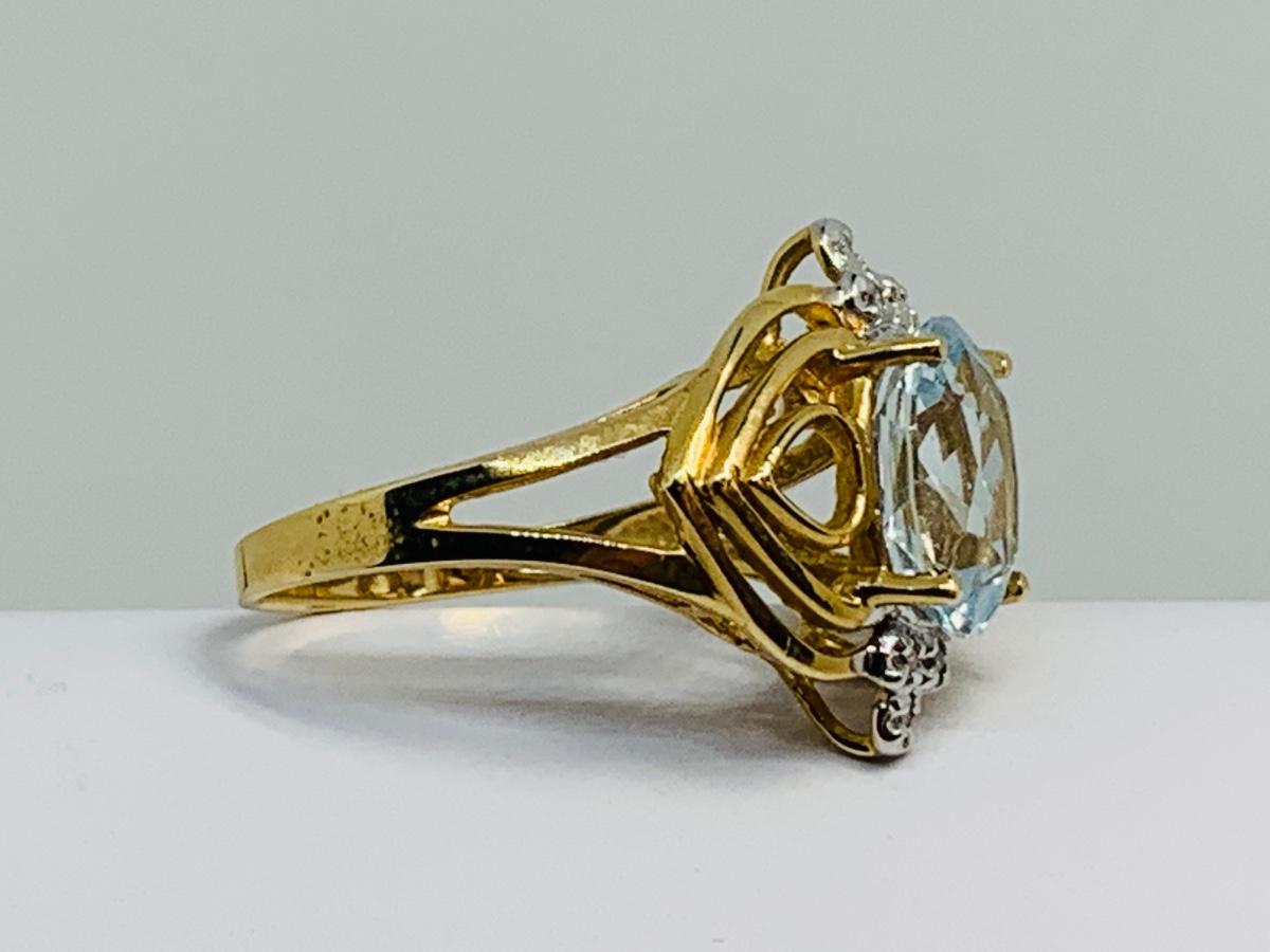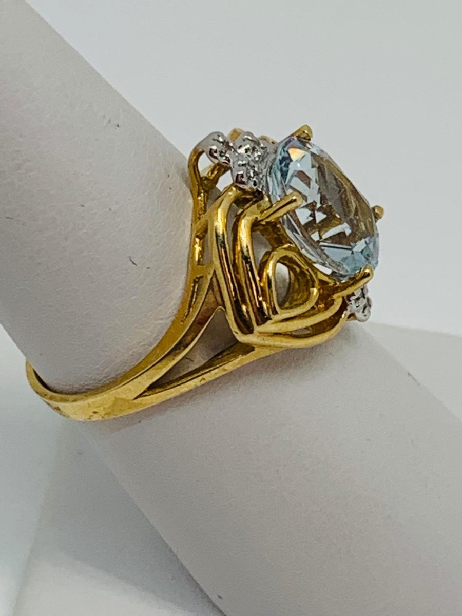 LOT 94: Aquamarine w/ Diamond Chips 14K Gold Size 7 Ring - 3.62 gtw