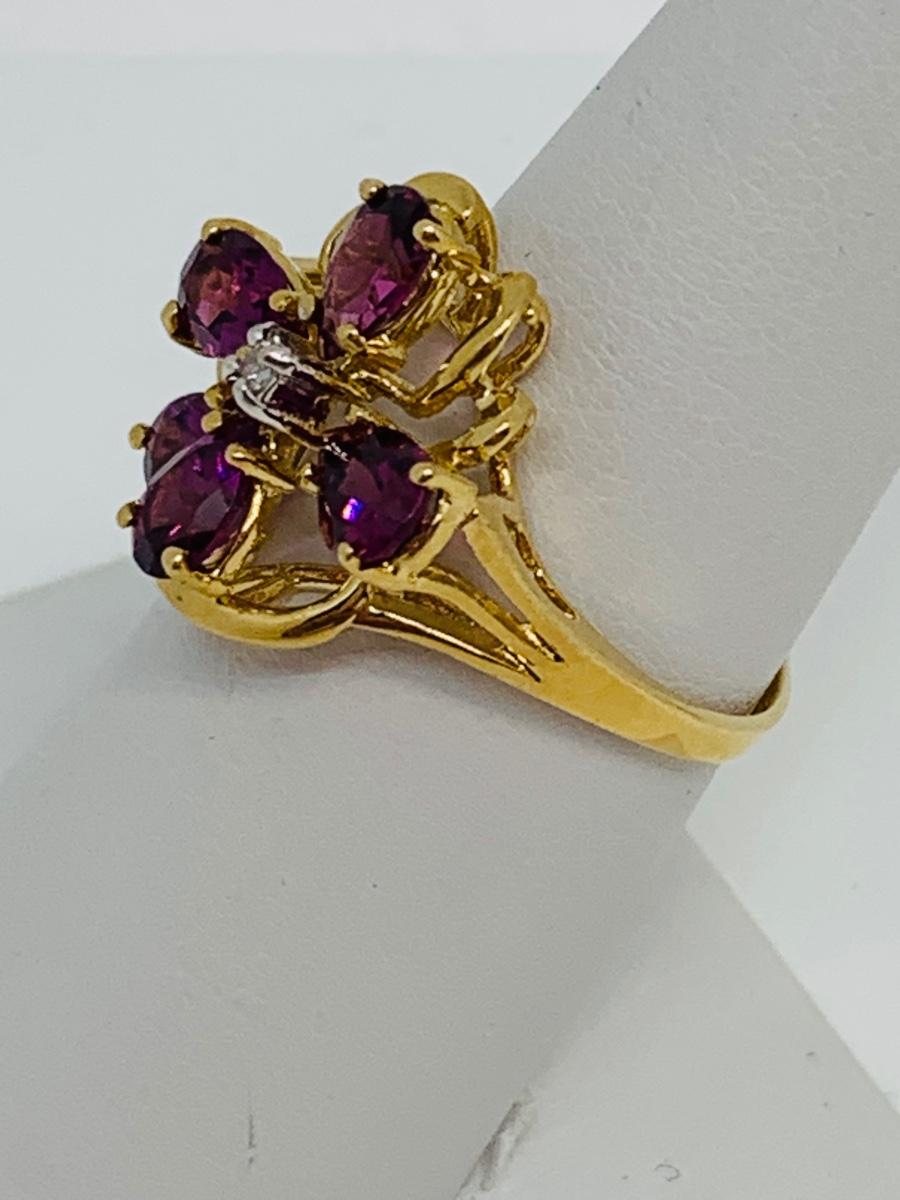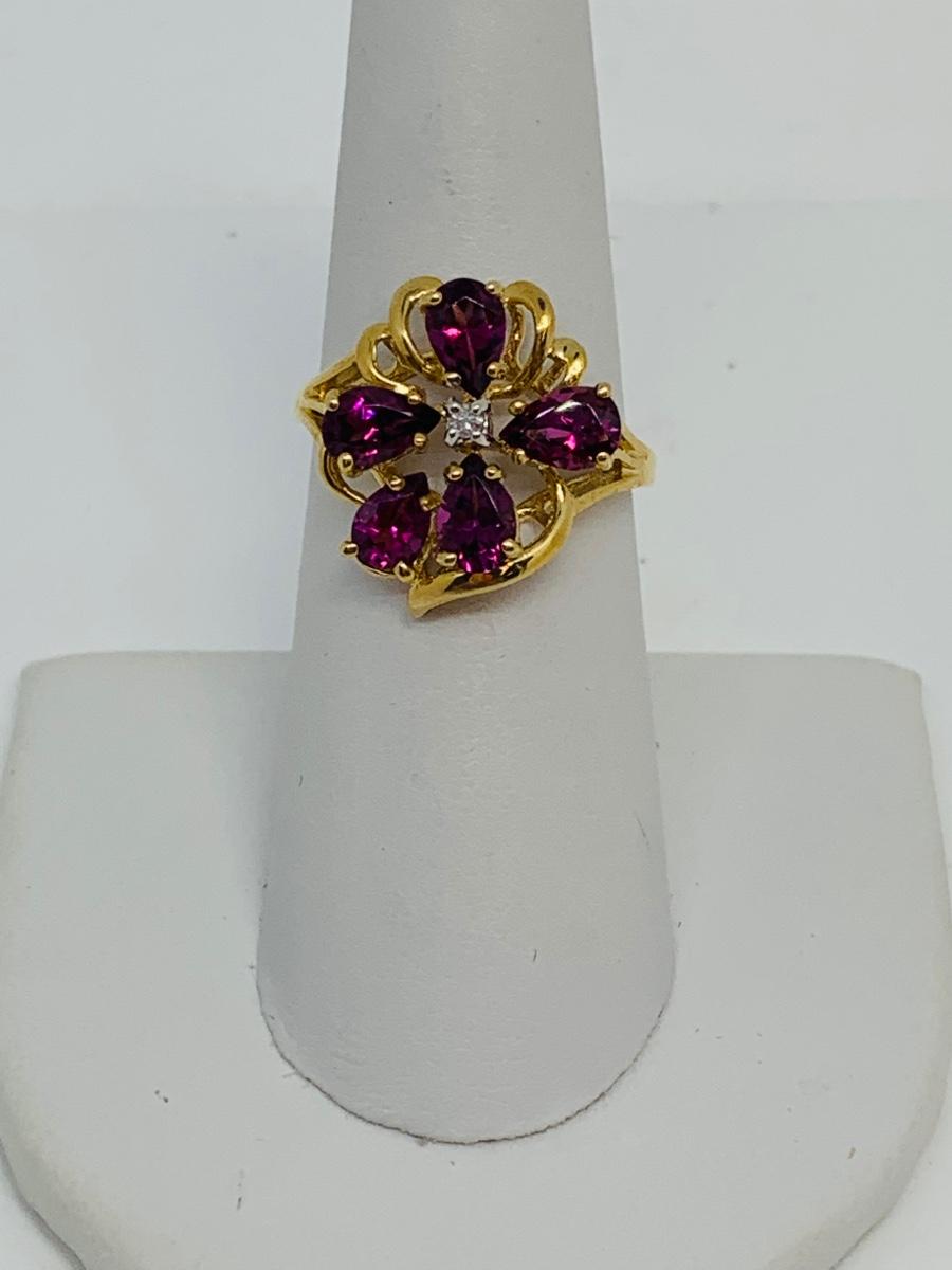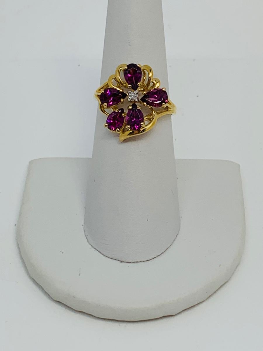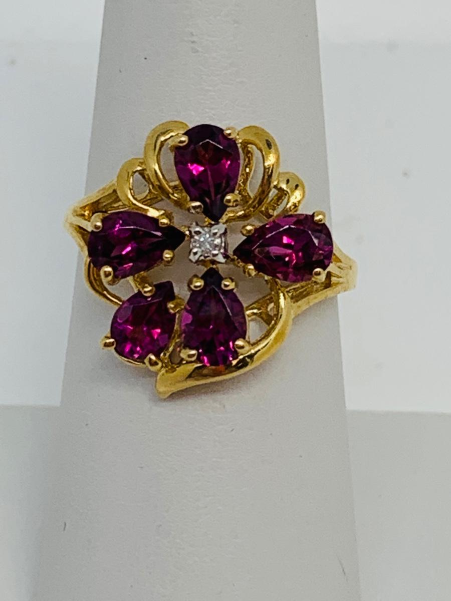 LOT 96: 14K Gold and Pink/Purple Sapphire w/ Diamond Chips Ring - Size 7 - 3.58 gtw