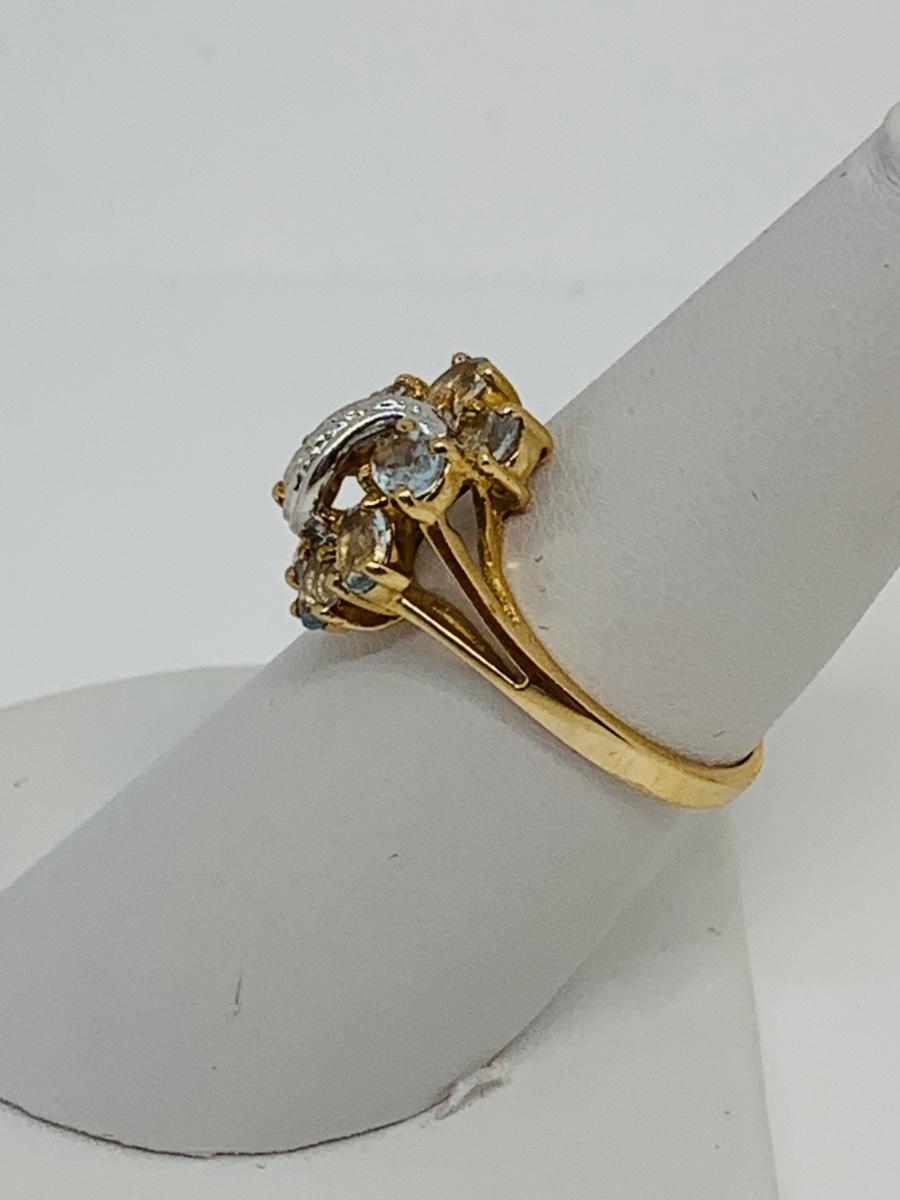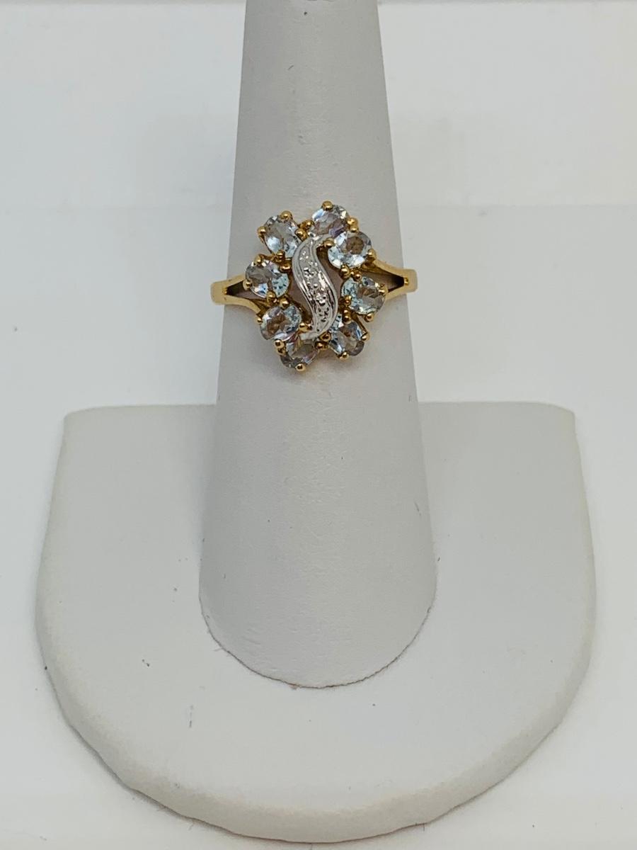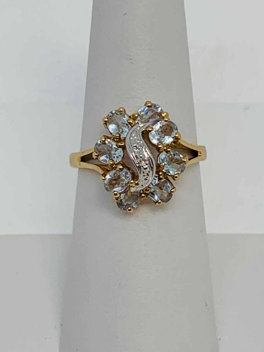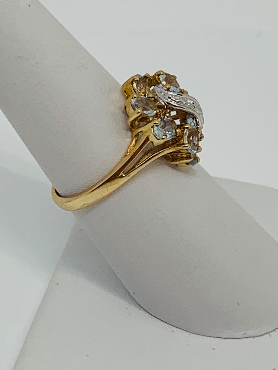 LOT 102: Aquamarine Size 7 Cluster Ring - 14K Gold - 3.49 gtw