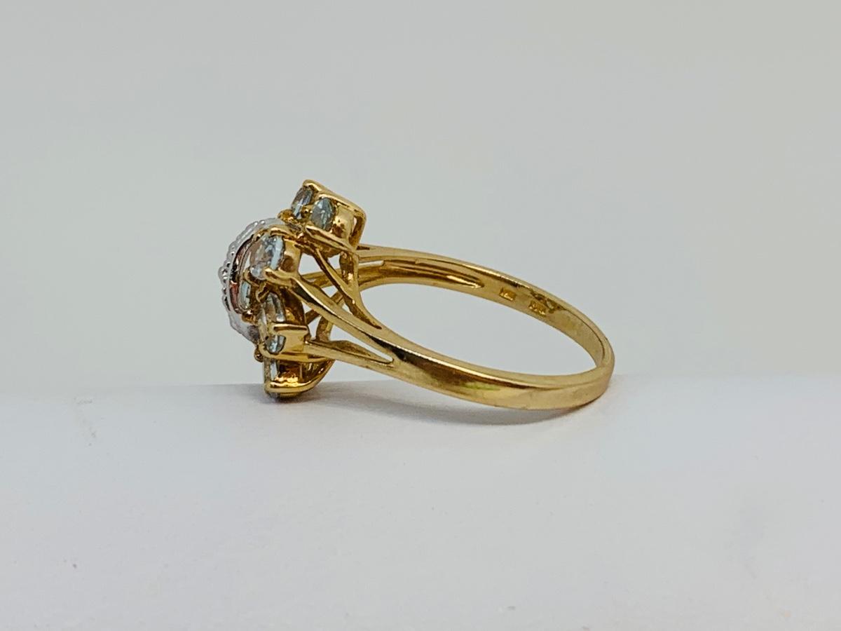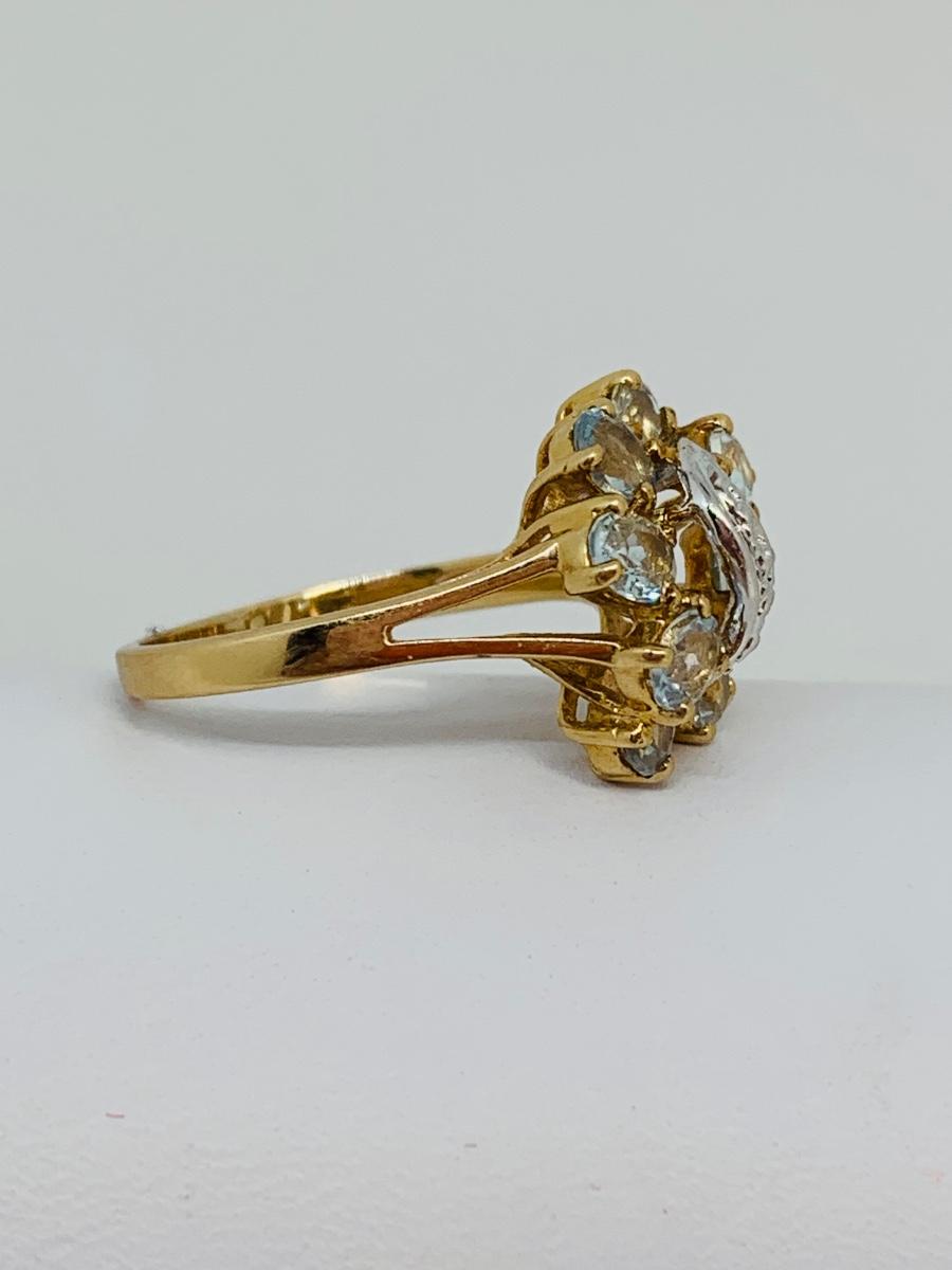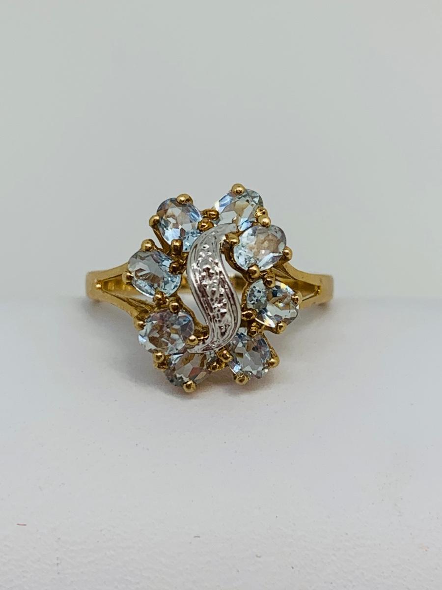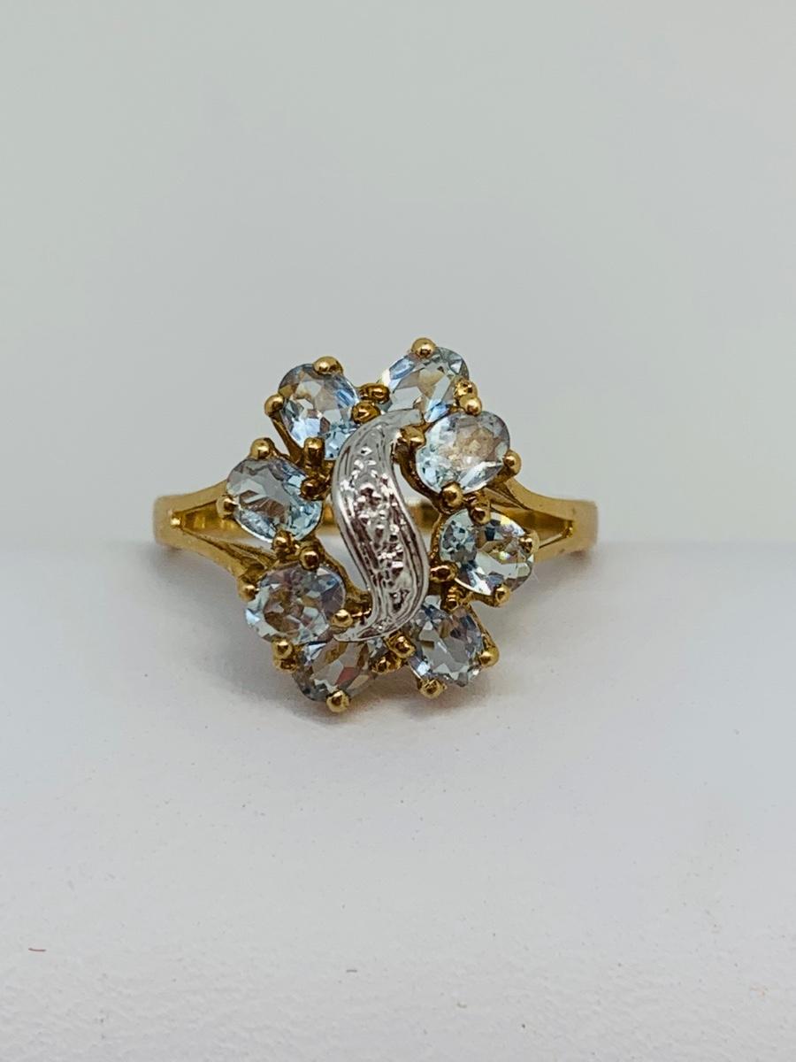 LOT 102: Aquamarine Size 7 Cluster Ring - 14K Gold - 3.49 gtw